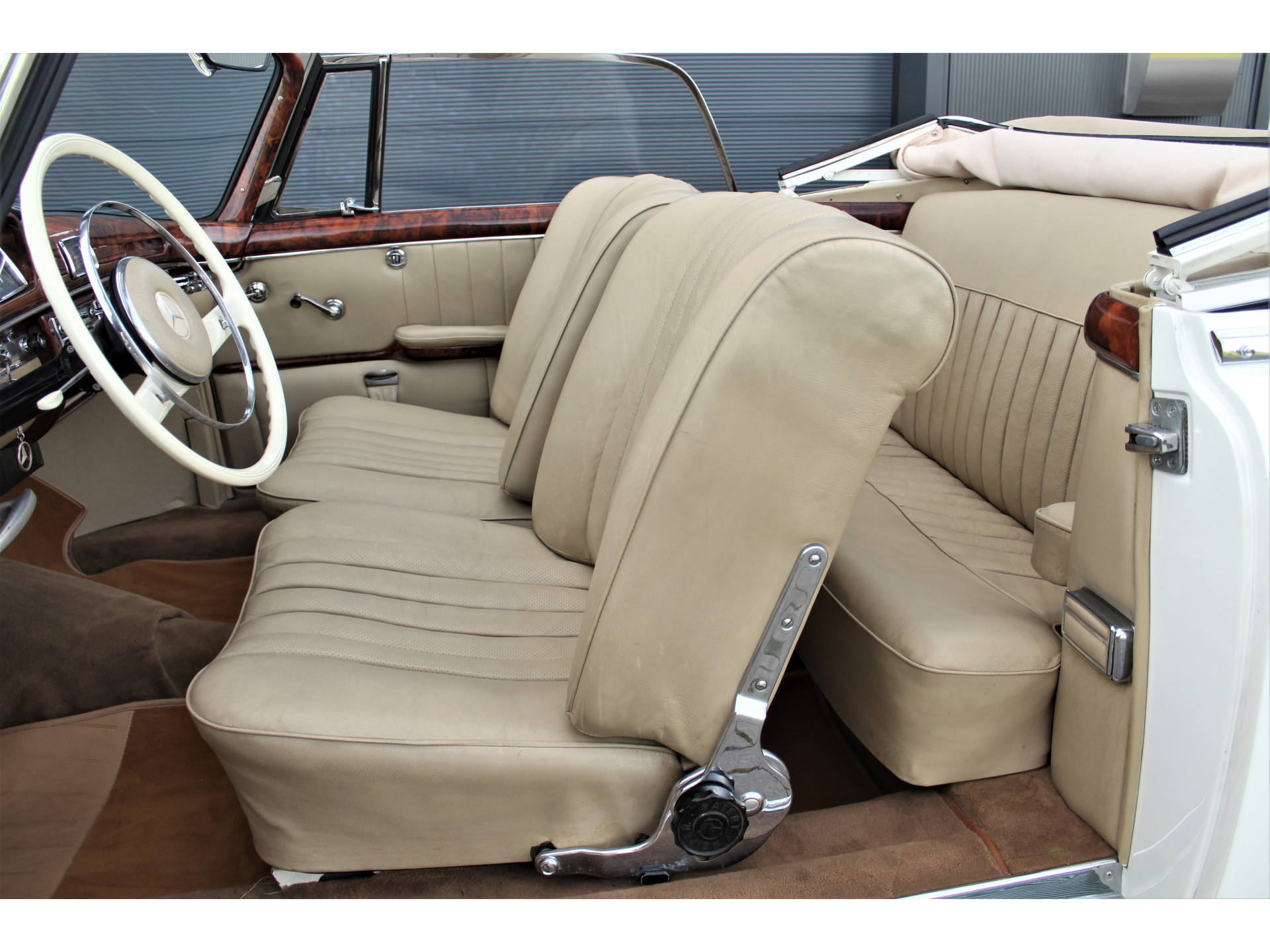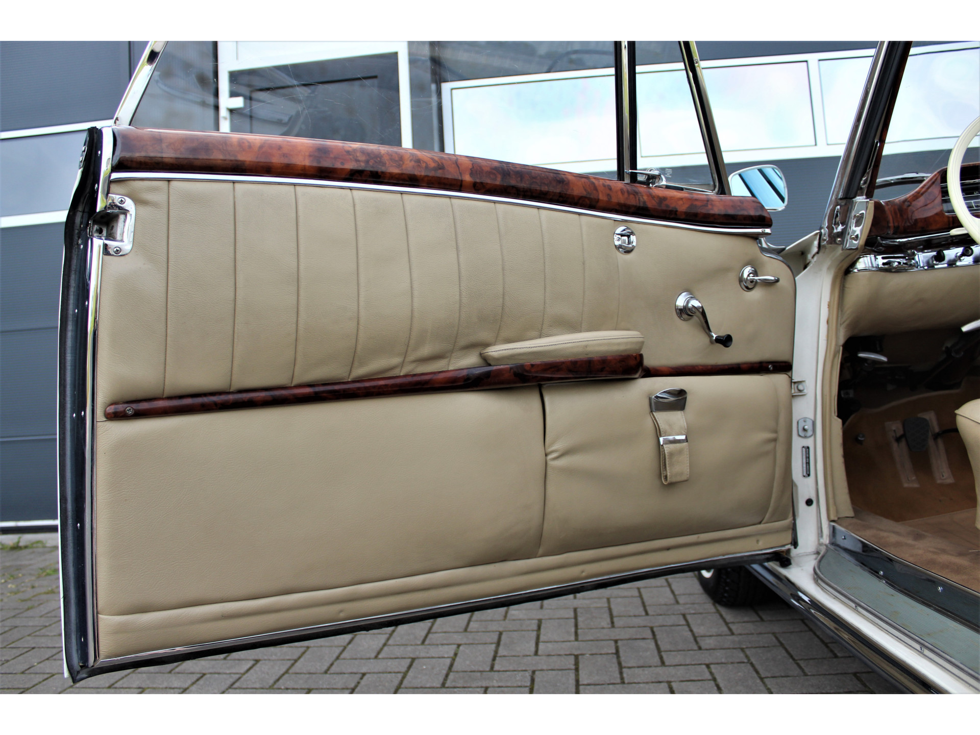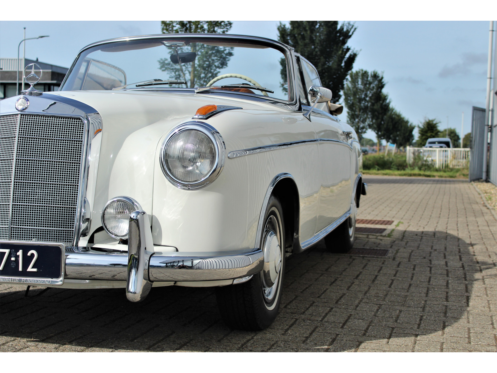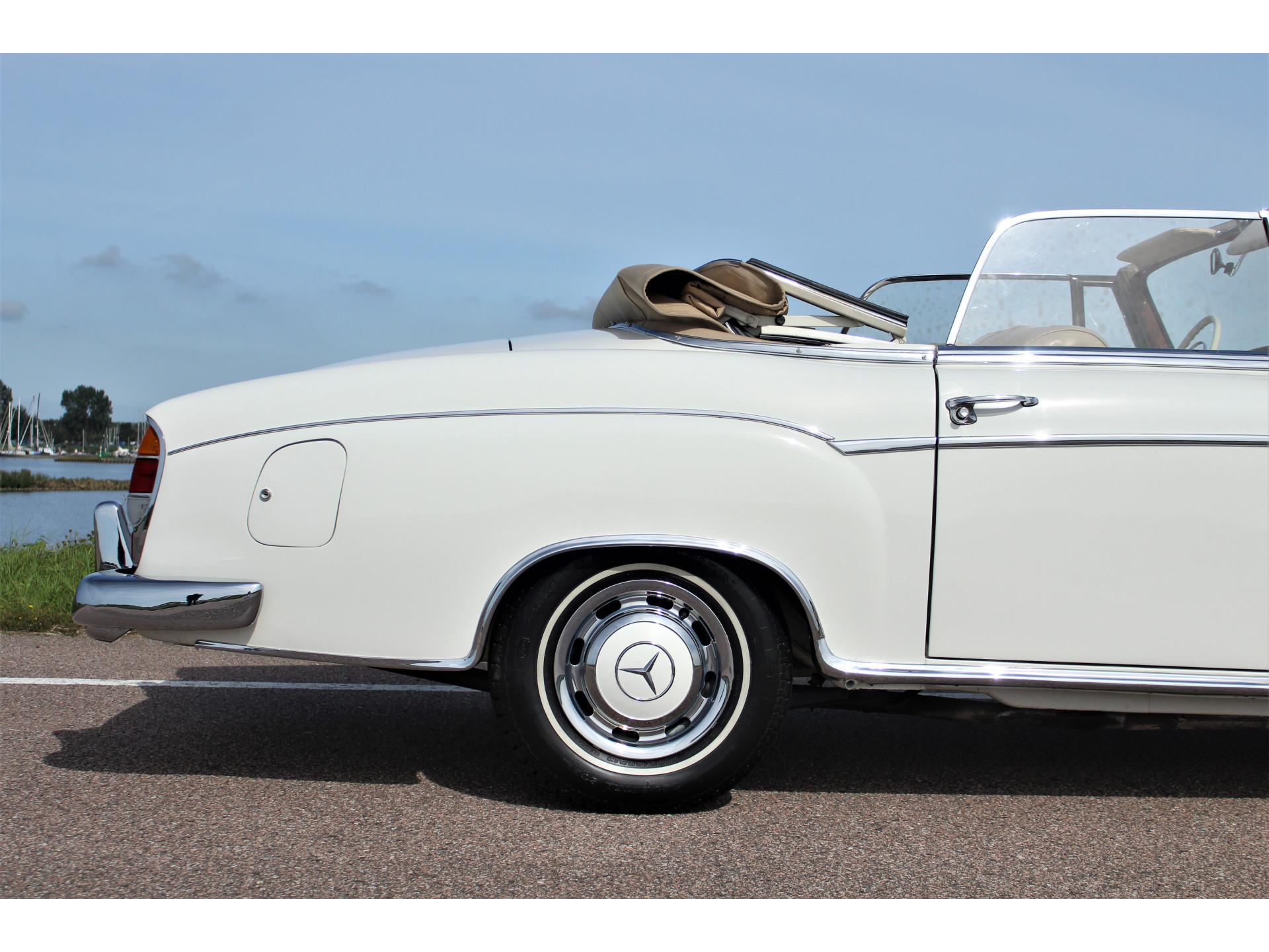 Prachtige klassieke Mercedes 220SE Ponton Cabriolet uitgevoerd in hoogglans wit met een smetteloos beige leder interieur.