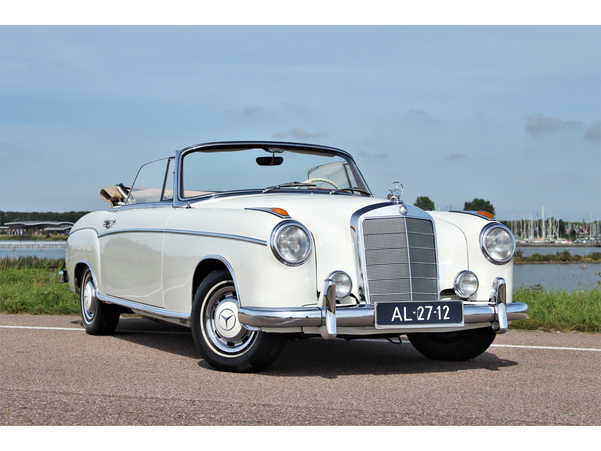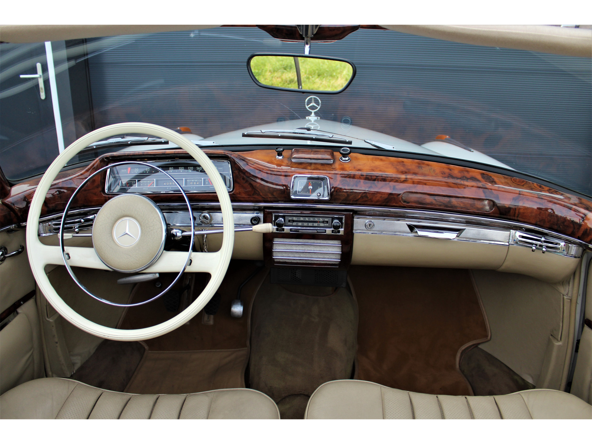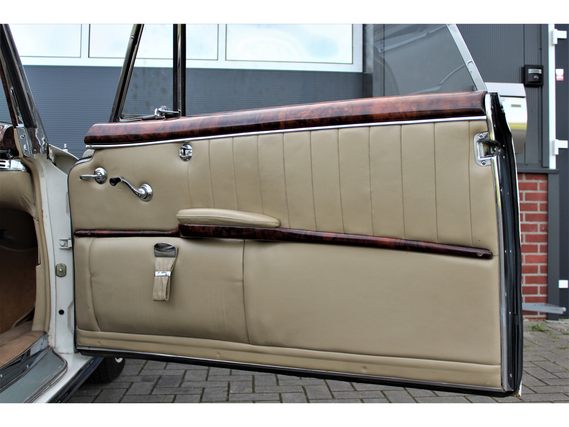 Prachtige klassieke Mercedes 220SE Ponton Cabriolet uitgevoerd in hoogglans wit met een smetteloos beige leder interieur.