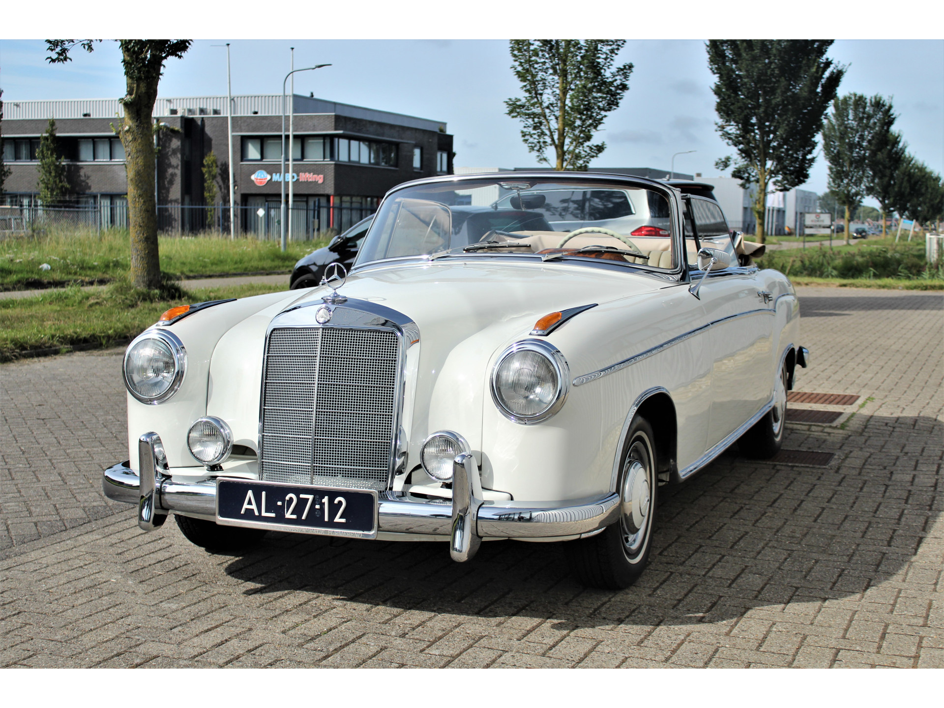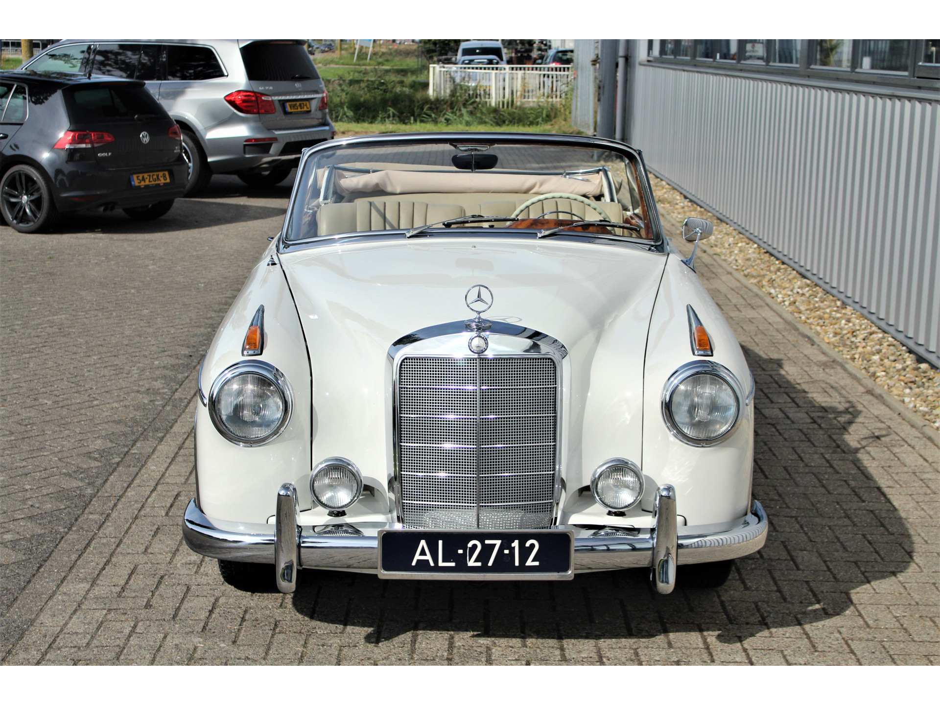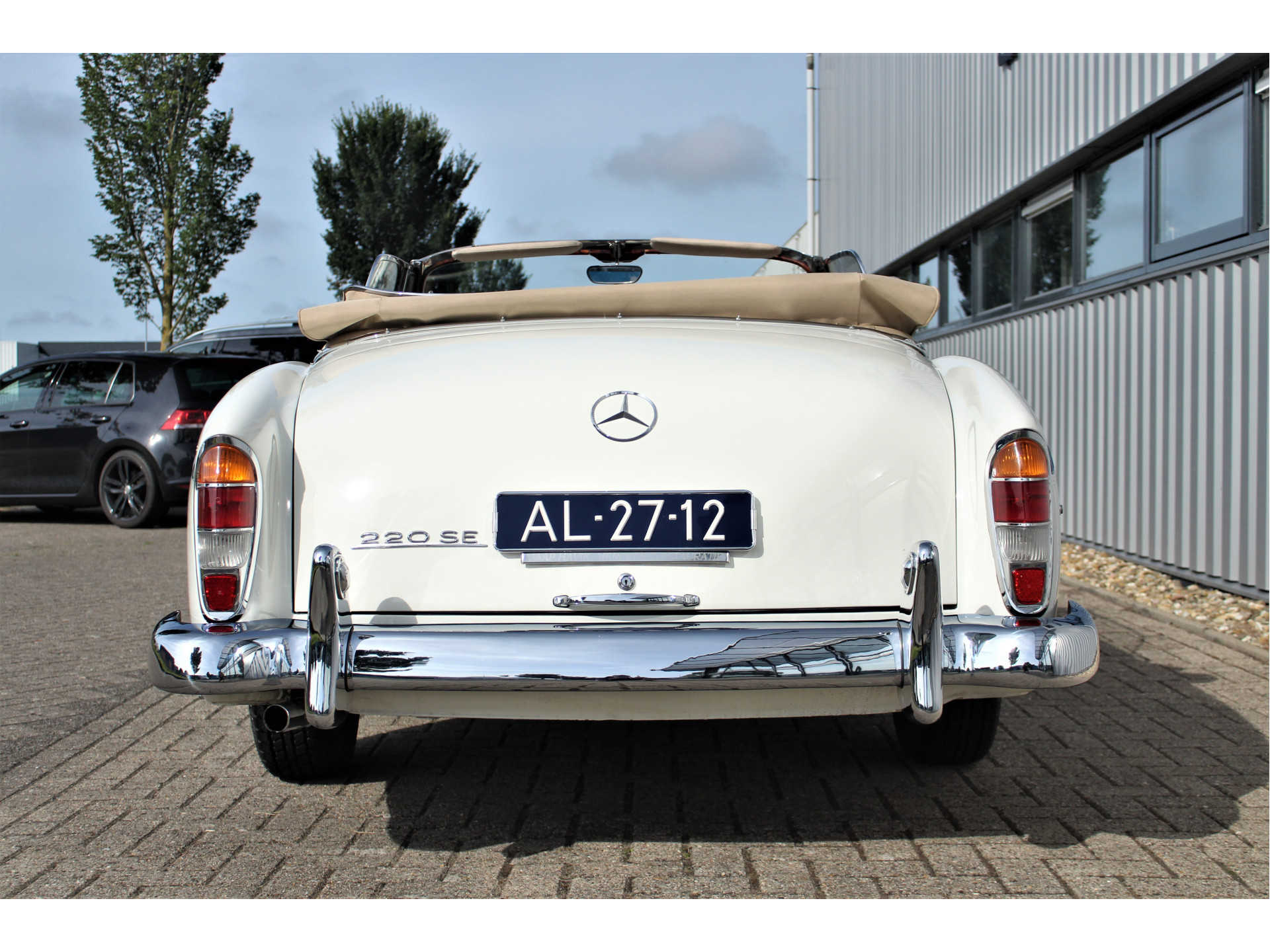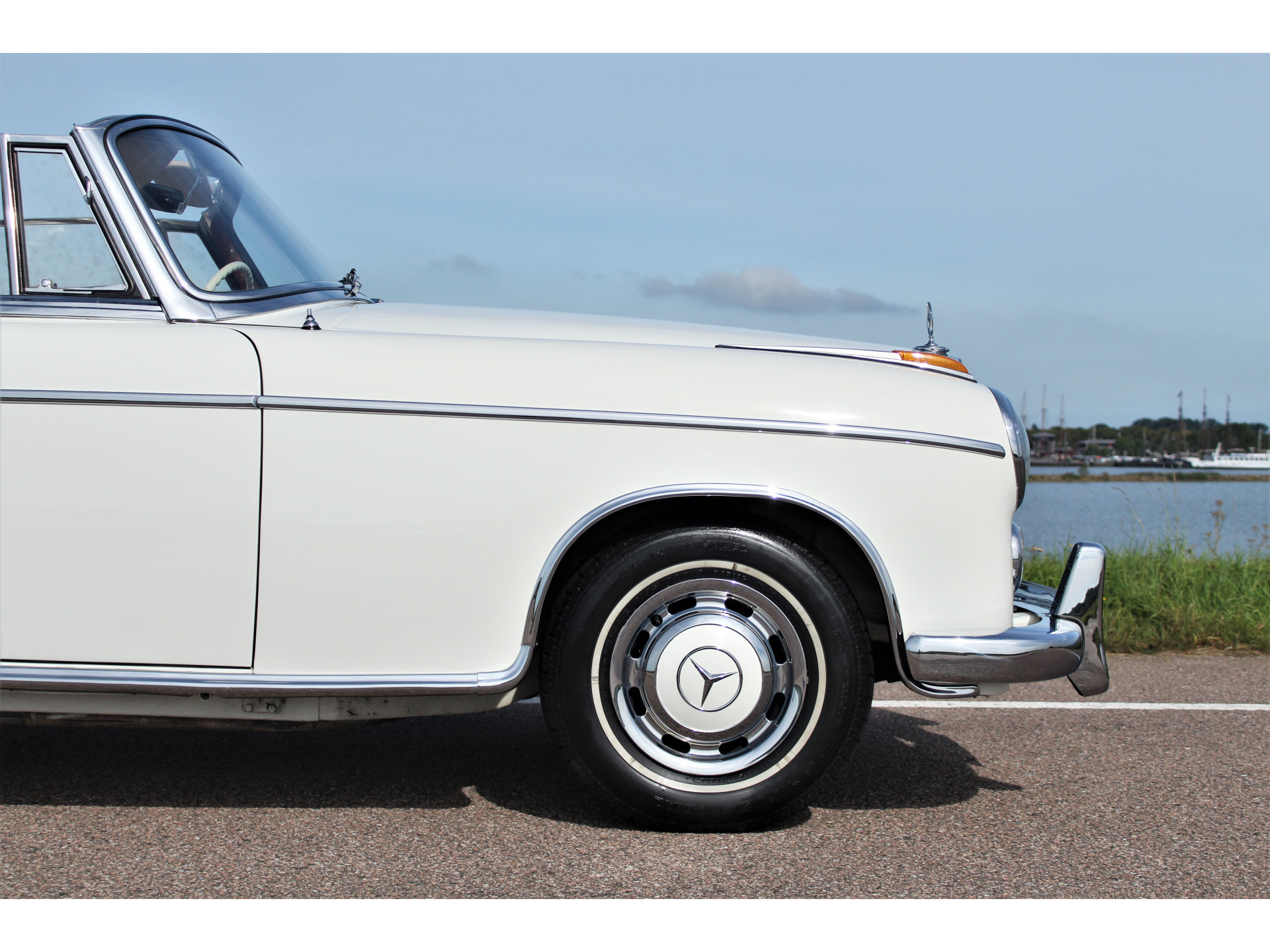 Prachtige klassieke Mercedes 220SE Ponton Cabriolet uitgevoerd in hoogglans wit met een smetteloos beige leder interieur.
