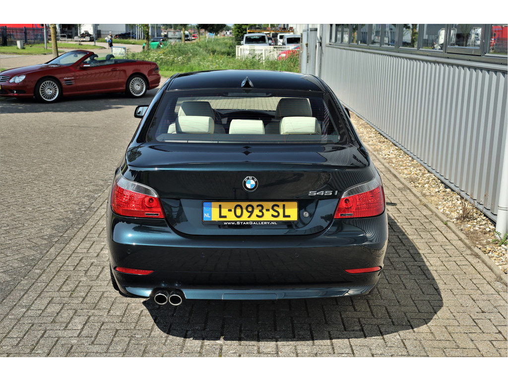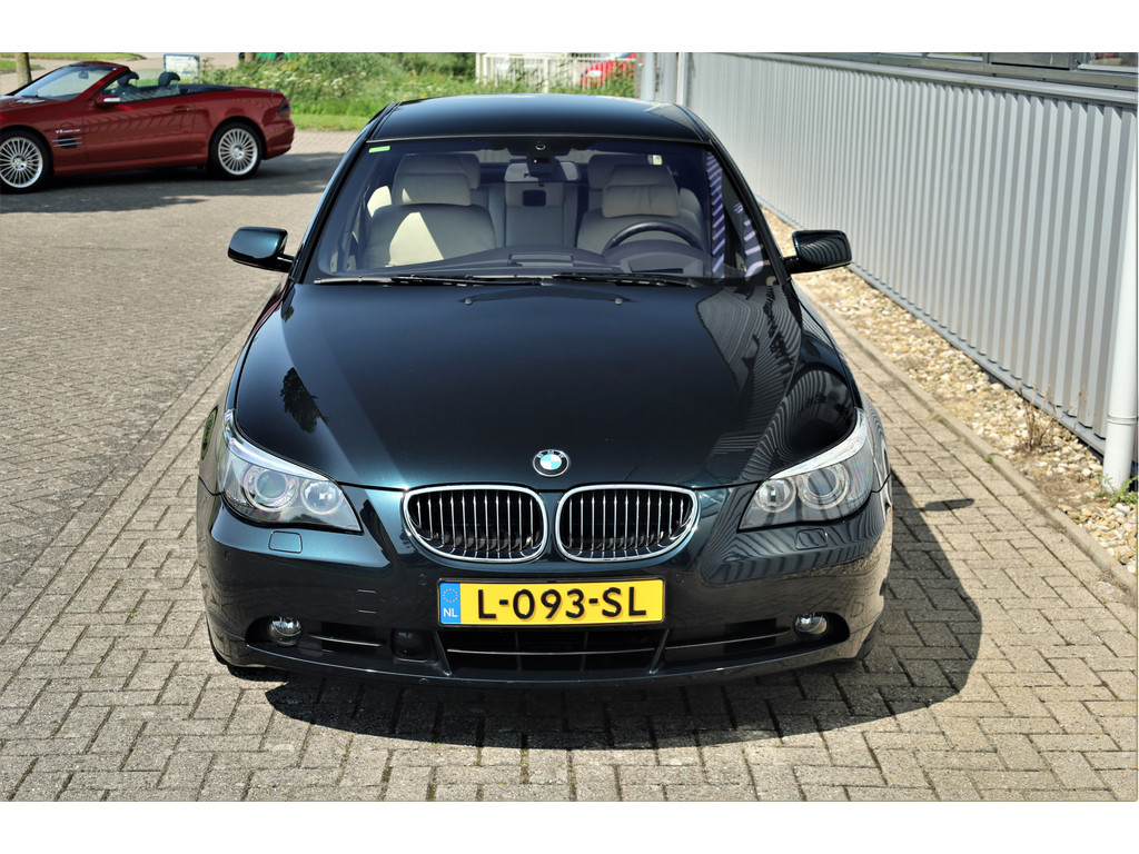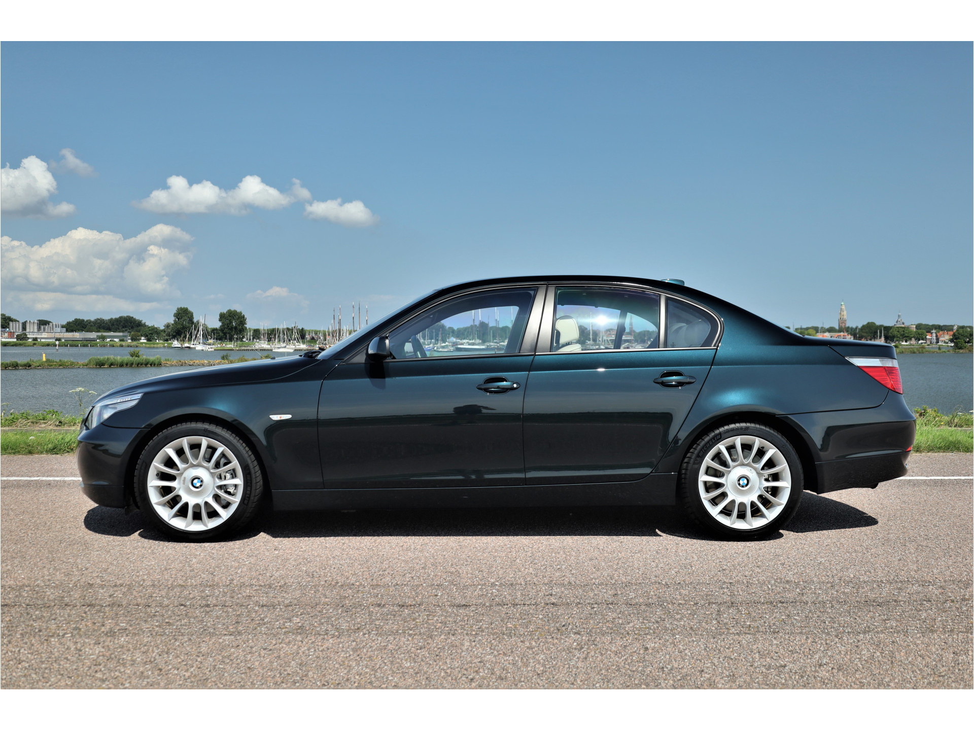 Onvoorstelbaar mooie en unieke BMW 545i Executive, uitgevoerd in donkergroen metallic met een bijna wit leder interieur; een prachtige combinatie uit de koker van de "Individual" afdeling die je maar zelden tegenkomt.