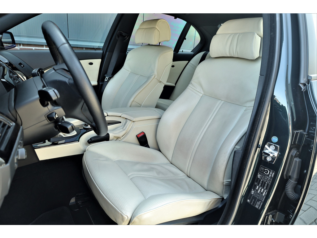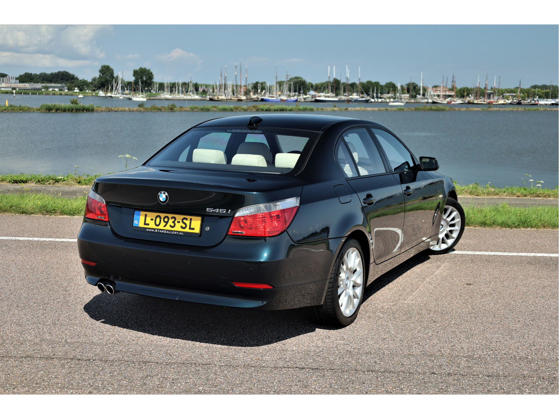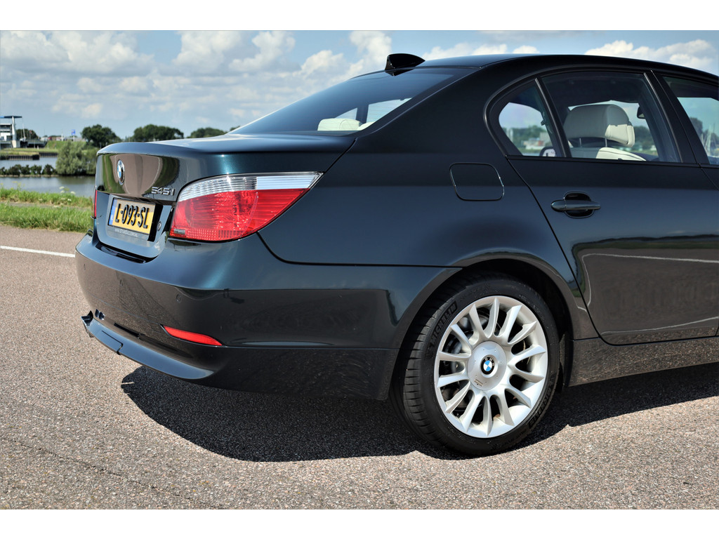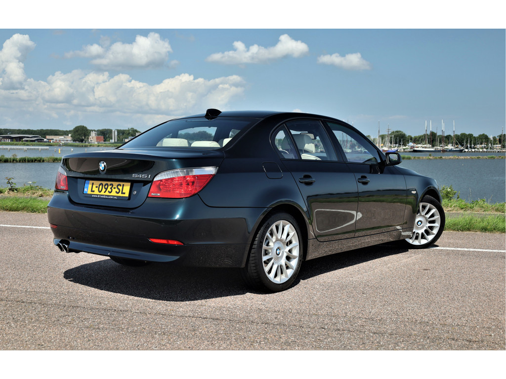 Onvoorstelbaar mooie en unieke BMW 545i Executive, uitgevoerd in donkergroen metallic met een bijna wit leder interieur; een prachtige combinatie uit de koker van de "Individual" afdeling die je maar zelden tegenkomt.