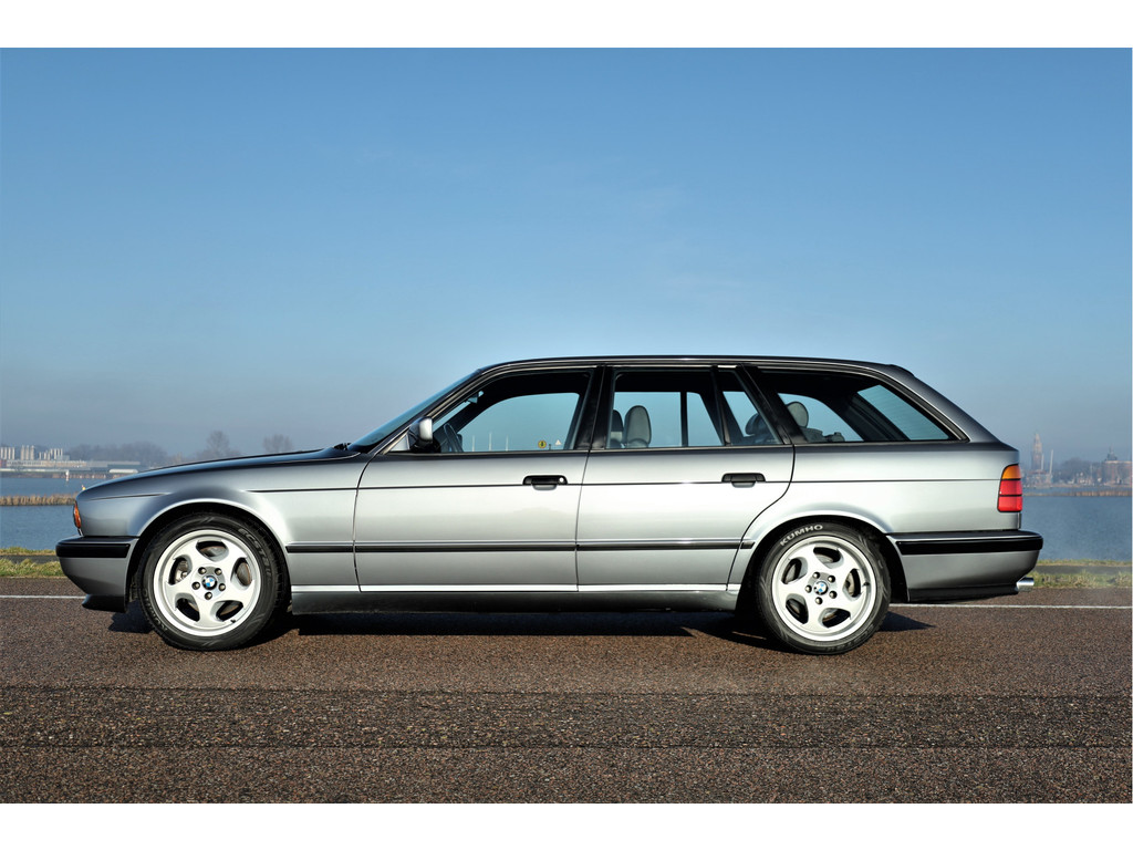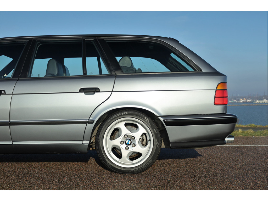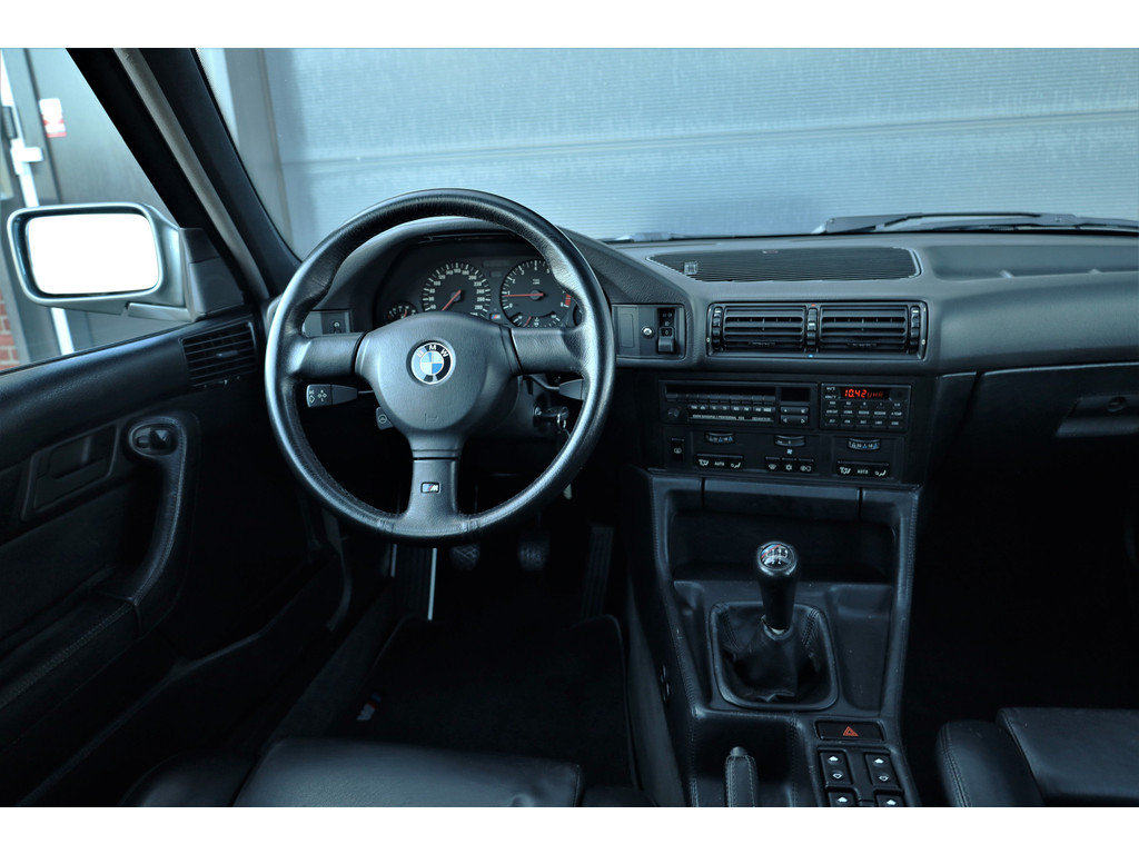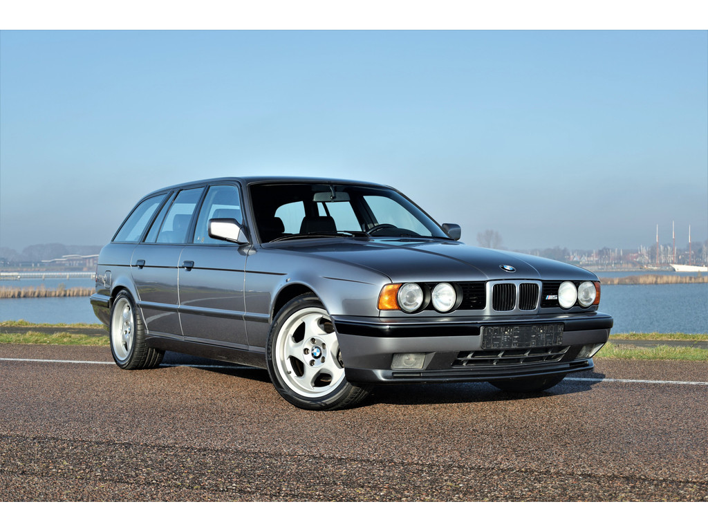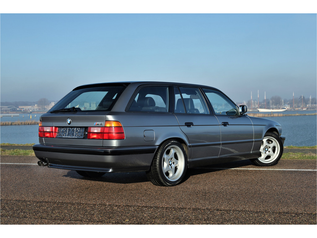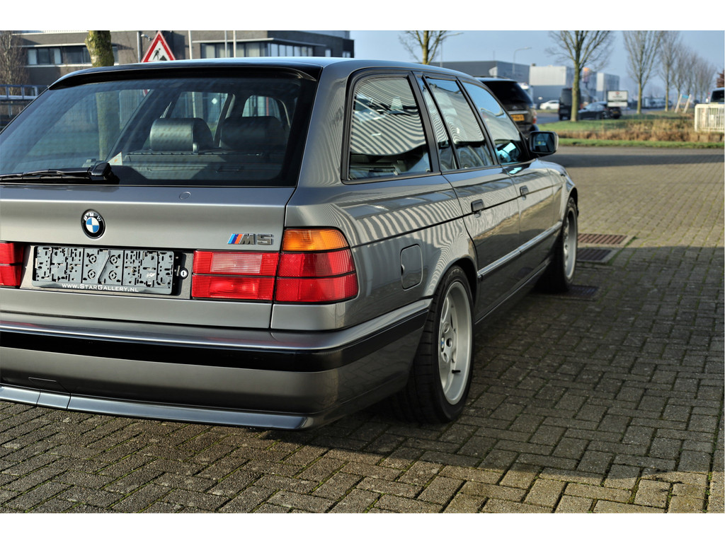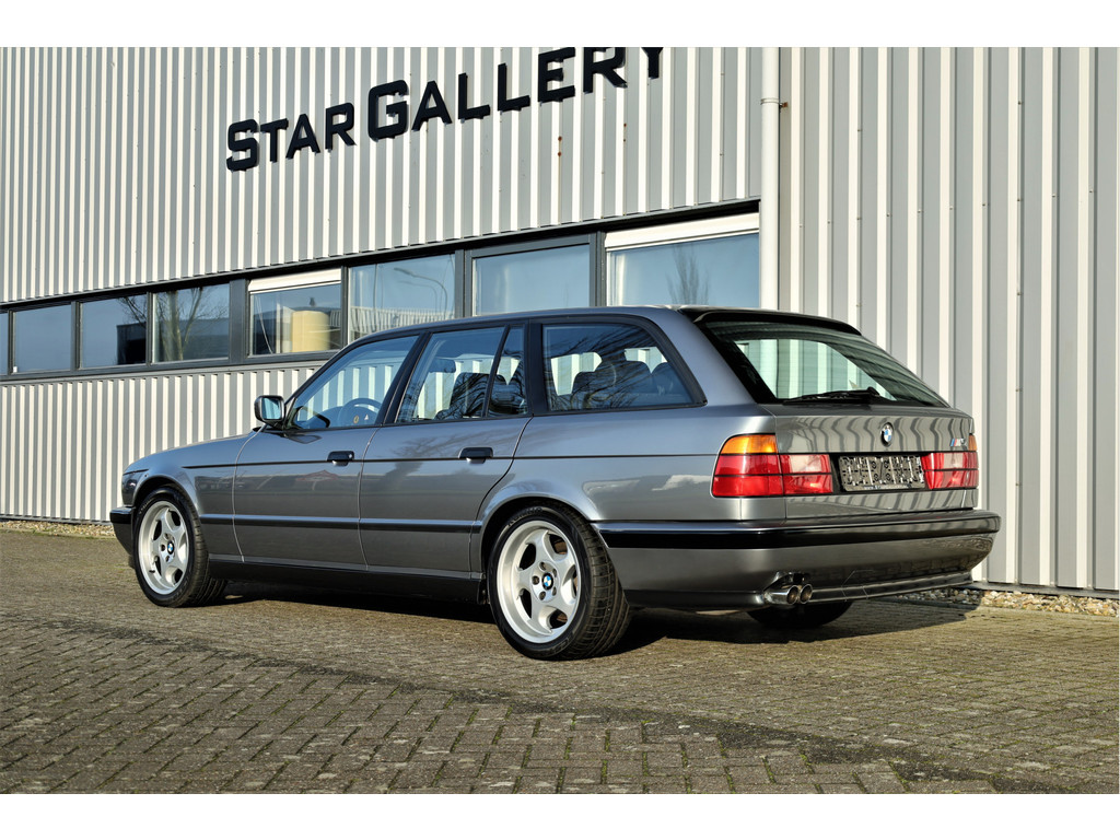Sensationeel mooie blijvend fiscaal aantrekkelijke BMW E34 M5 Touring uitgevoerd in "granitsilber" met een zwart leder interieur; een droomcombinatie.