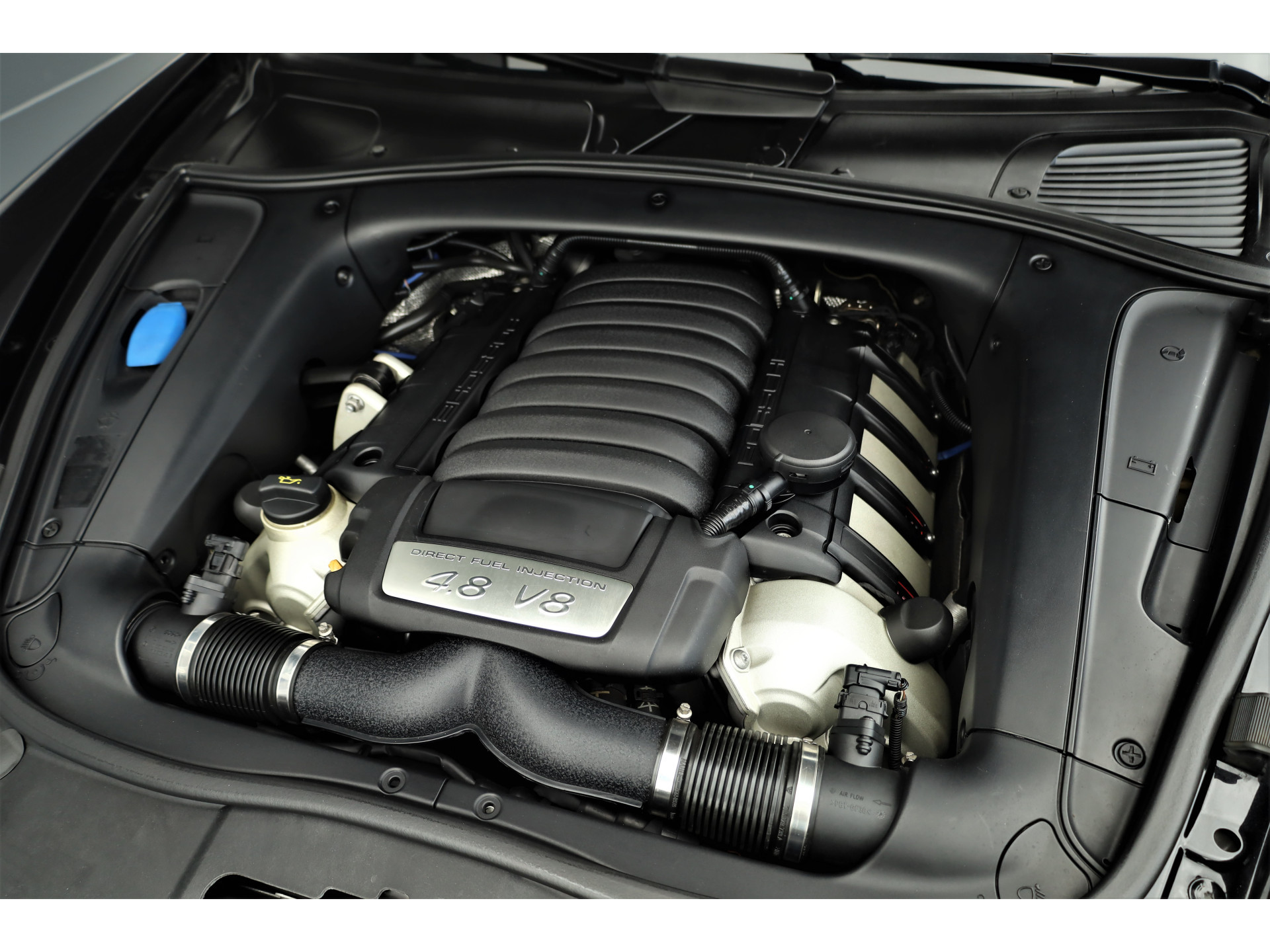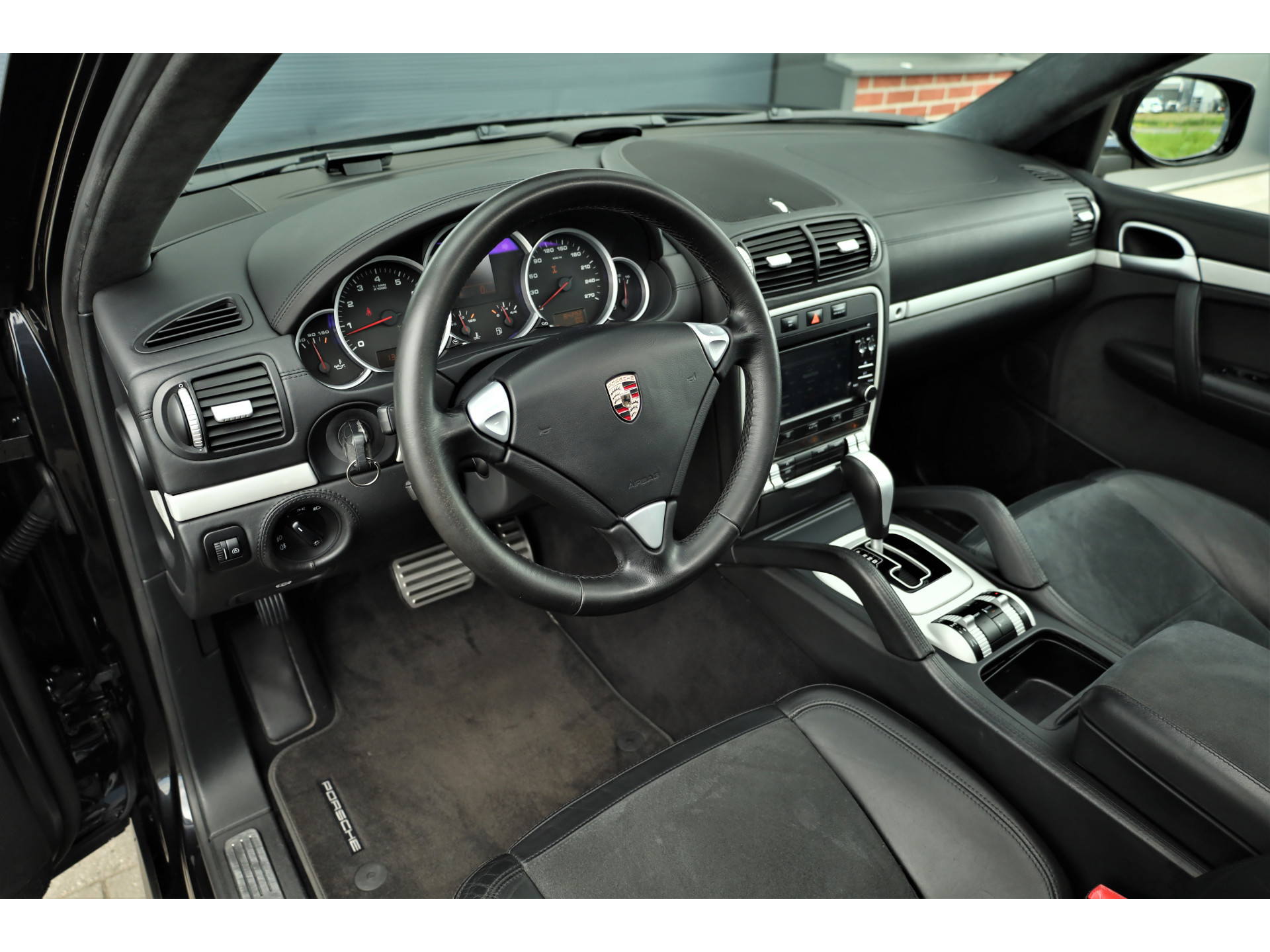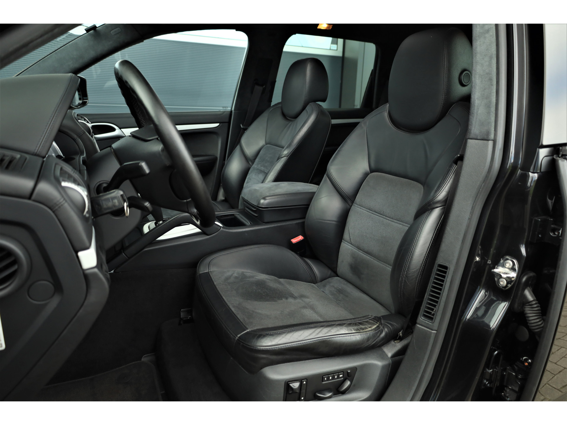 Lekkere dikke fiscaal vriendelijke Porsche Cayenne 4.8 GTS, uitgevoerd in zwart metallic met een zwart/donkergrijs leder/alcantara interieur; een altijd goede combinatie.