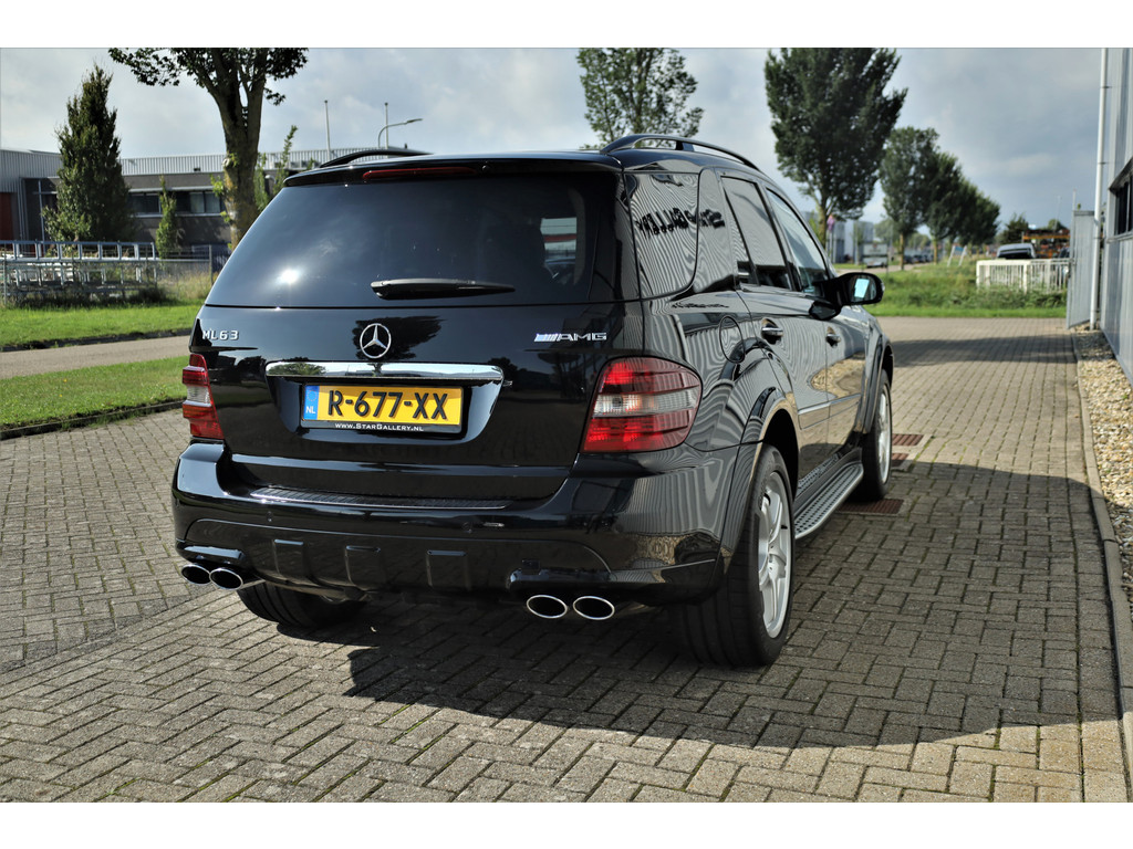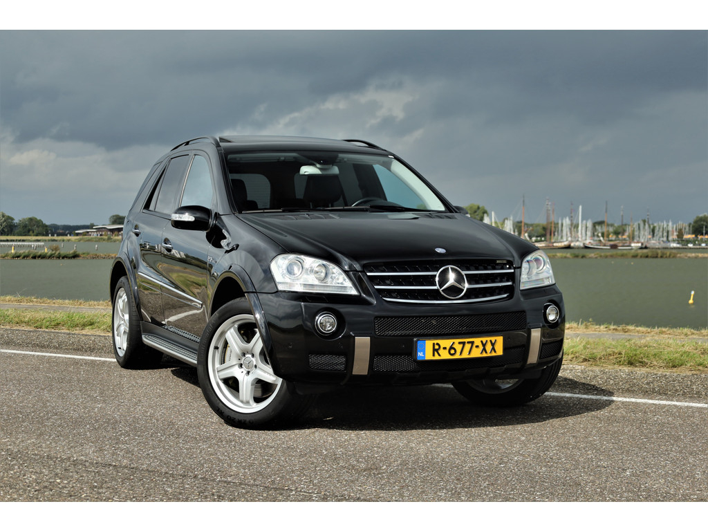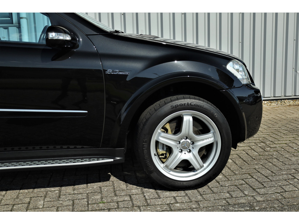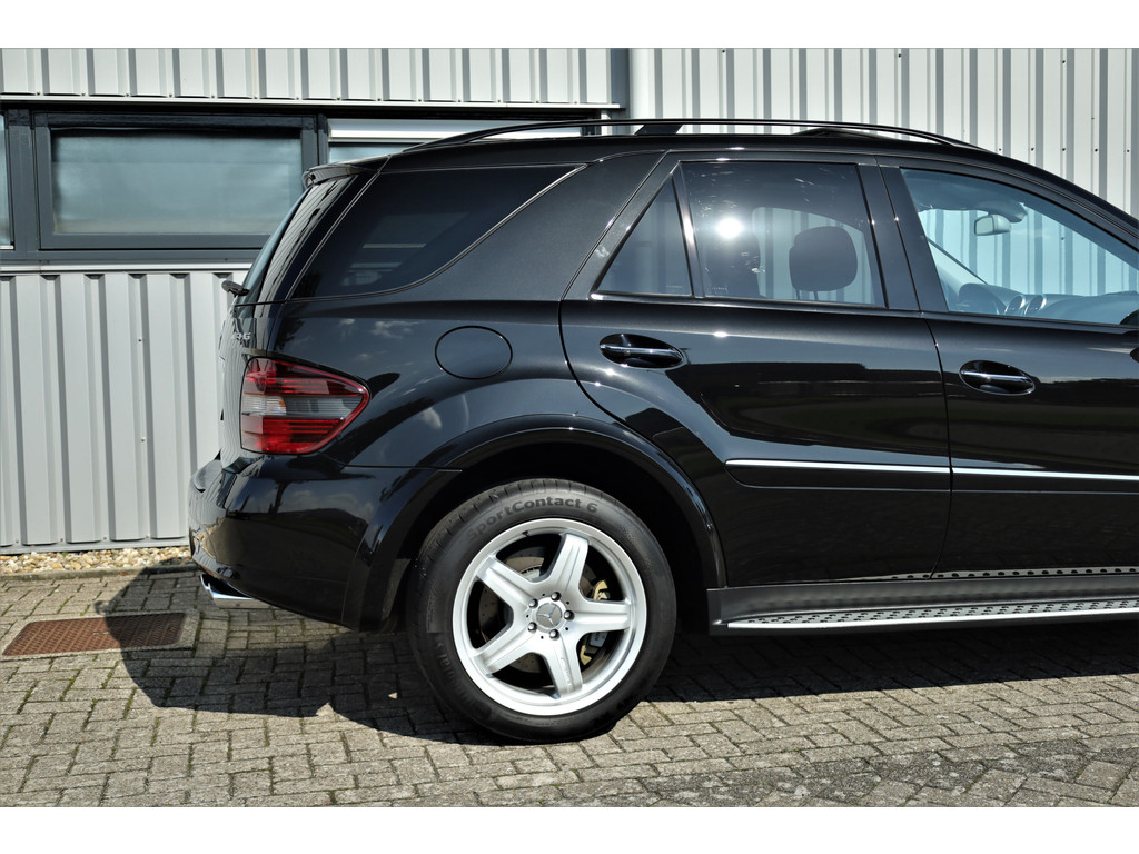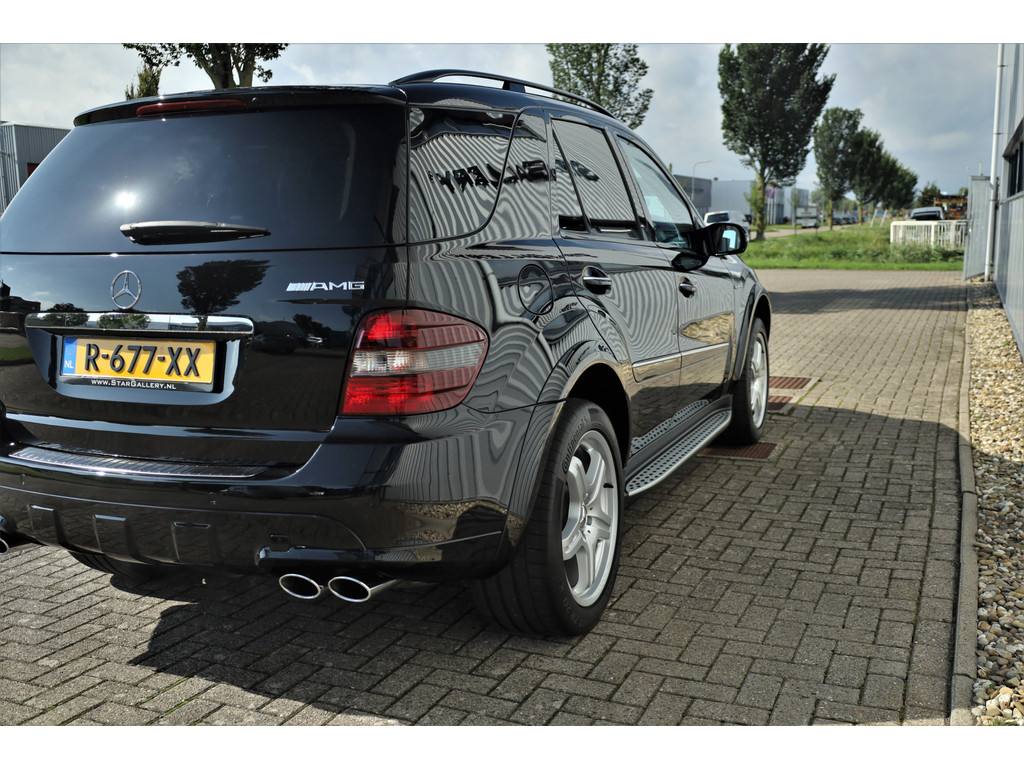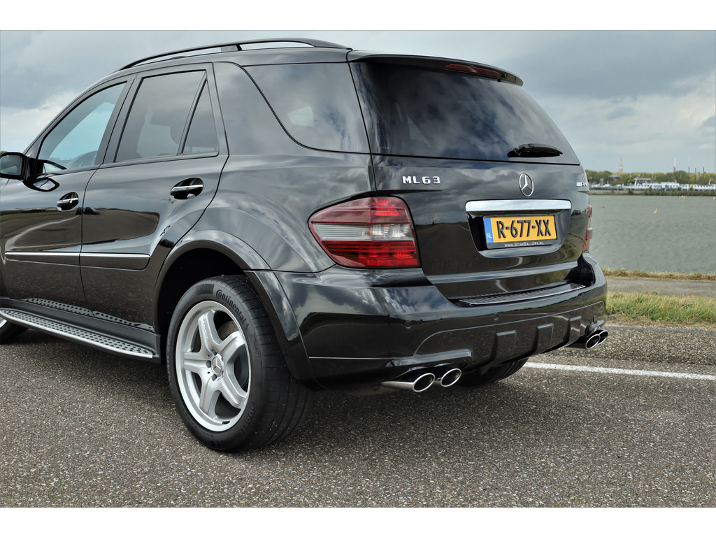 Black beast alert! Sensationeel mooie en retesnelle Mercedes ML63AMG, uitgevoerd in de altijd goede kleur obsidiaan zwart metallic.
