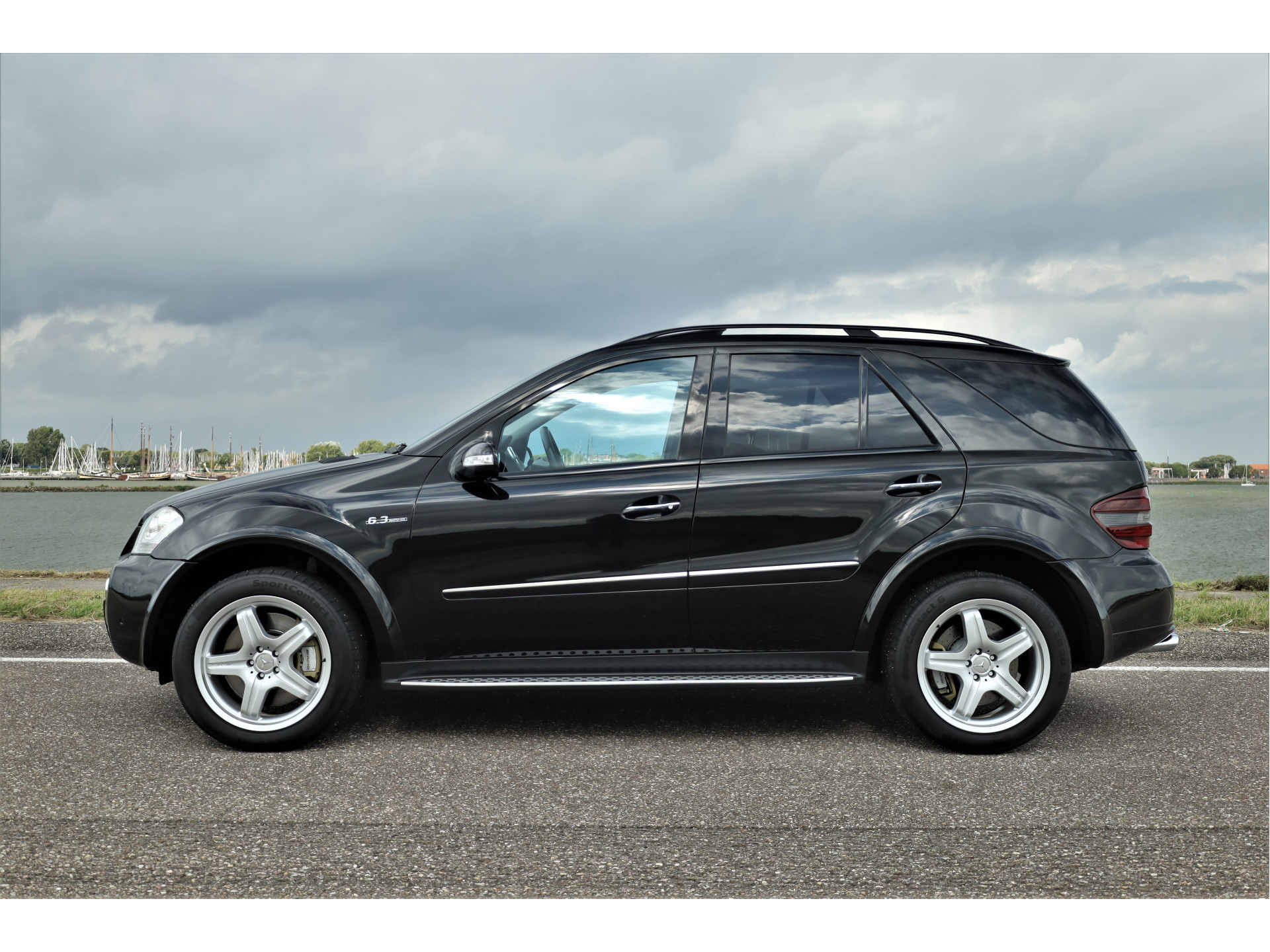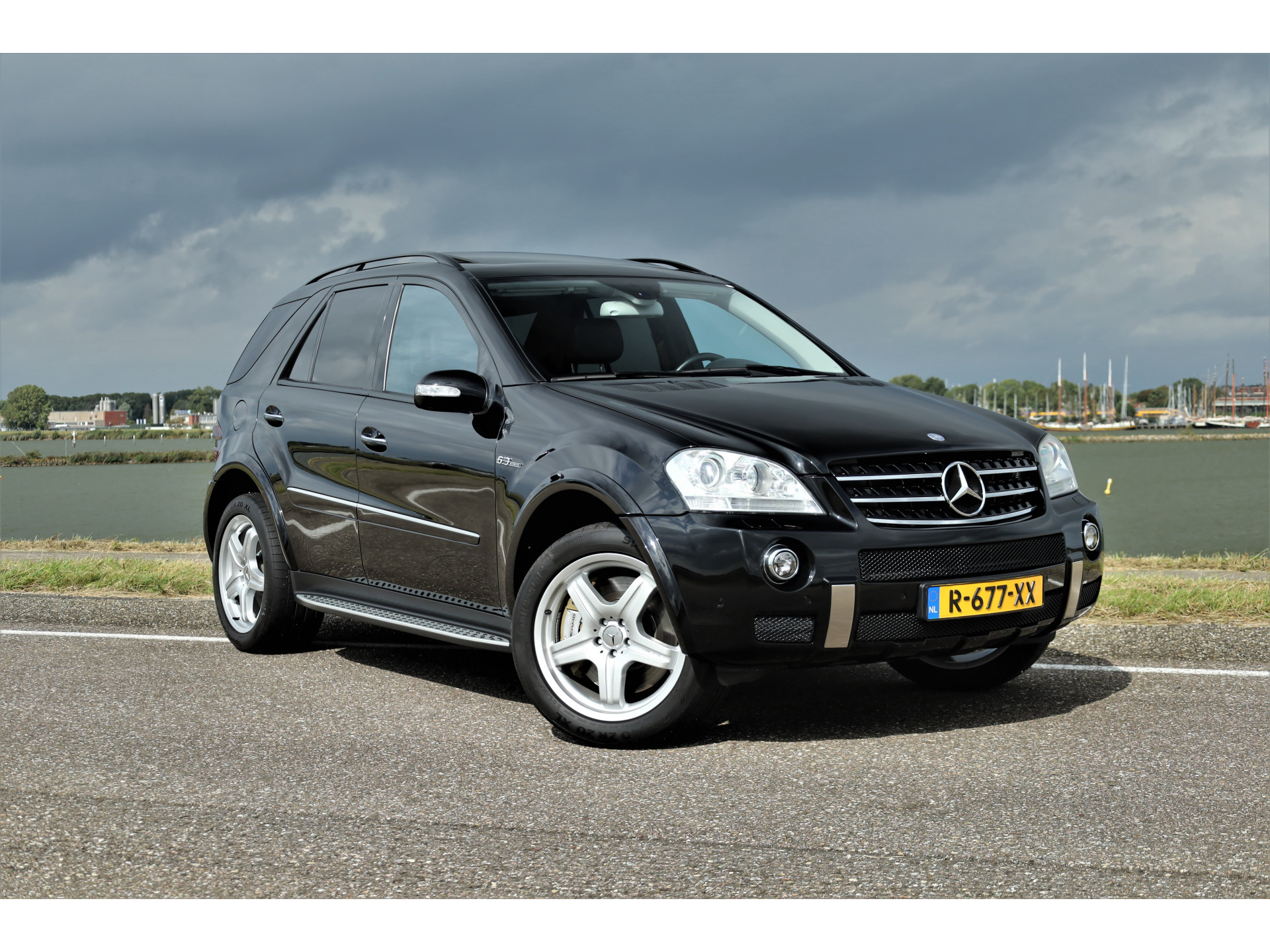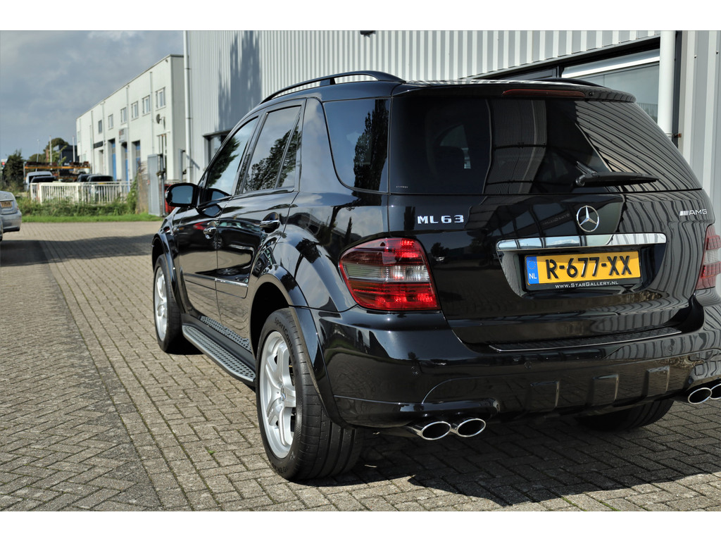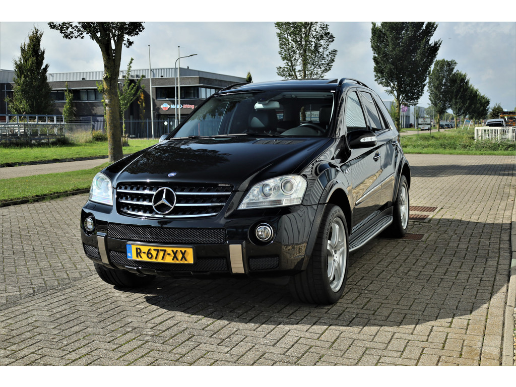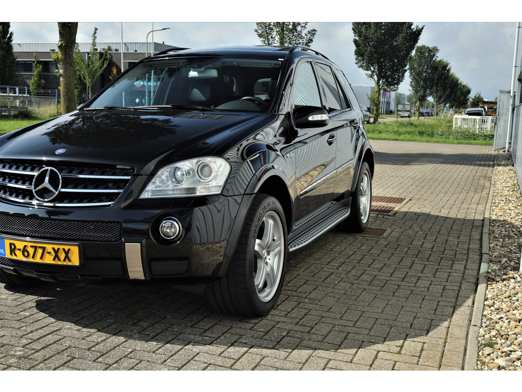 Black beast alert! Sensationeel mooie en retesnelle Mercedes ML63AMG, uitgevoerd in de altijd goede kleur obsidiaan zwart metallic.