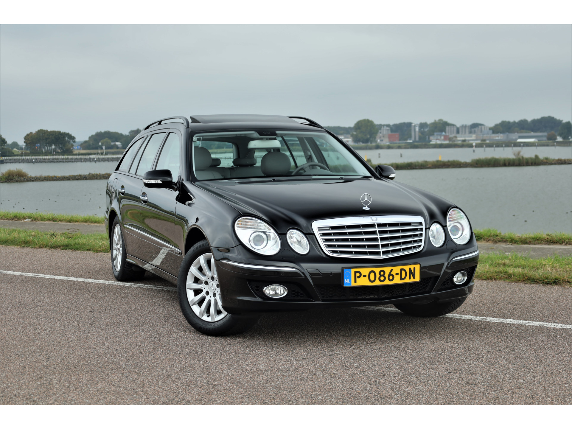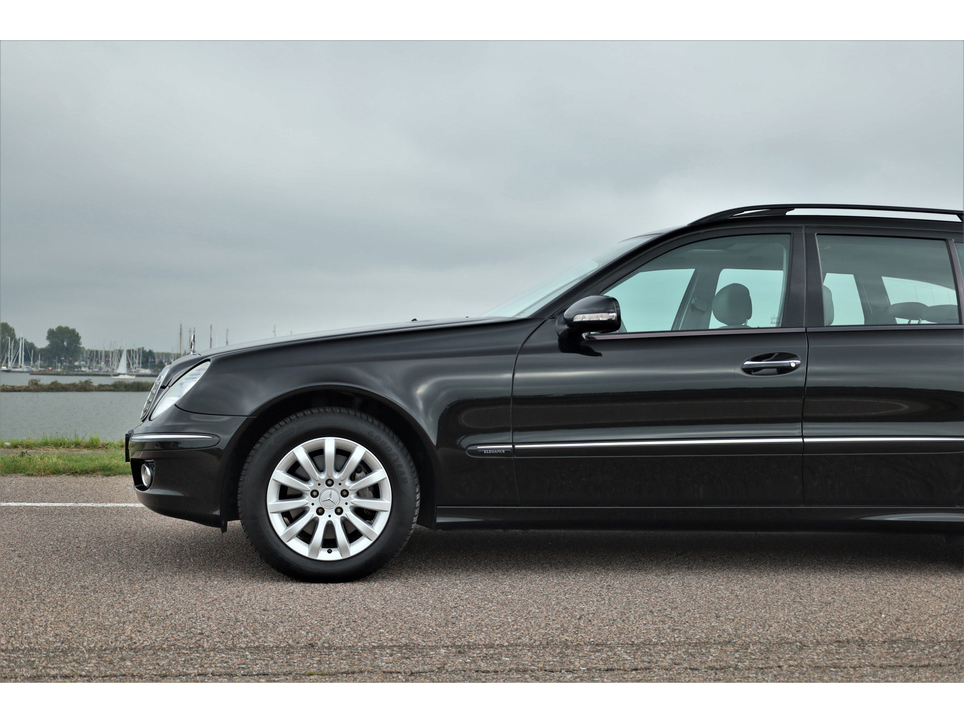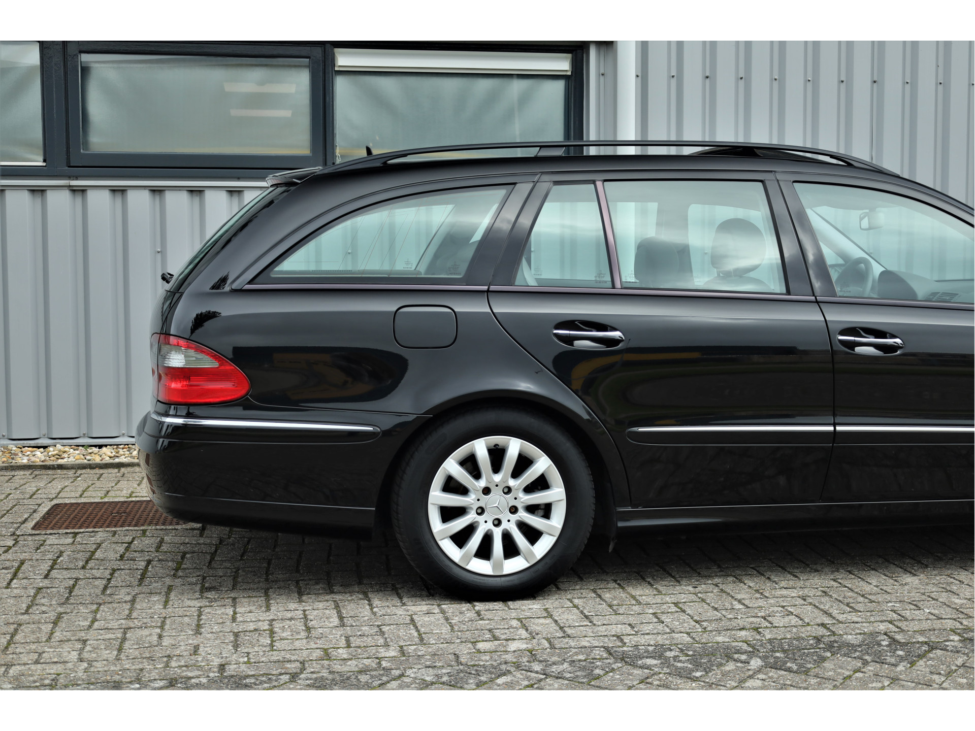 Zeer verzorgde fiscaal aantrekkelijke Mercedes E280 Elegance Estate, uitgevoerd in de prachtige kleur obsidiaan zwart metallic met een grijs leder interieur; een super combinatie.