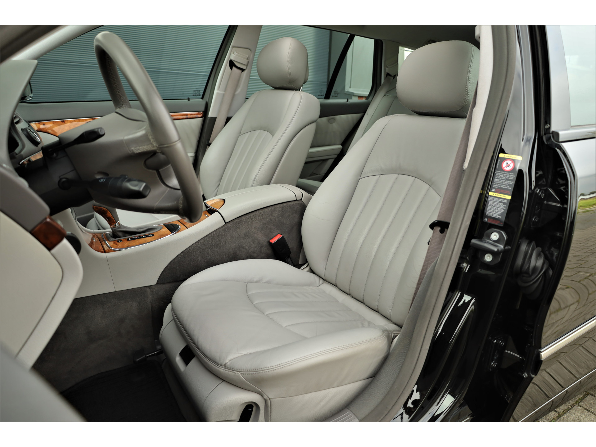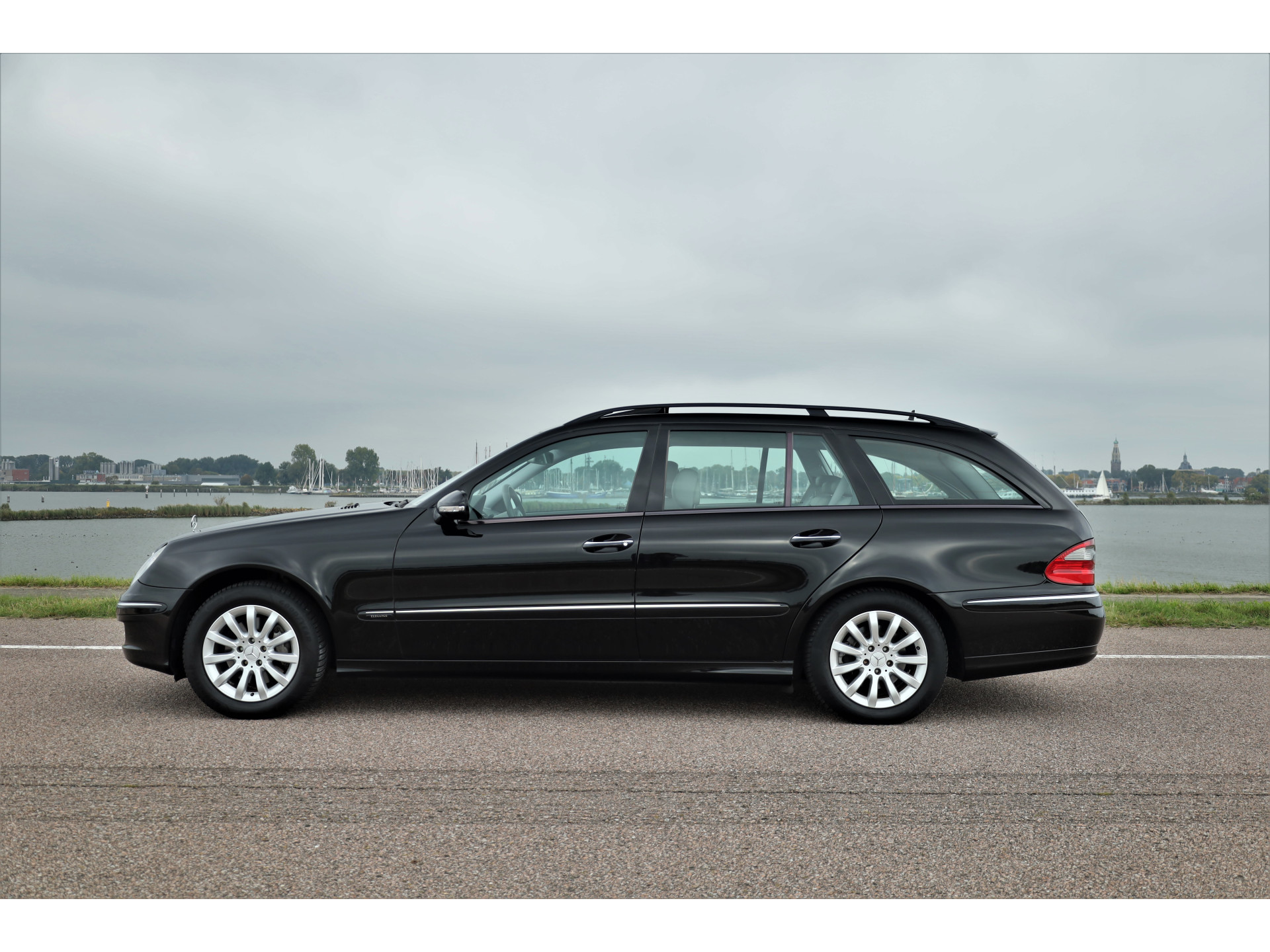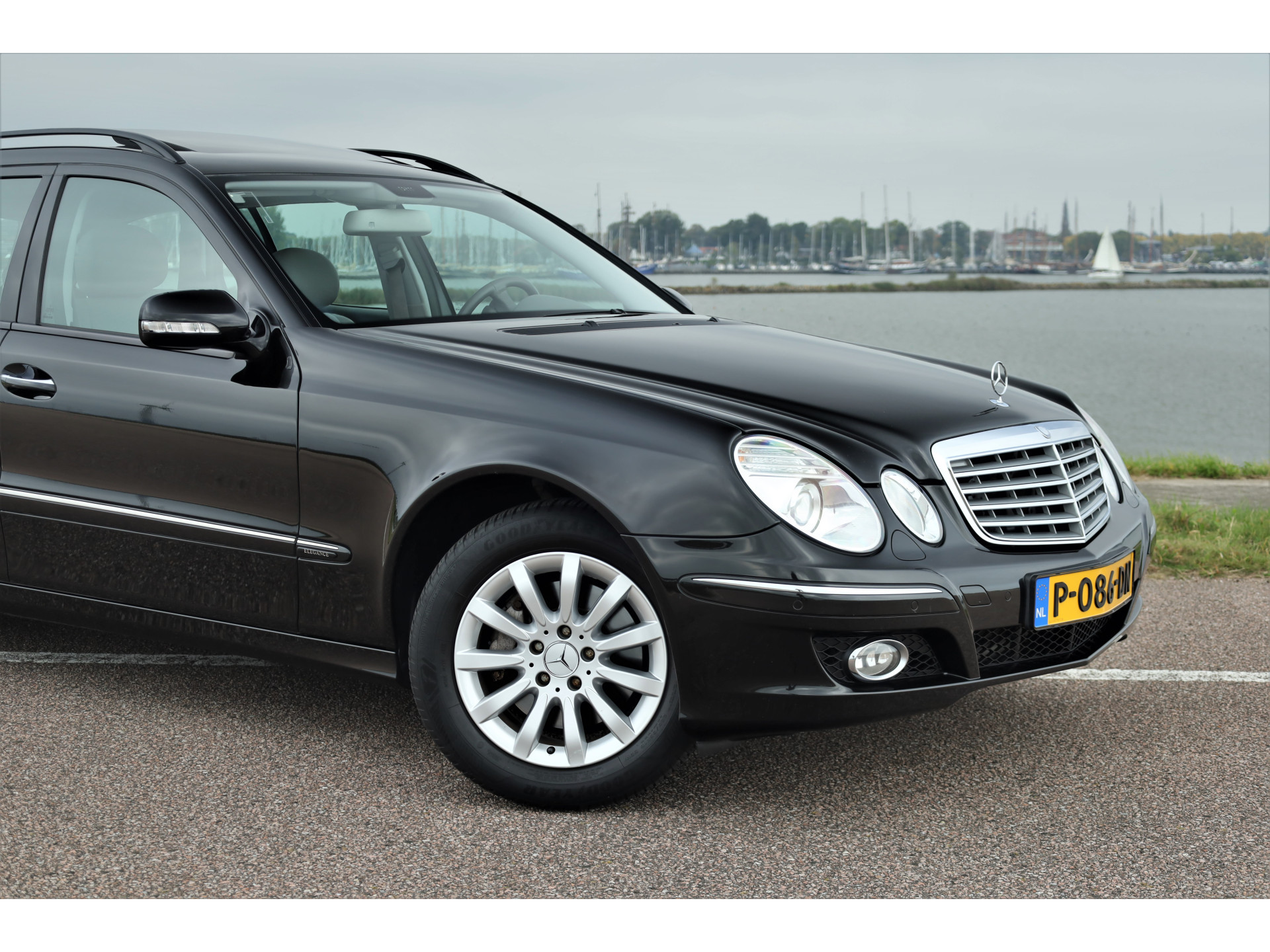 Zeer verzorgde fiscaal aantrekkelijke Mercedes E280 Elegance Estate, uitgevoerd in de prachtige kleur obsidiaan zwart metallic met een grijs leder interieur; een super combinatie.