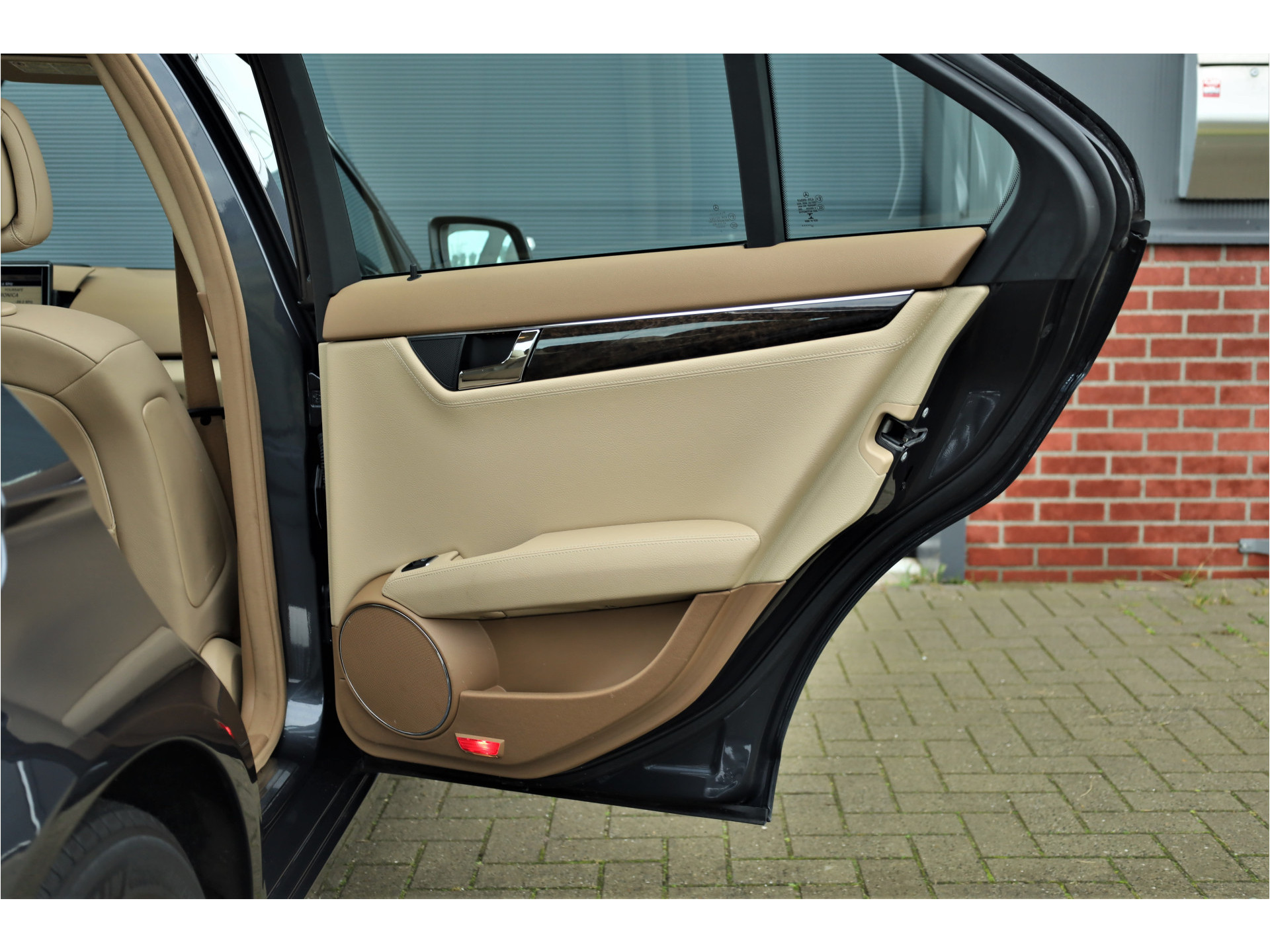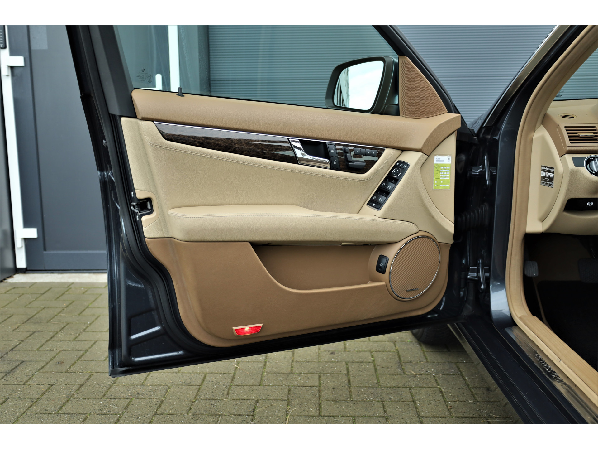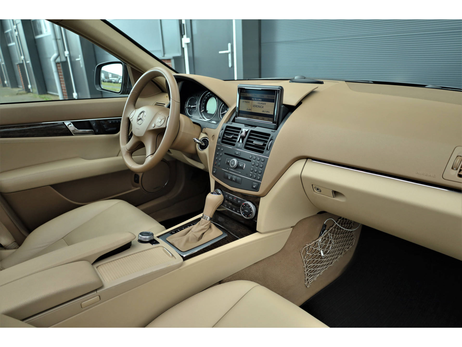 Prachtige fiscaal vriendelijke Mercedes C280 Elegance Automaat, uitgevoerd in tenorietgrijs metallic met een two-tone beige interieur; een bijzonder geslaagde combinatie.