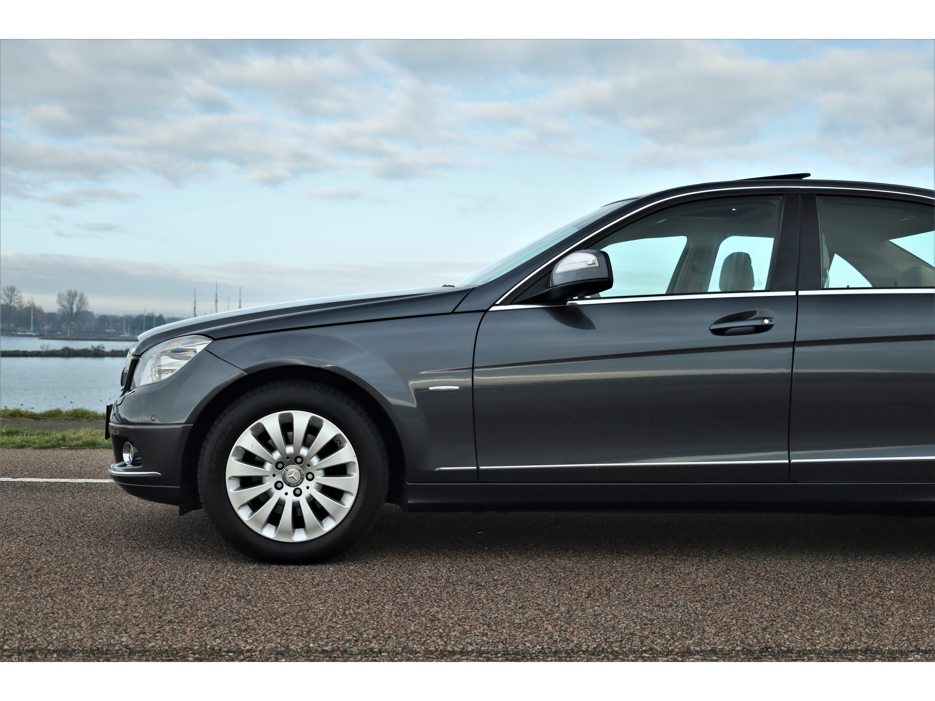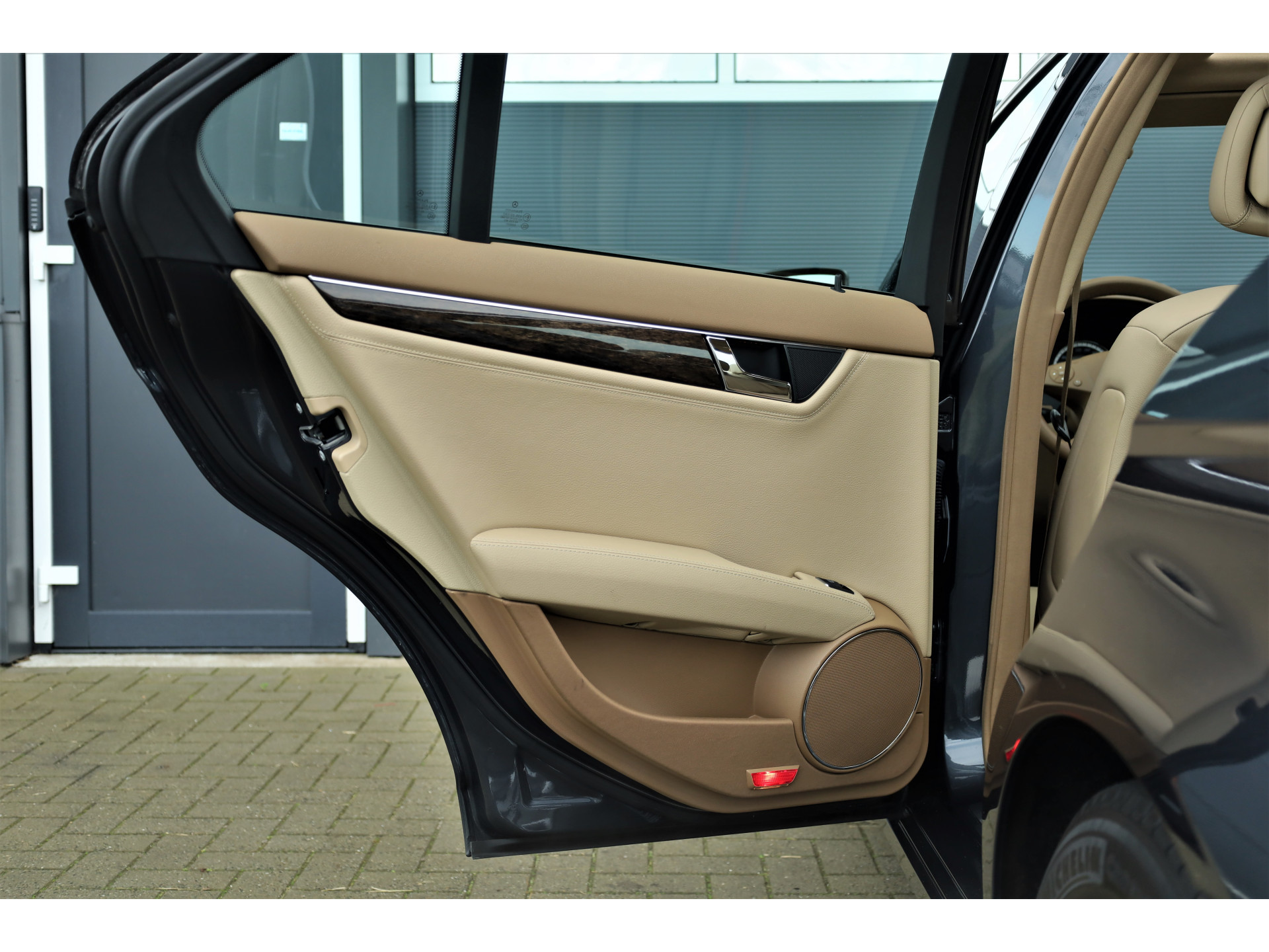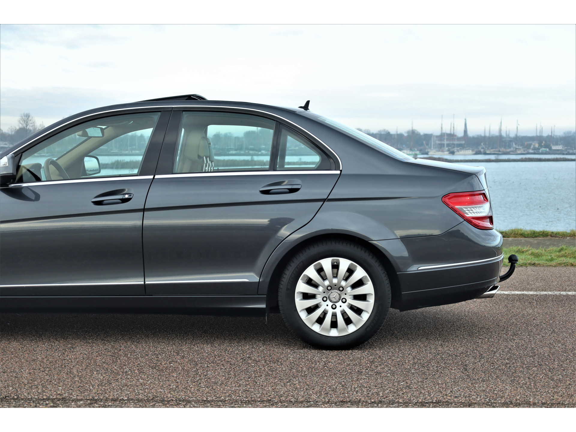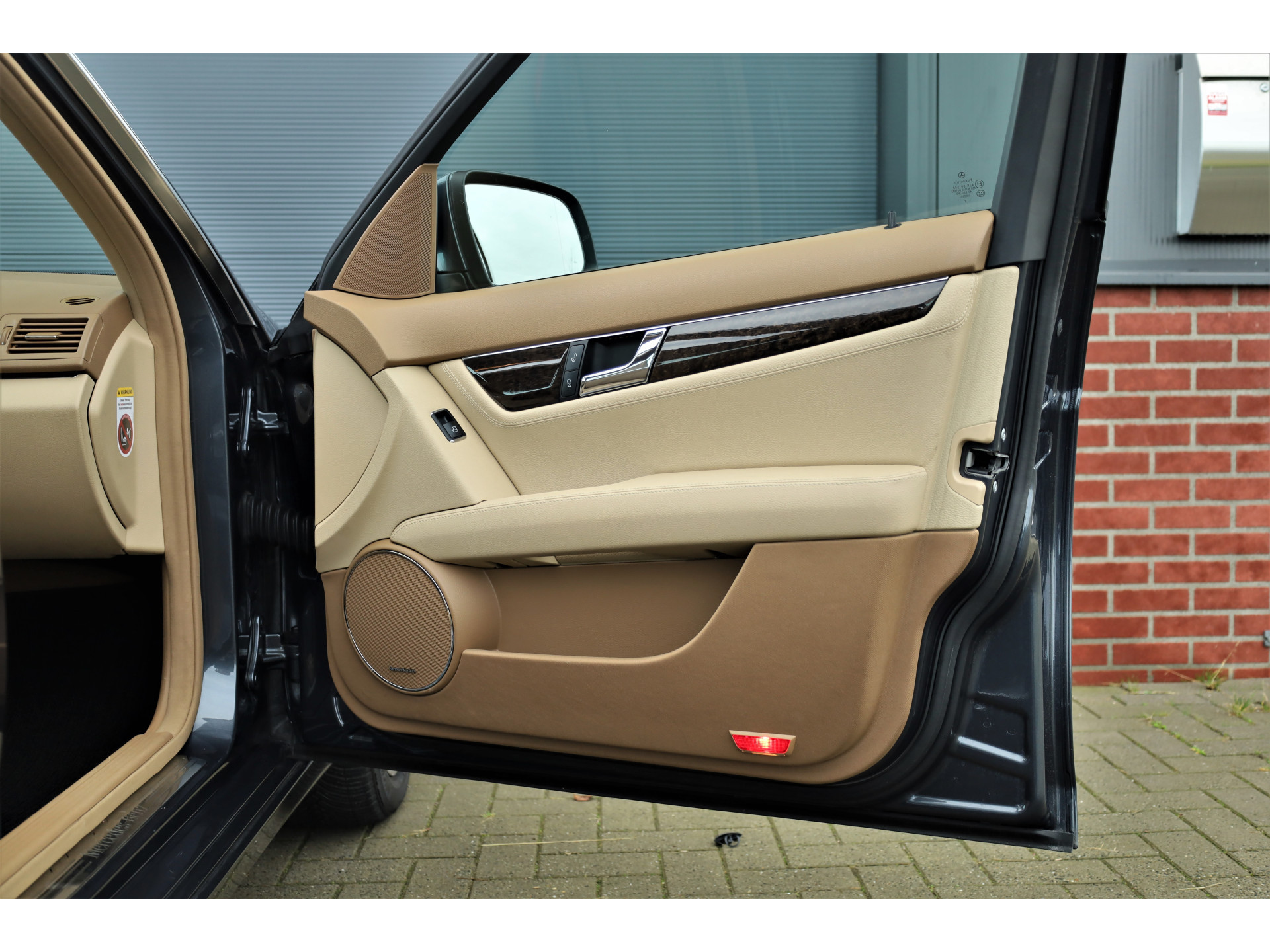 Prachtige fiscaal vriendelijke Mercedes C280 Elegance Automaat, uitgevoerd in tenorietgrijs metallic met een two-tone beige interieur; een bijzonder geslaagde combinatie.