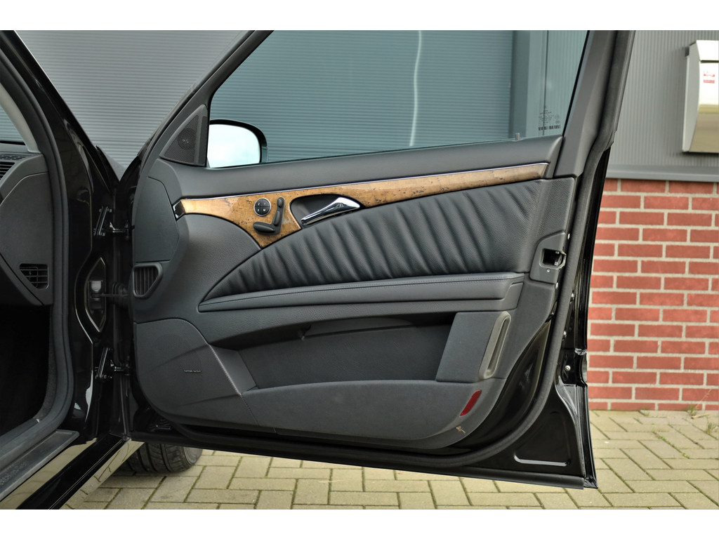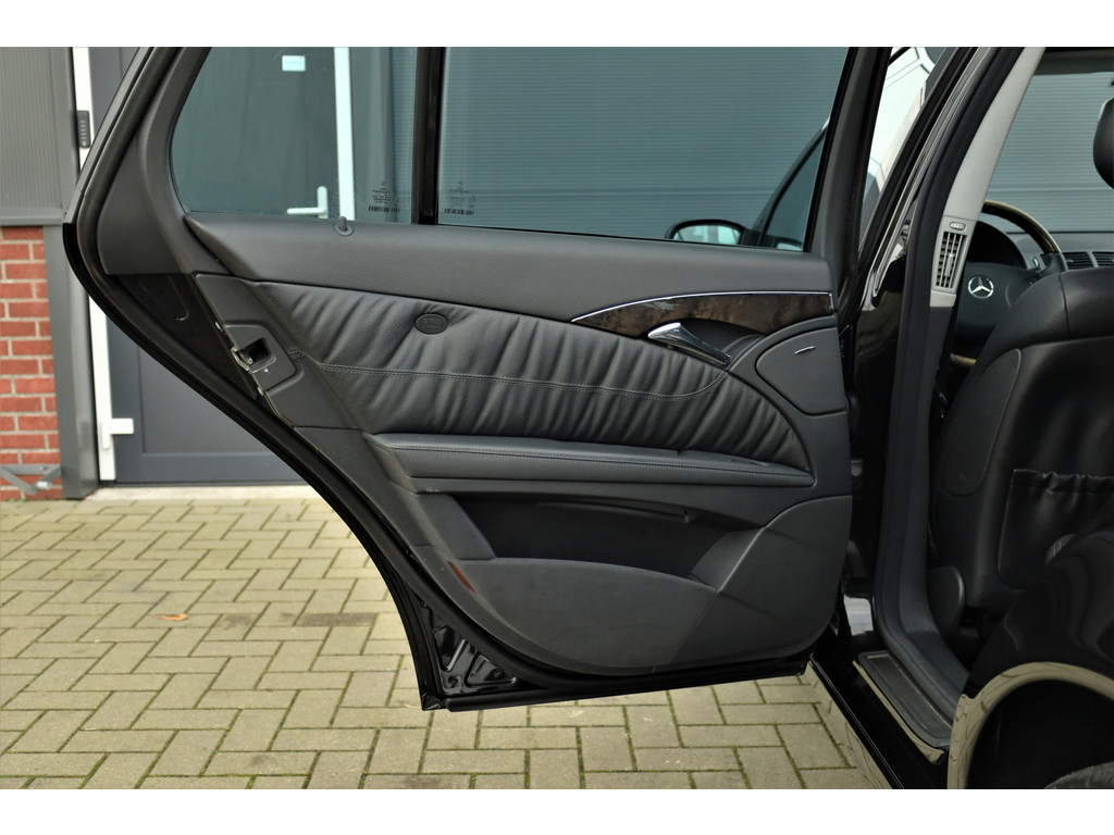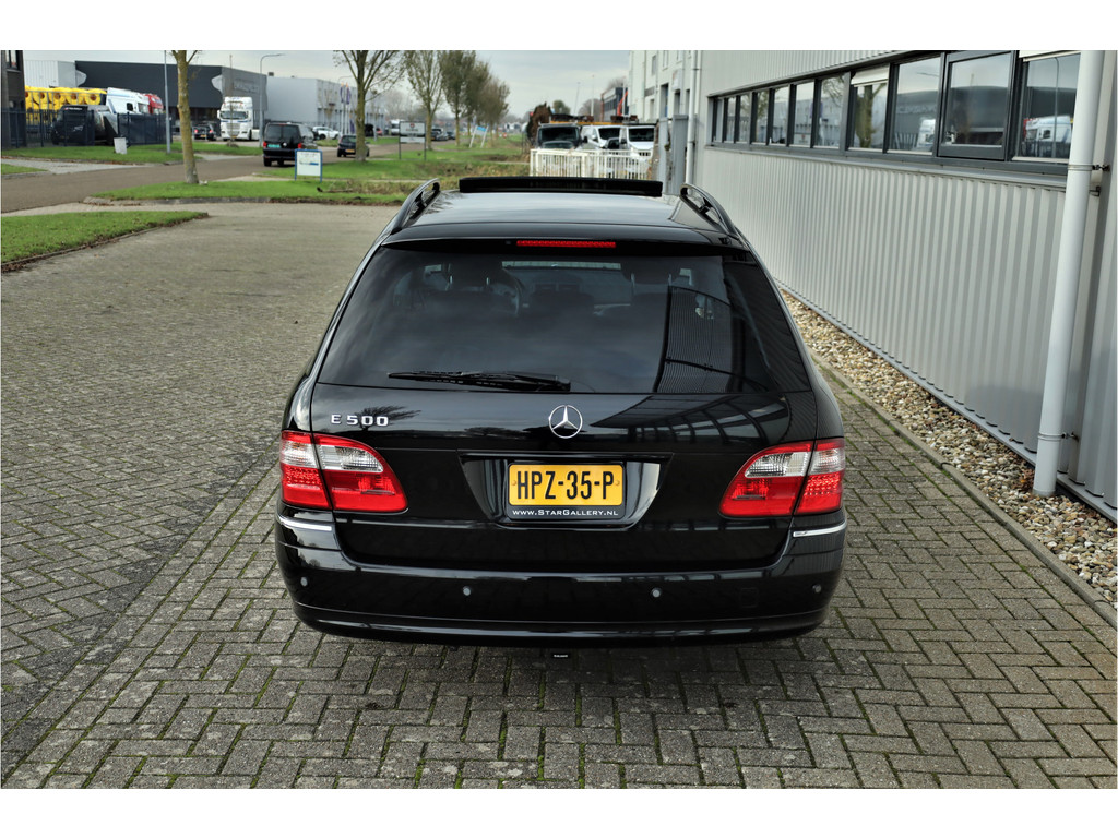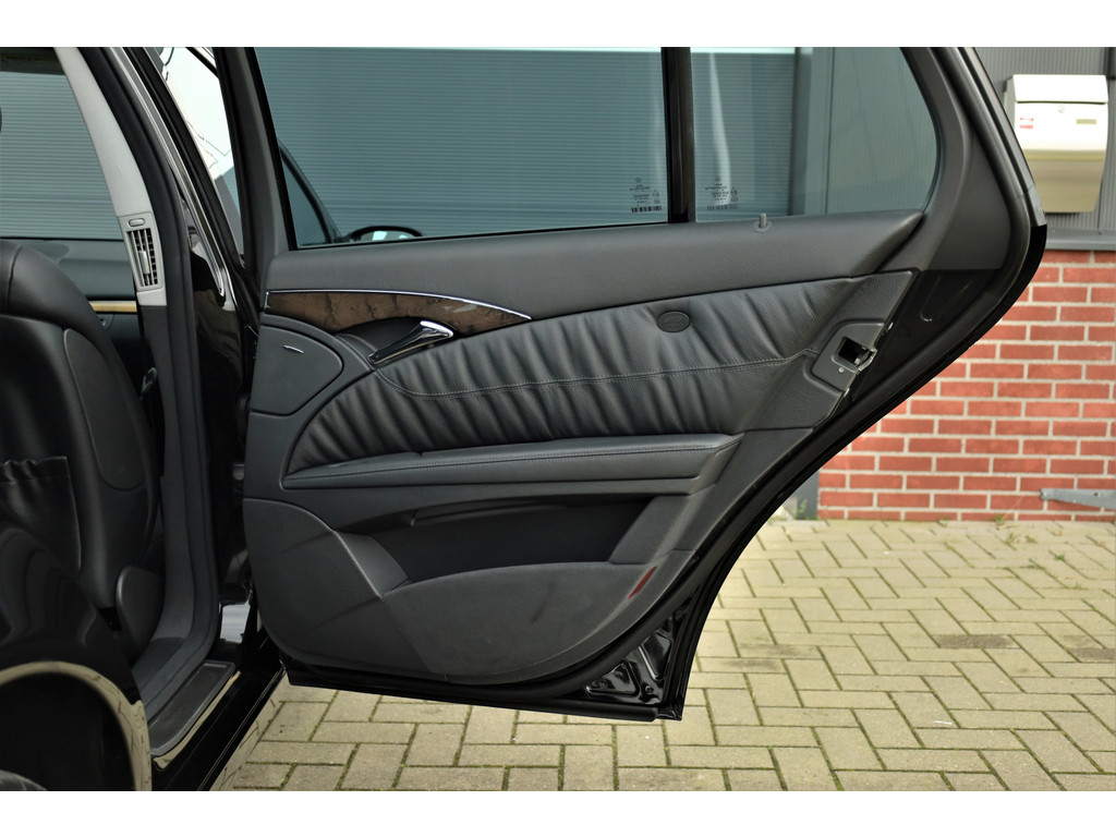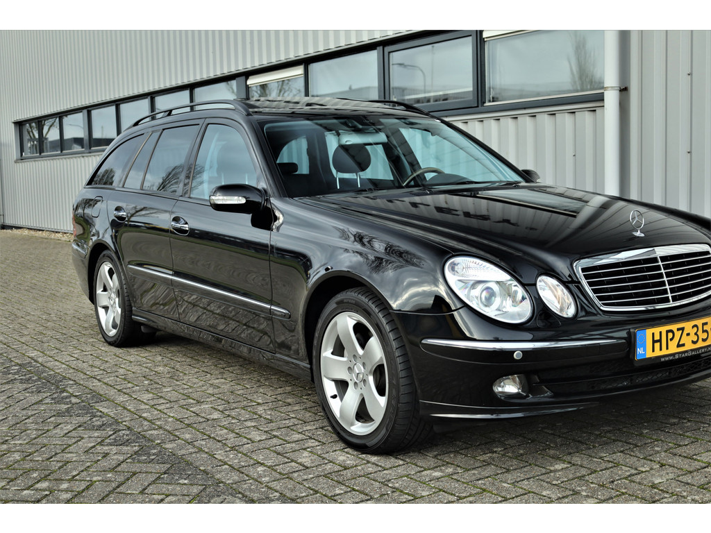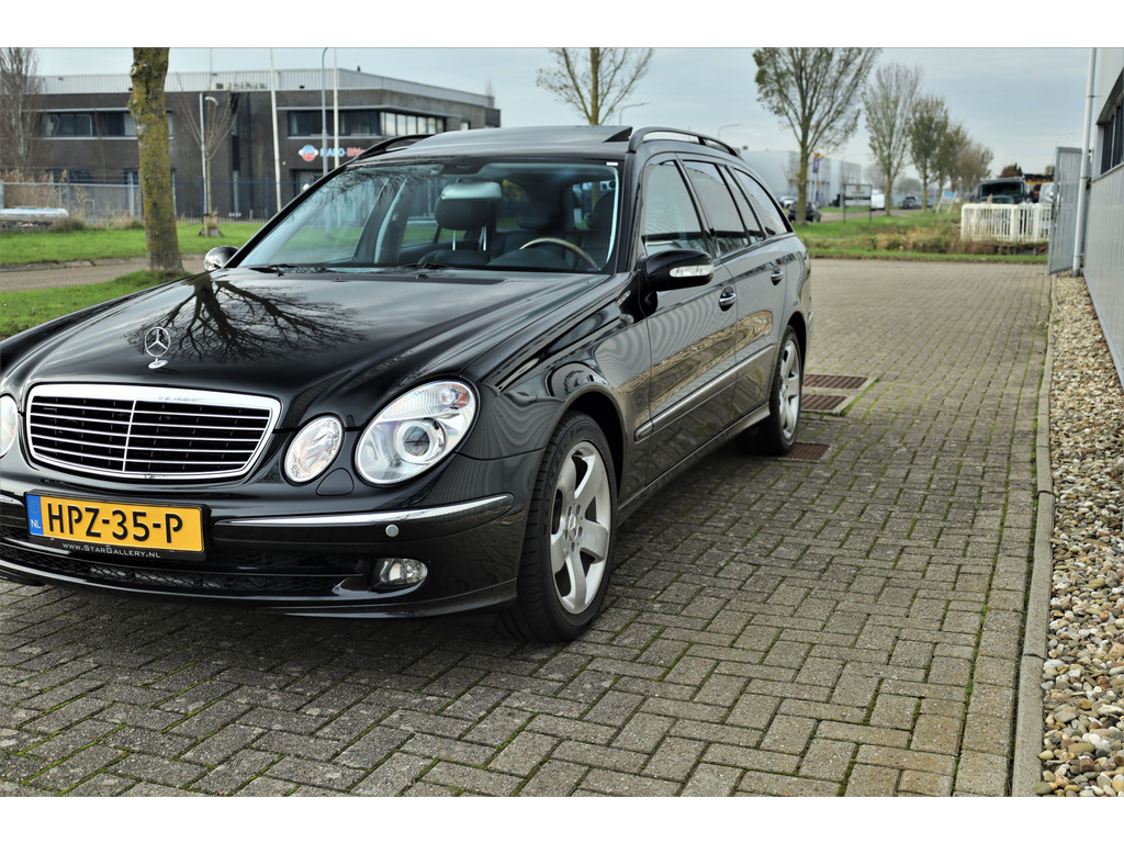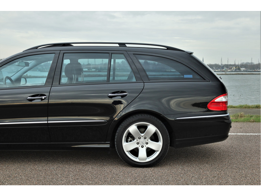 Sportieve fiscaal aantrekkelijke Mercedes E500 Combi Avantgarde met de begeerlijke 7G-Tronic automaat, uitgevoerd in obsidiaan zwart metallic met een zwart leder interieur.