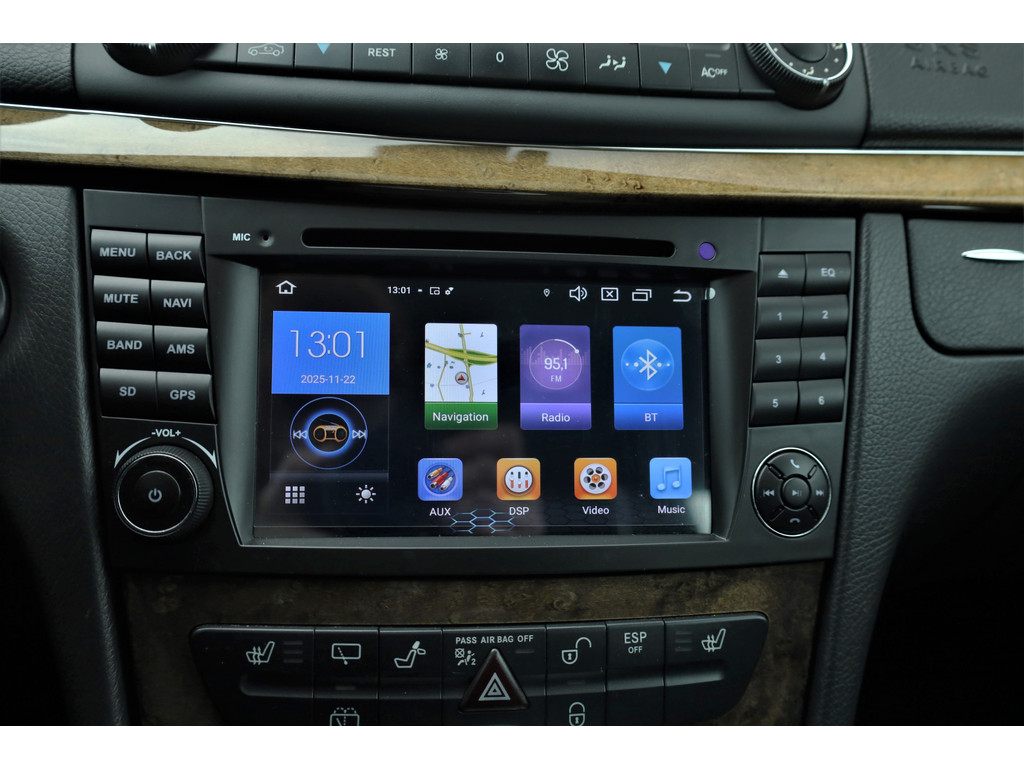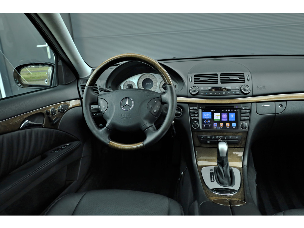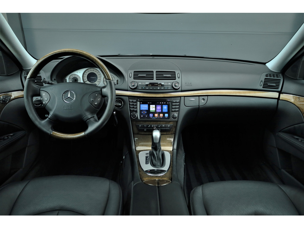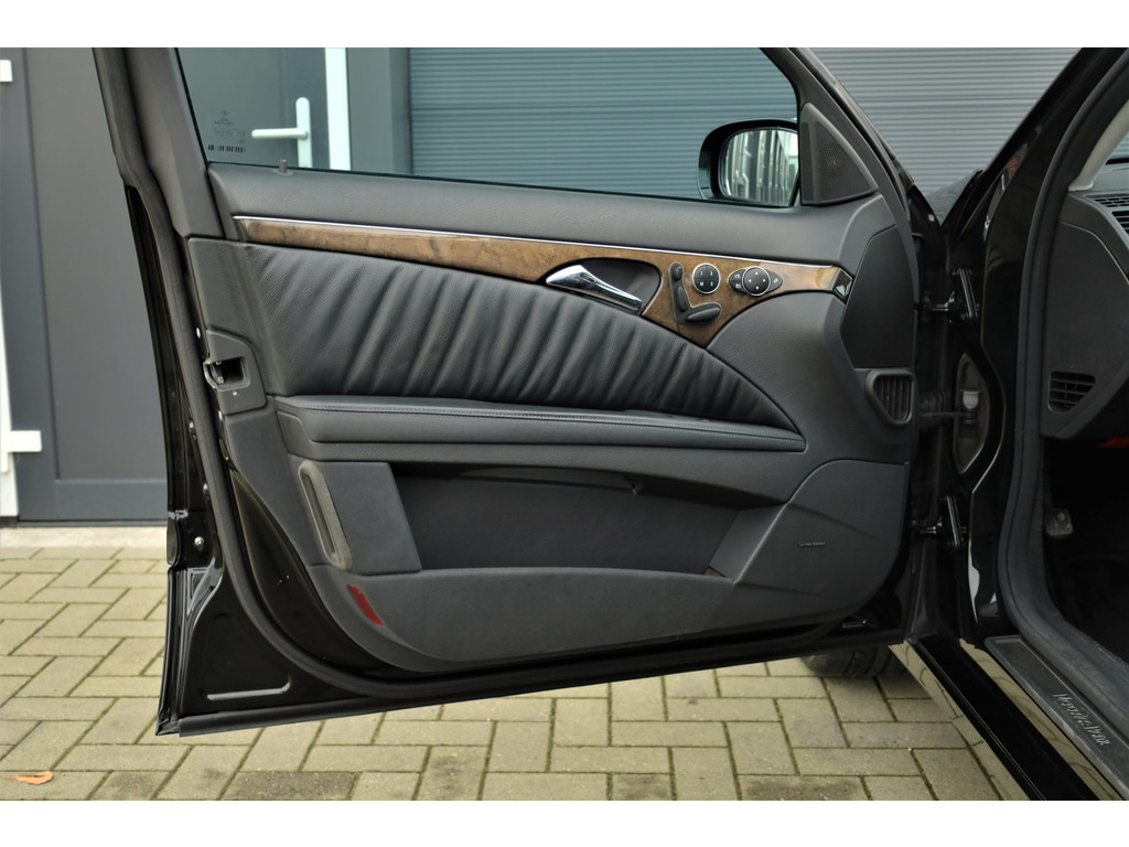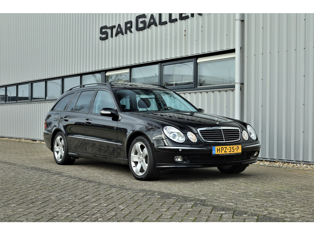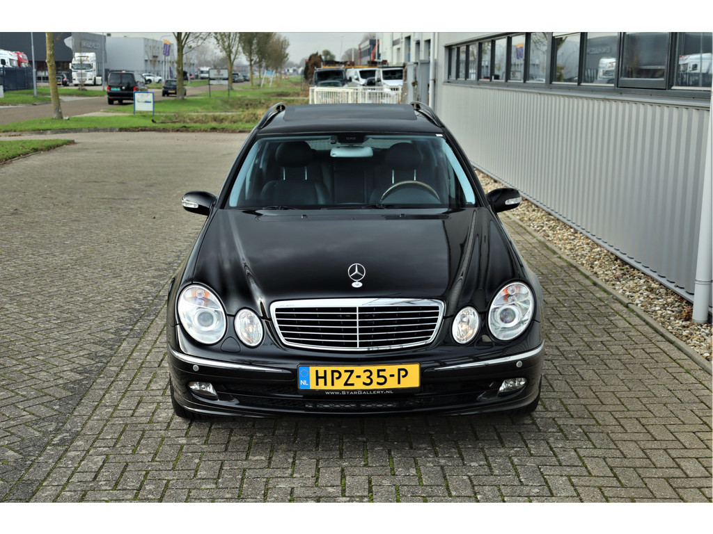 Sportieve fiscaal aantrekkelijke Mercedes E500 Combi Avantgarde met de begeerlijke 7G-Tronic automaat, uitgevoerd in obsidiaan zwart metallic met een zwart leder interieur.