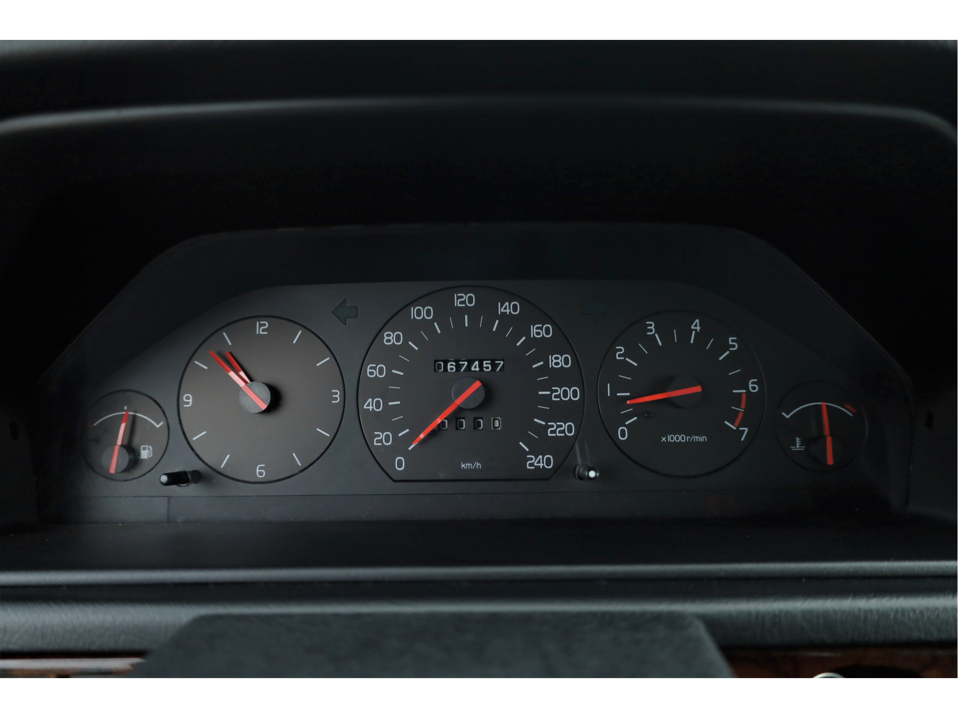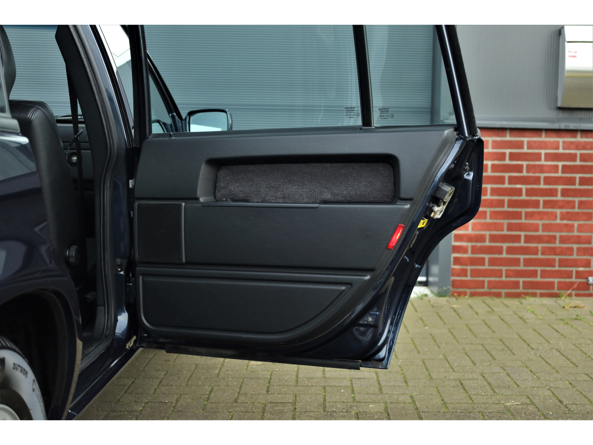 Verder is de uitrusting opmerkelijk compleet met o.a. leder, houtinleg, automatische airco, cruise control, elektrische ramen voor en achter, elektrisch verstelbare en verwarmde spiegels, stoelverwarming, originele radio/cassette speler, elektrische antenne, centrale deurvergrendeling, lichtmetalen velgen, metallic lak, getint glas, etc.