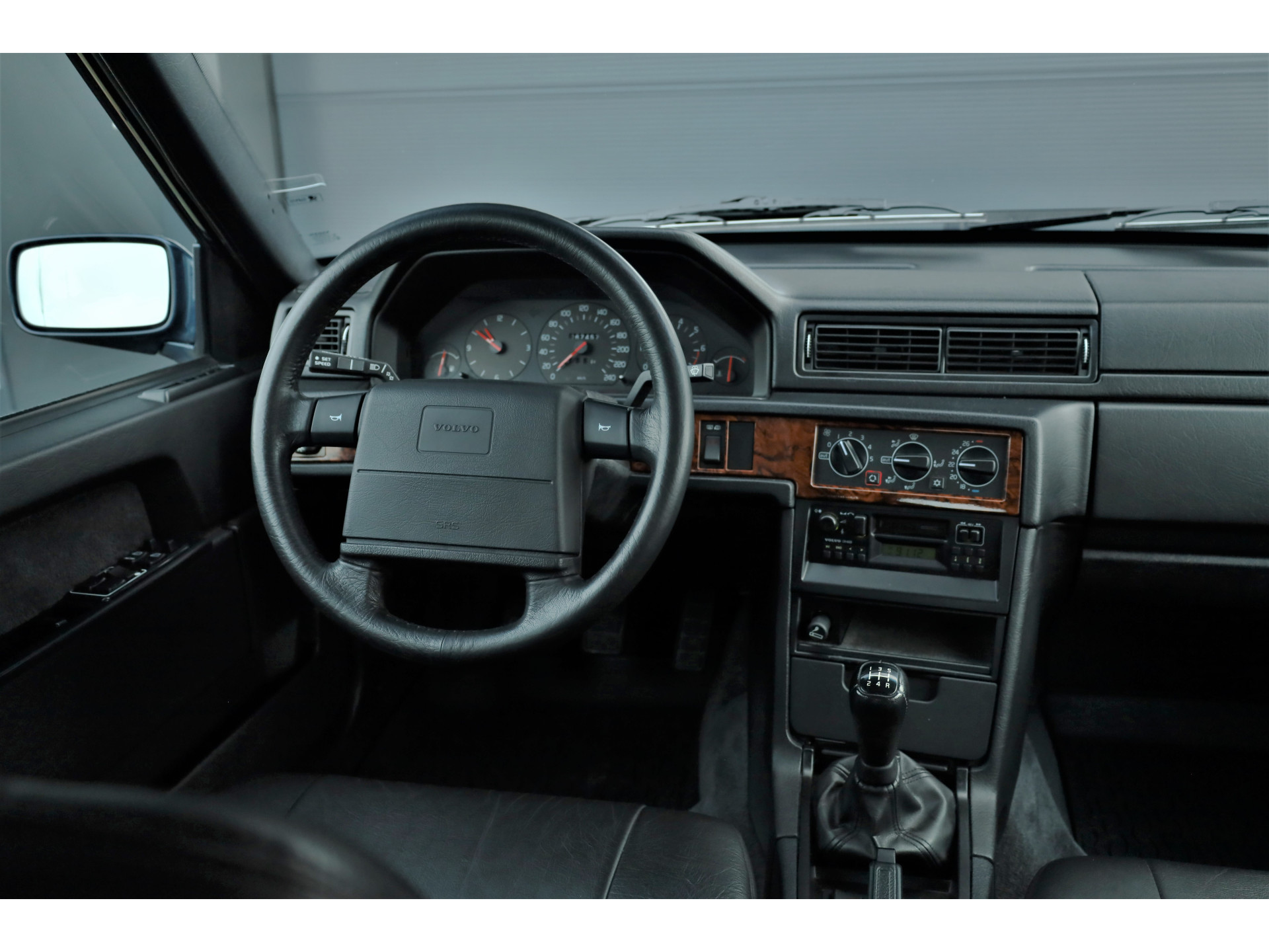 Sensationeel mooie en blijvend fiscaal vriendelijke Volvo 940 2.3 Classic, uitgevoerd in donkerblauw metallic met een zwart leder interieur; een bijzonder chique combinatie.