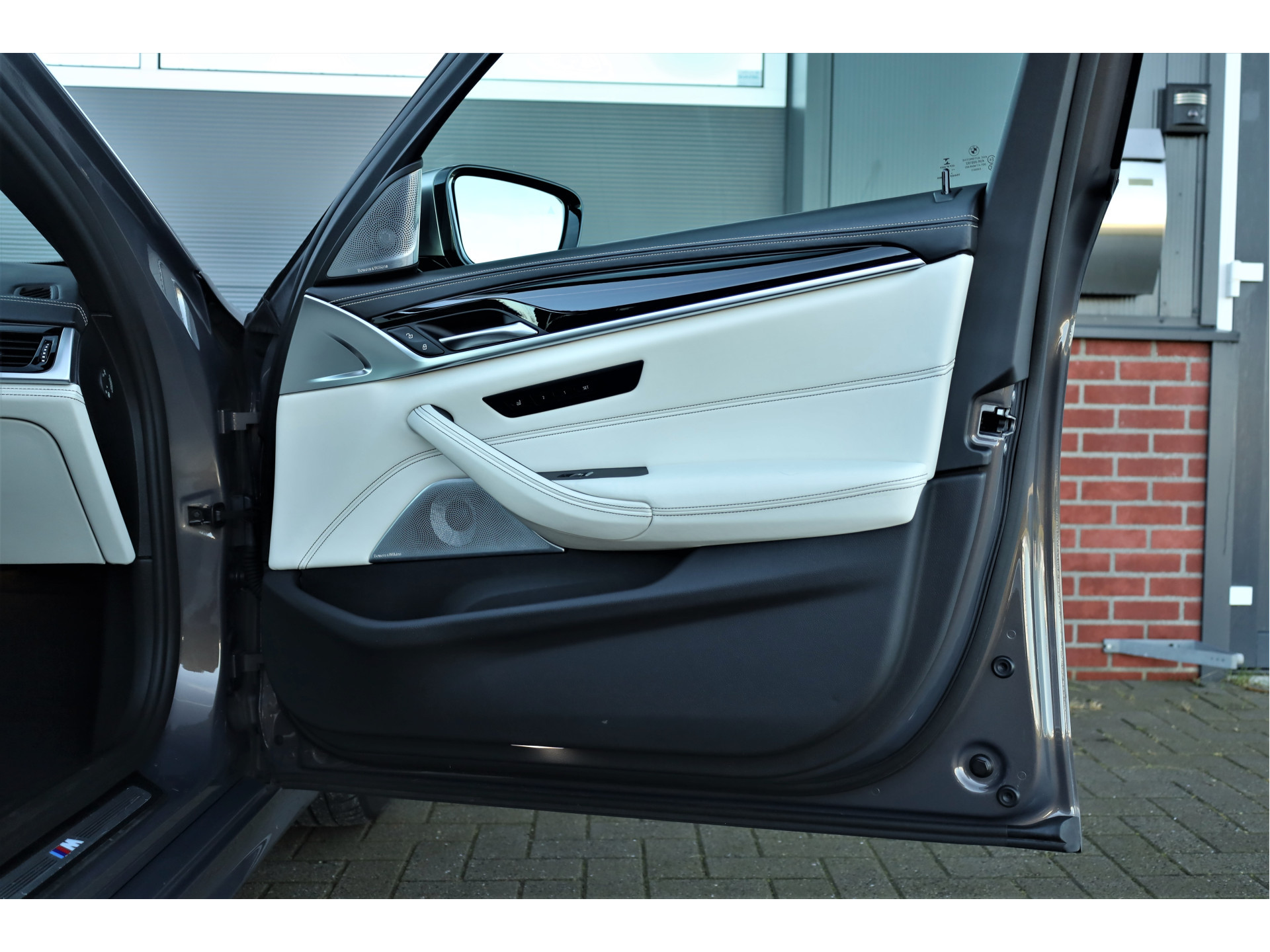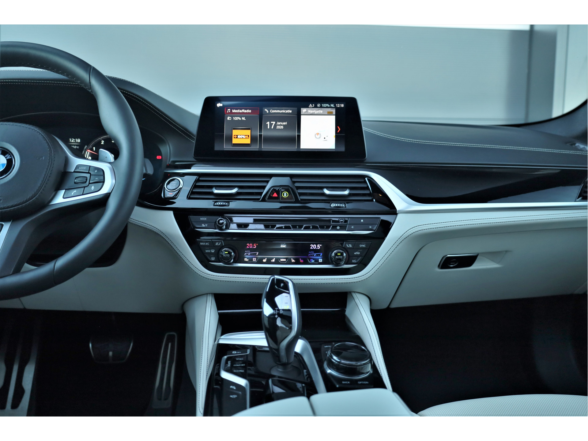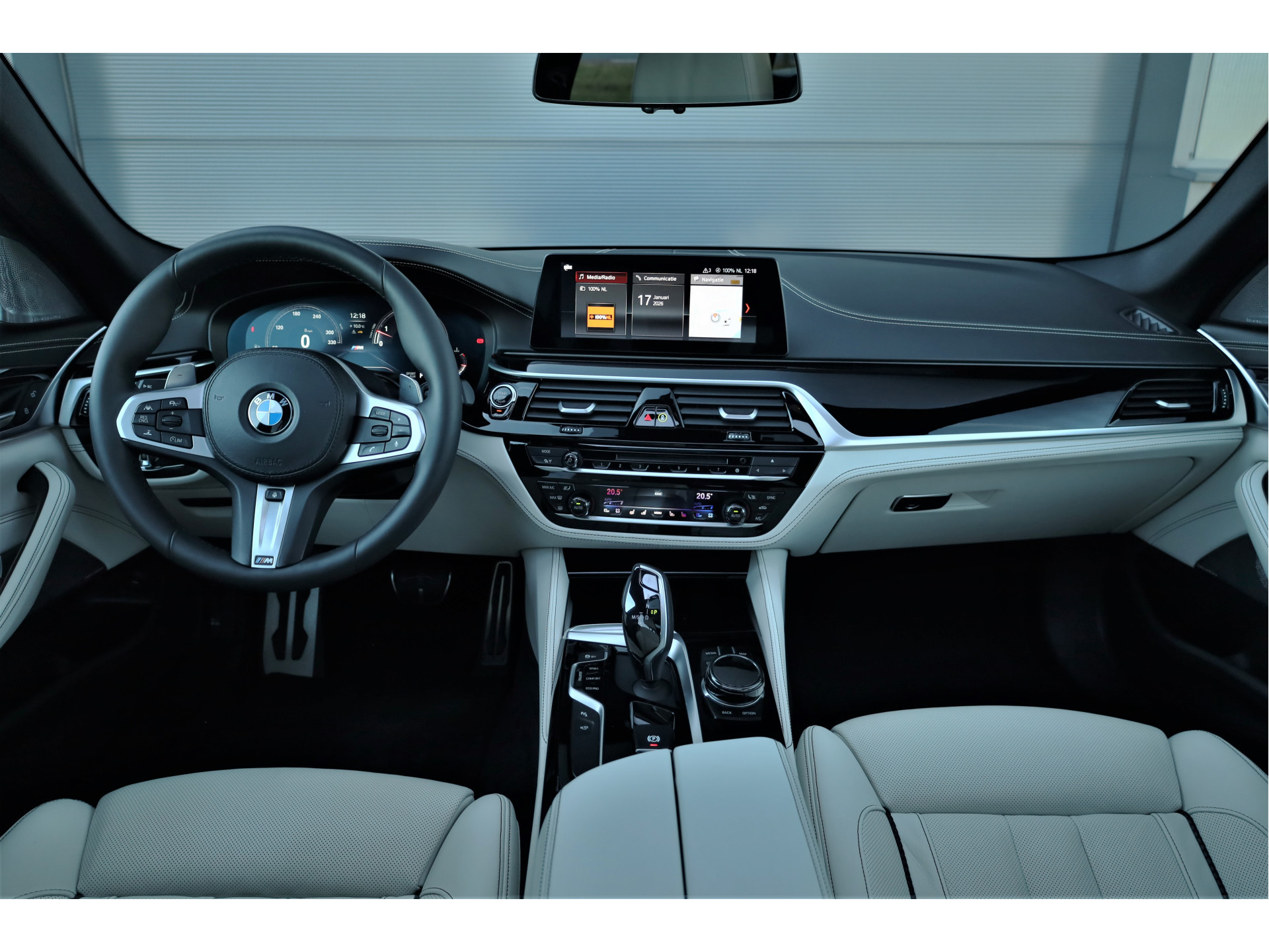 Absoluut eenmalige BMW 540i xDirive High Executive met het begeerlijke M-Sport pakket, uitgevoerd in de sprekende kleur champagne quartz metallic met een "rauch weiss" leder individual interieur; een fantastische combinatie.