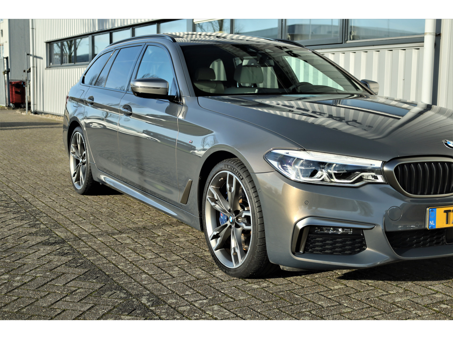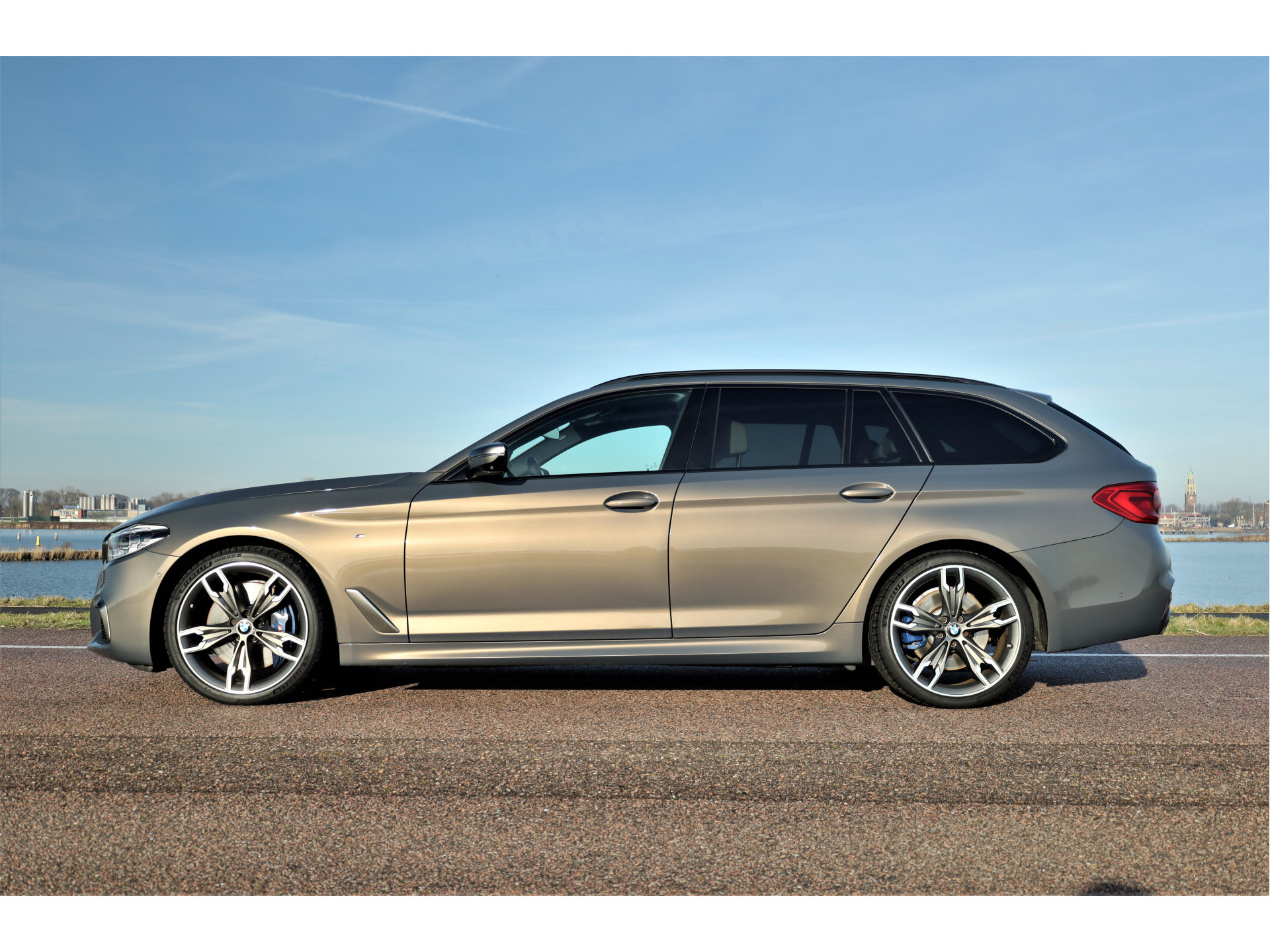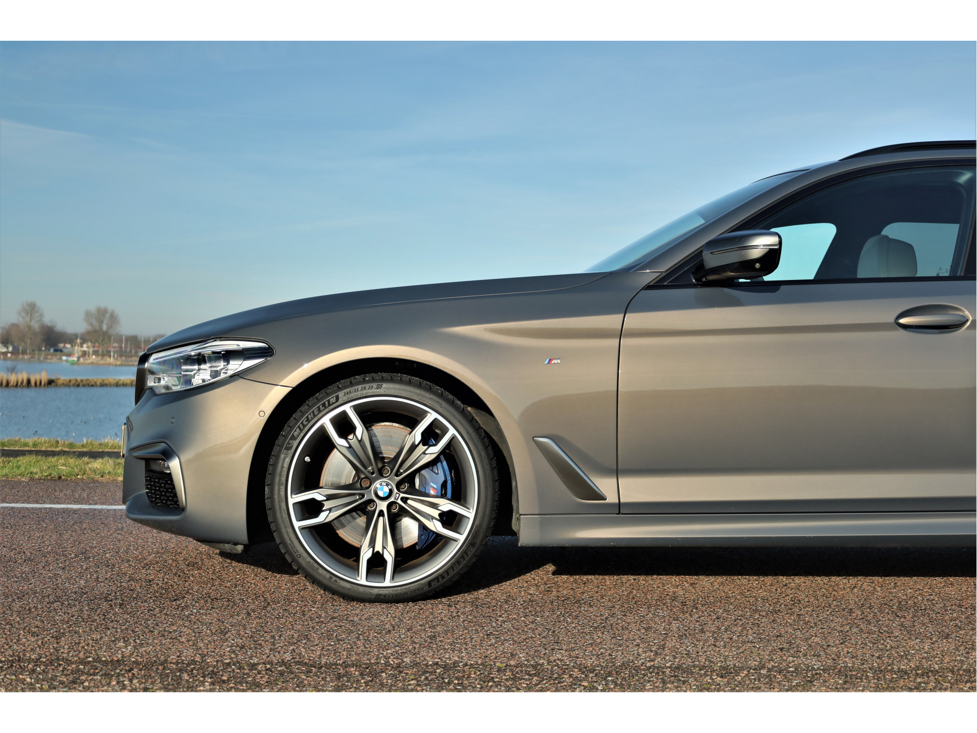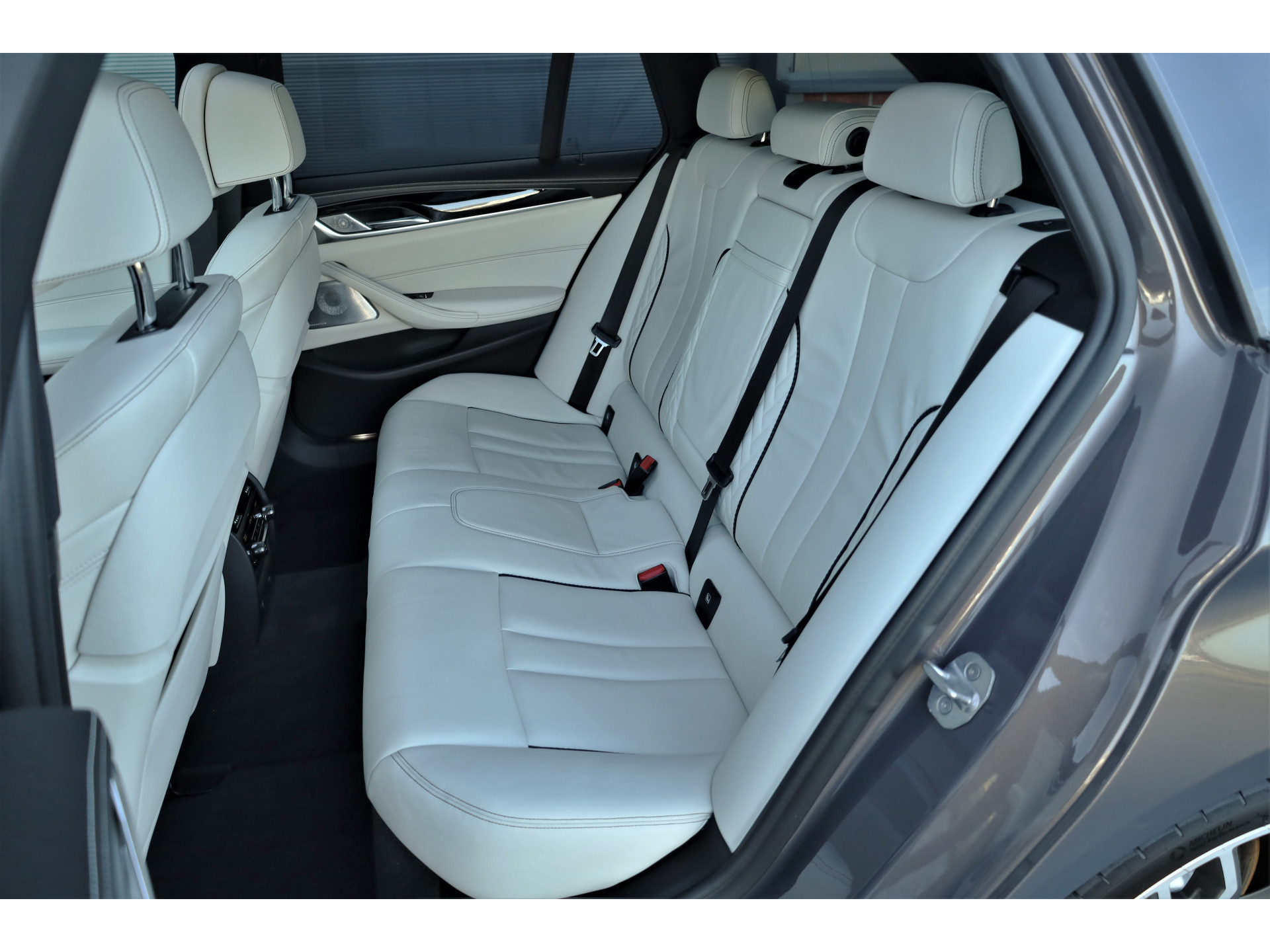 Absoluut eenmalige BMW 540i xDirive High Executive met het begeerlijke M-Sport pakket, uitgevoerd in de sprekende kleur champagne quartz metallic met een "rauch weiss" leder individual interieur; een fantastische combinatie.
