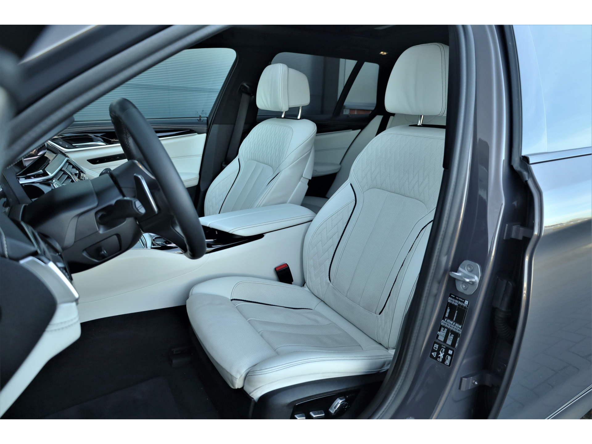 Verder is de uitrusting onvoorstelbaar compleet met o.a. M-Sport pakket met stijlelementen van de M550i (uniek), leder individual, elektrisch verstelbare sportstoelen met stoelverwarming en ventilatie, massage functie. memorypakket, stuurverwarming, navigatie professional, B&W High-end audio systeem, DAB tuner, lane assist, dodehoek detectie, keramiek schakelaars, panoramadak, 20" lichtmetalen velgen, LED koplampen met grootlicht assistent, privacy glass, metallic lak etc.