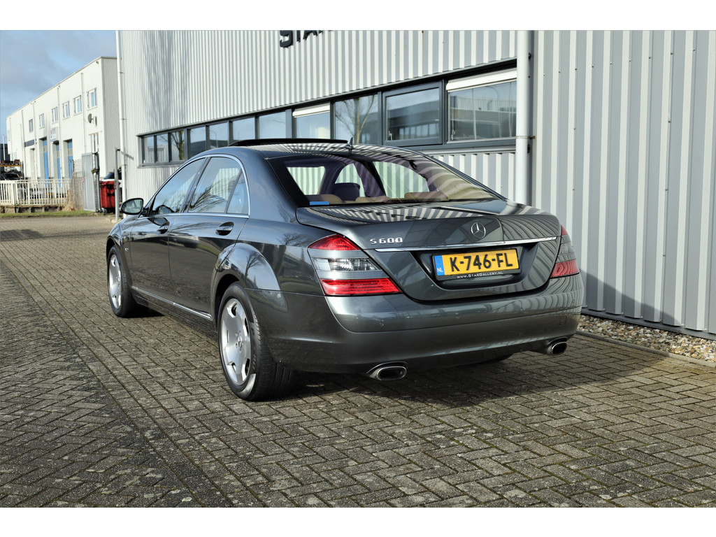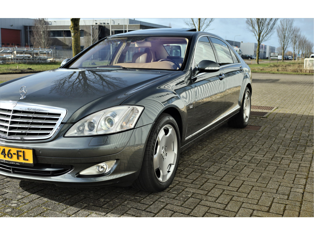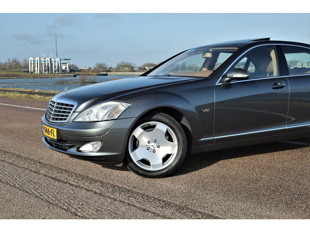 Waanzinnig mooie Mercedes S600 Lang, uitgevoerd in de bijzonder fraaie kleur designo grafiet metallic met een beige/bruin leder exclusief interieur; een unieke combinatie.