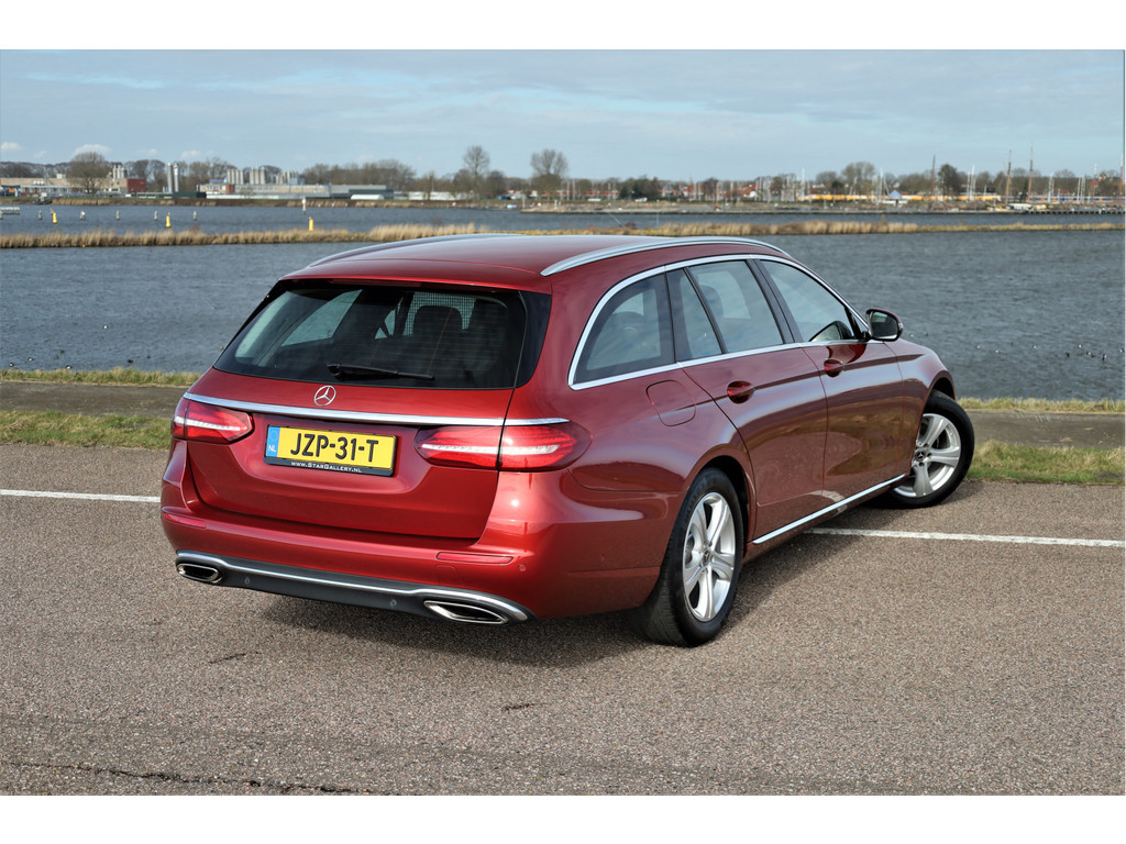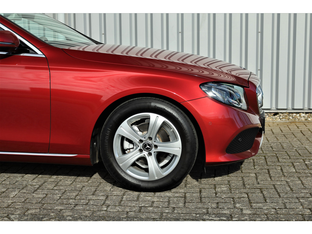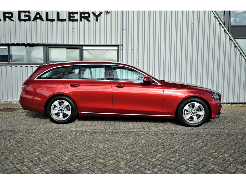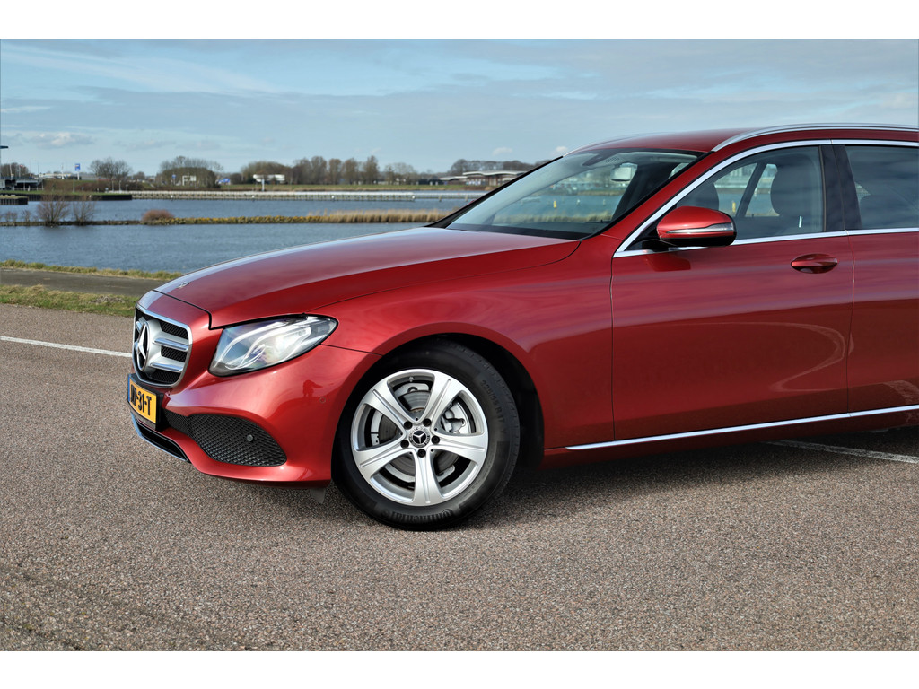 Schitterende Mercedes E200 Estate Avantgarde, uitgevoerd in de fantastische kleur hyacint rood metallic en dit is weer eens wat ander dan grijs of zwart zoals je ze zo vaak tegenkomt.