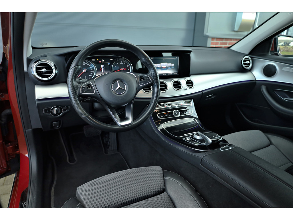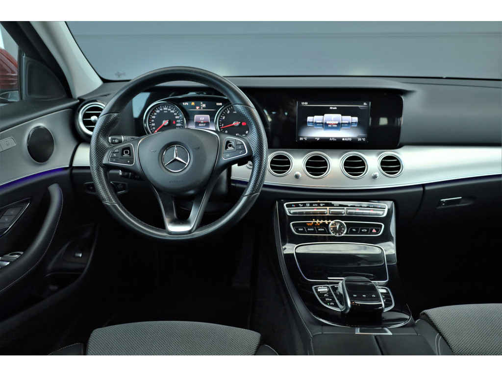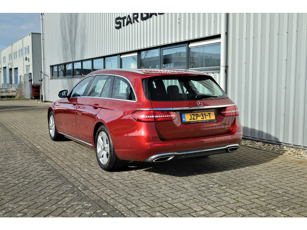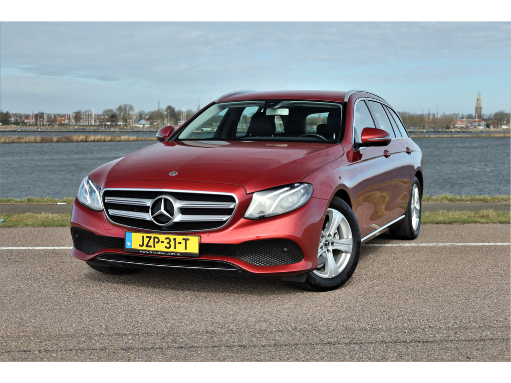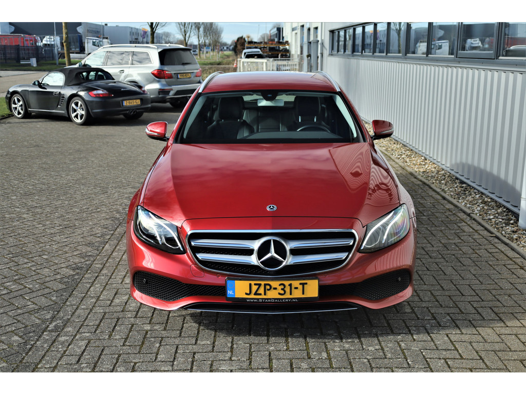 Schitterende Mercedes E200 Estate Avantgarde, uitgevoerd in de fantastische kleur hyacint rood metallic en dit is weer eens wat ander dan grijs of zwart zoals je ze zo vaak tegenkomt.