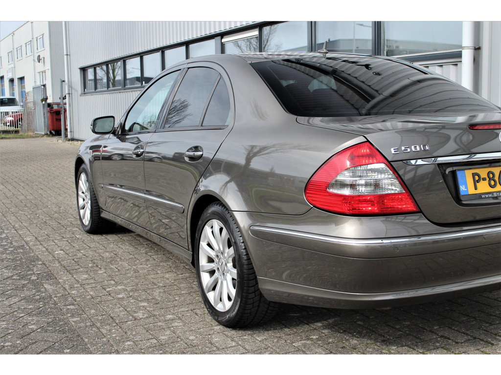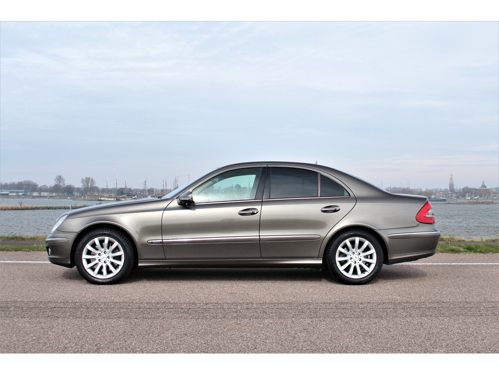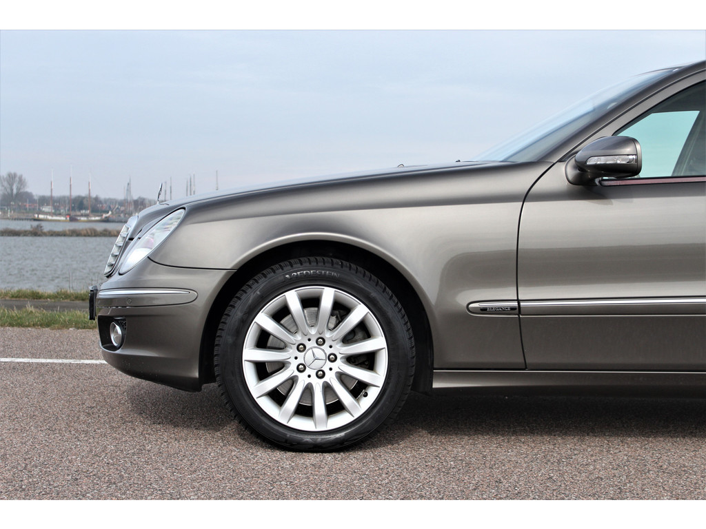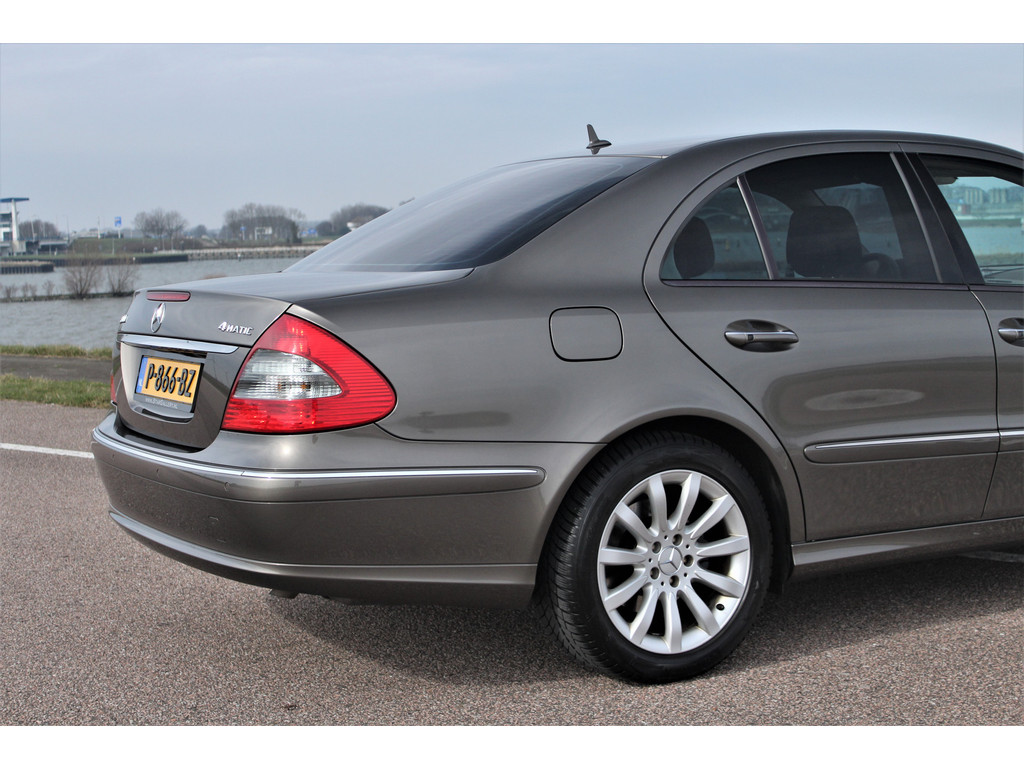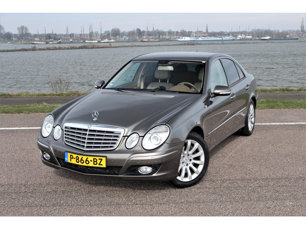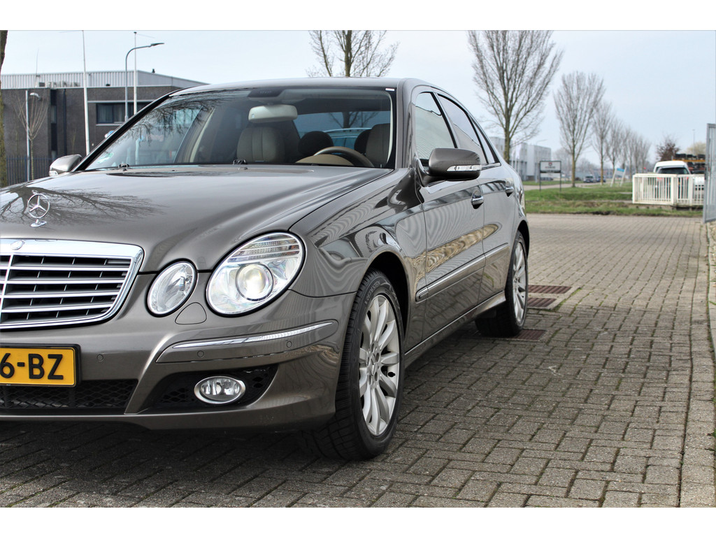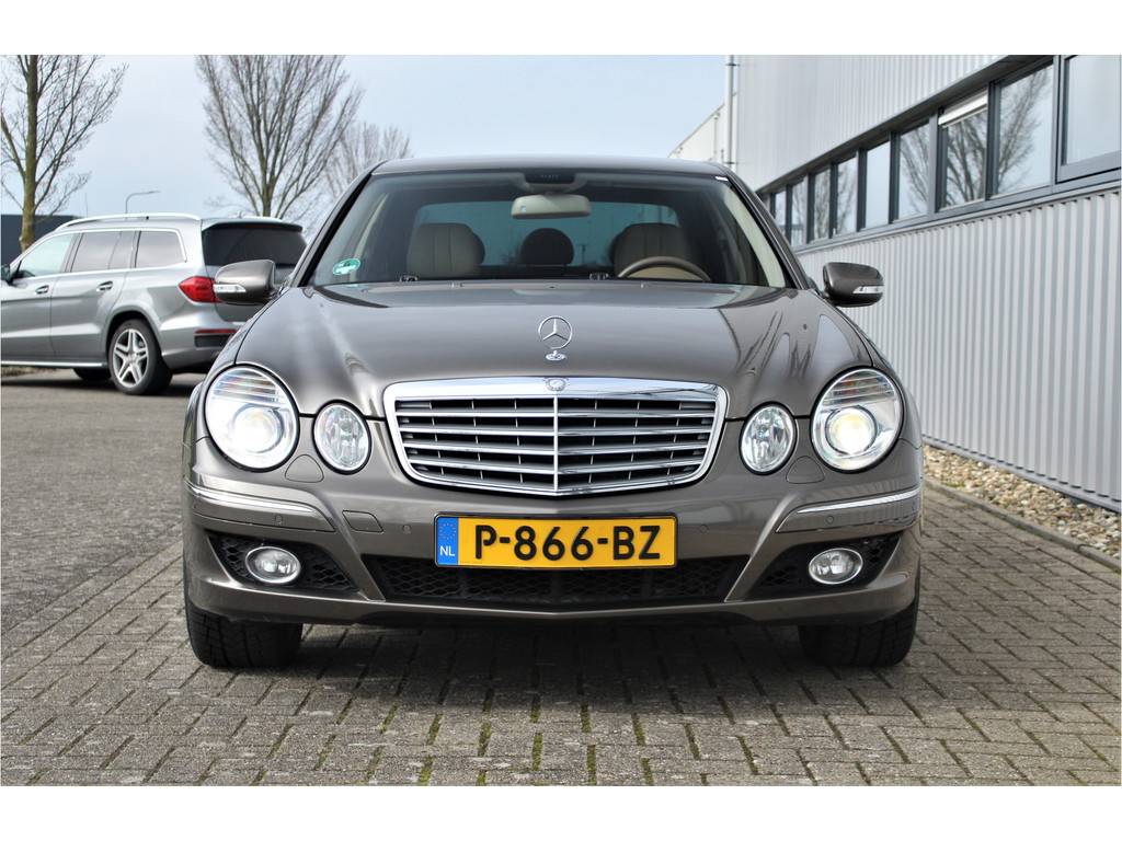 Absolute zeldzaamheid! Waanzinnig mooie Mercedes E500 Elegance 4-Matic uitgevoerd in de bijzondere kleur indium grijs metallic met een beige leder interieur; een droomcombinatie.
