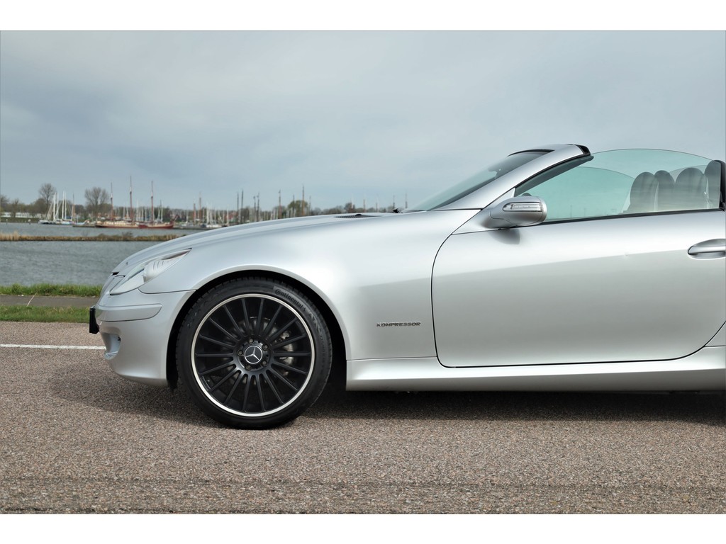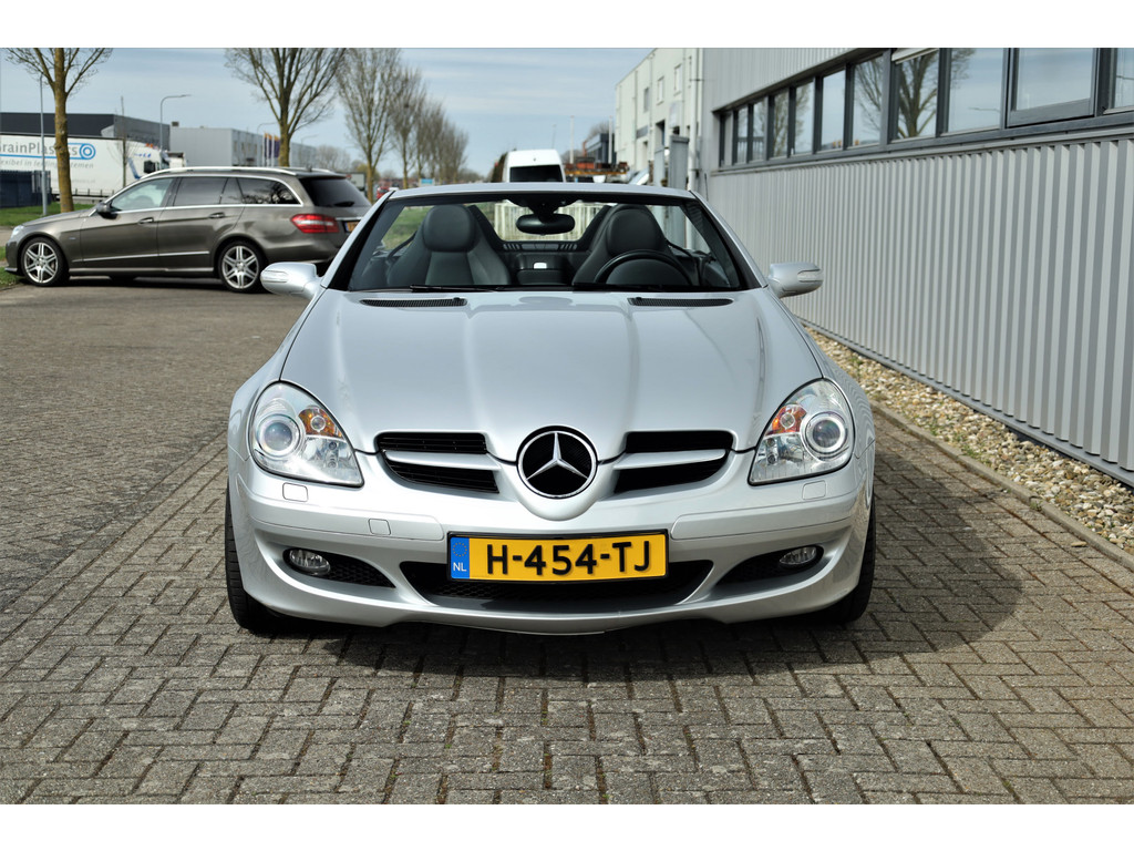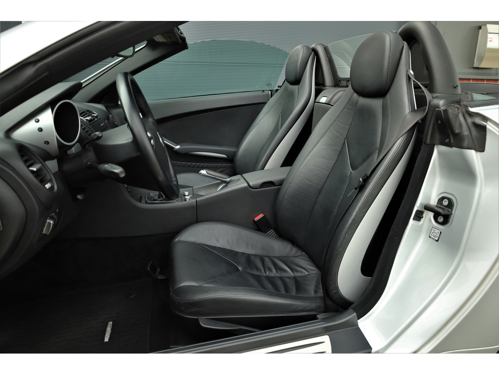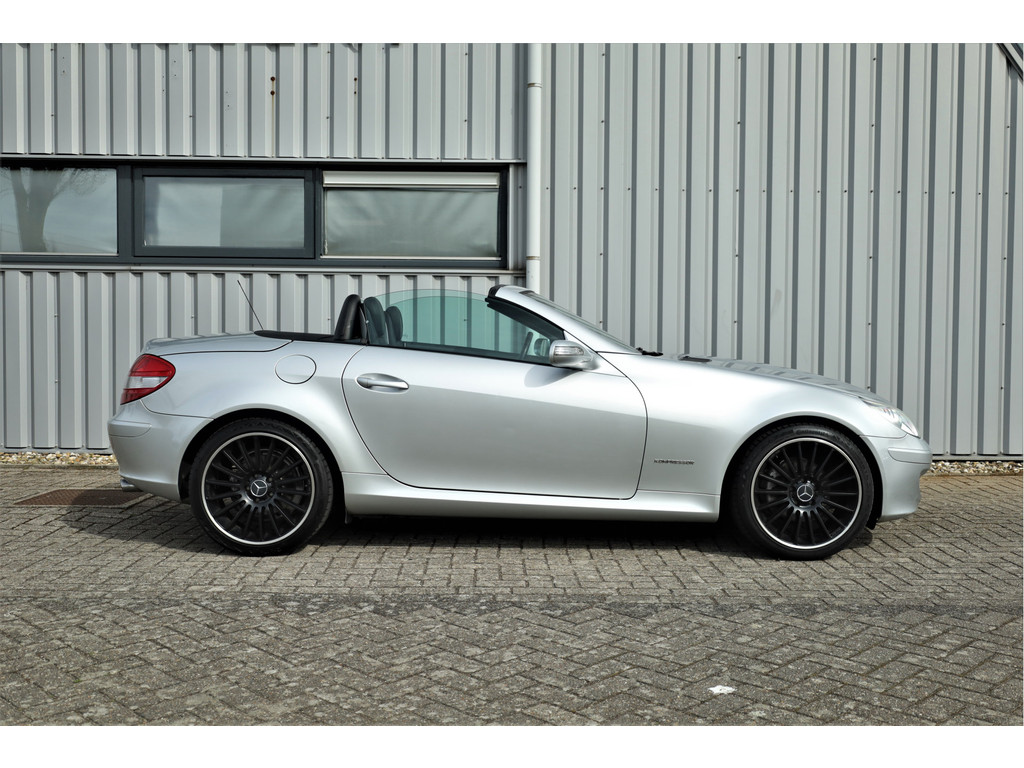 Super leuke fiscaal aantrekkelijke Mercedes SLK200 Kompressor, uitgevoerd in iridium zilver metallic met een zwart leder interieur; een echte Mercedes combinatie.