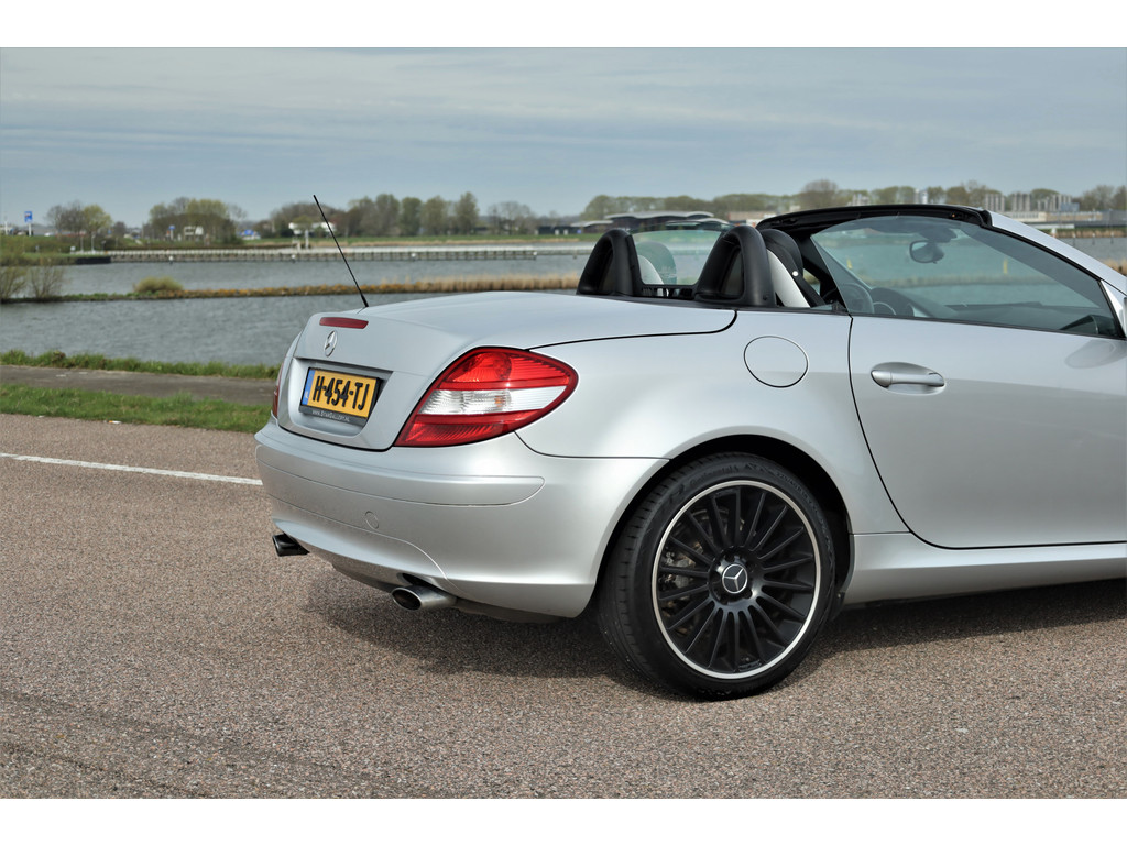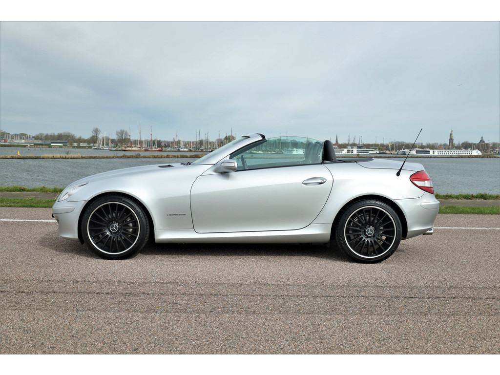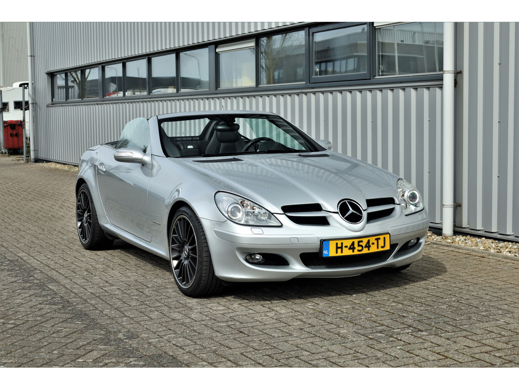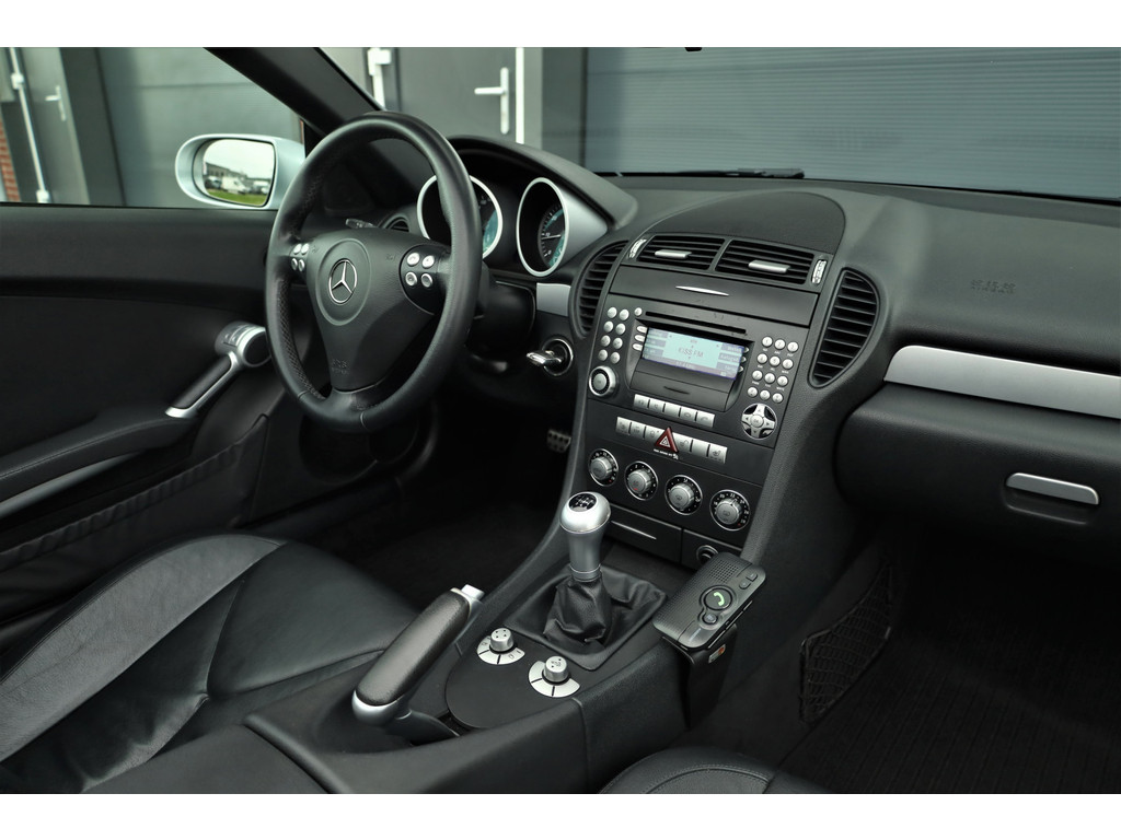 Super leuke fiscaal aantrekkelijke Mercedes SLK200 Kompressor, uitgevoerd in iridium zilver metallic met een zwart leder interieur; een echte Mercedes combinatie.