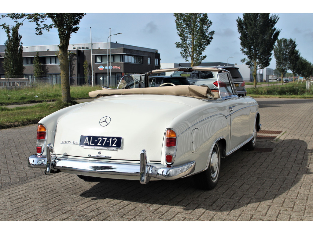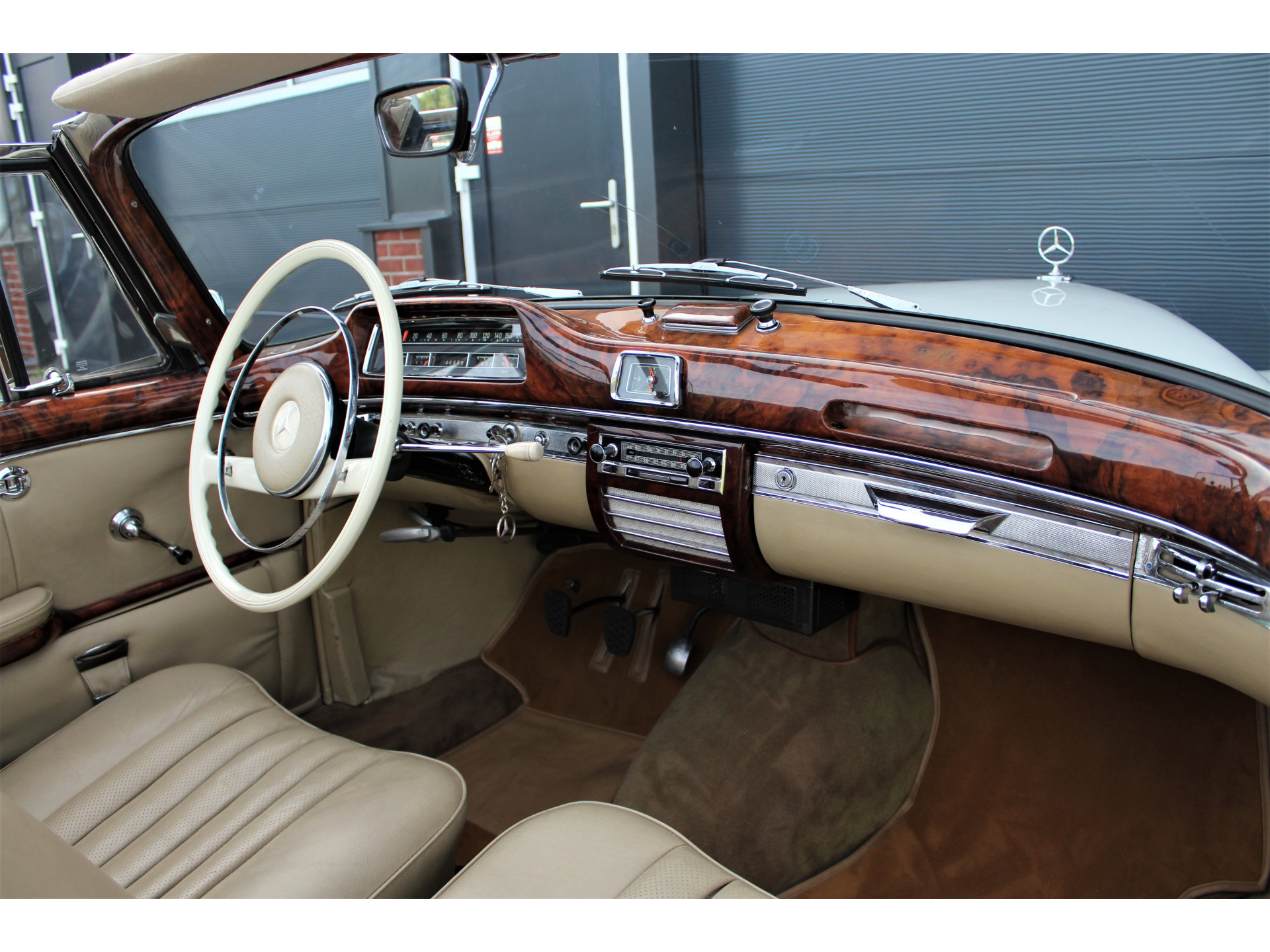 Prachtige klassieke Mercedes 220SE Ponton Cabriolet uitgevoerd in hoogglans wit met een smetteloos beige leder interieur.