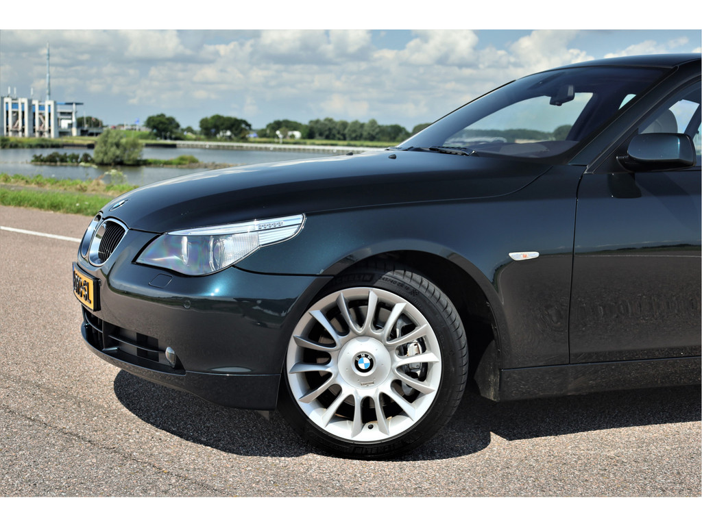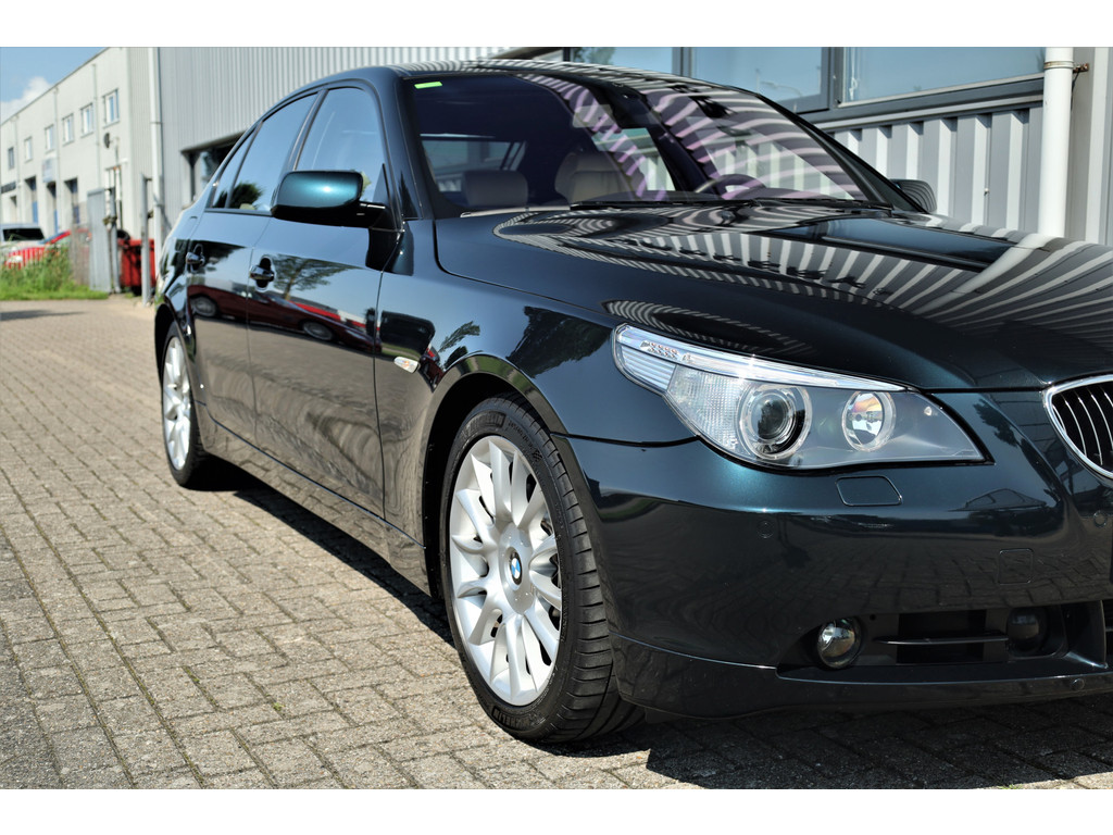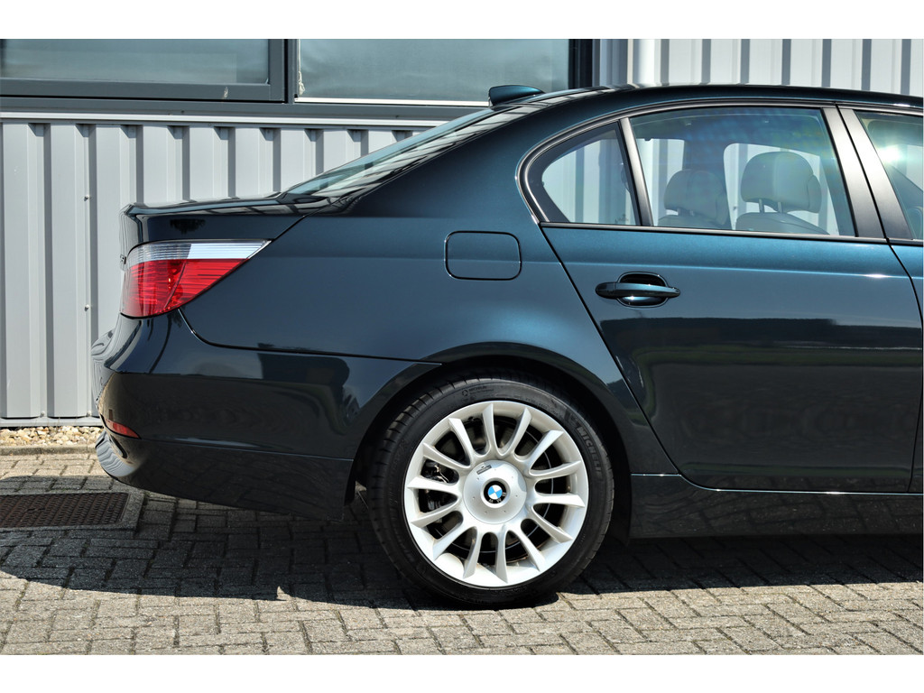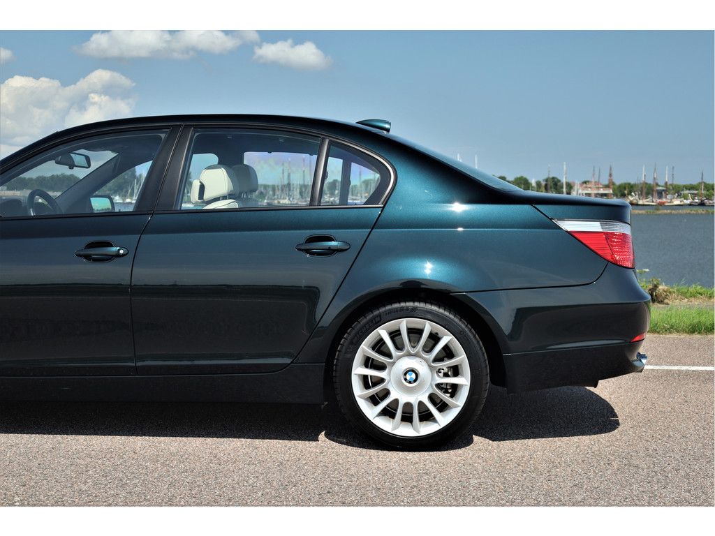 Onvoorstelbaar mooie en unieke BMW 545i Executive, uitgevoerd in donkergroen metallic met een bijna wit leder interieur; een prachtige combinatie uit de koker van de "Individual" afdeling die je maar zelden tegenkomt.