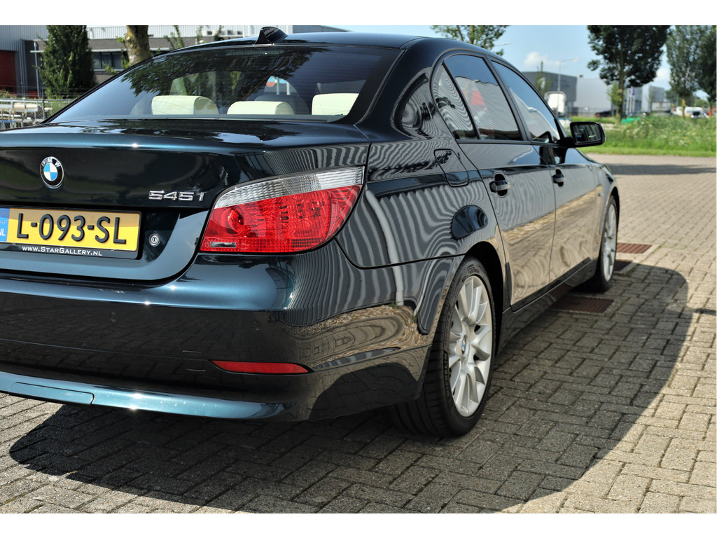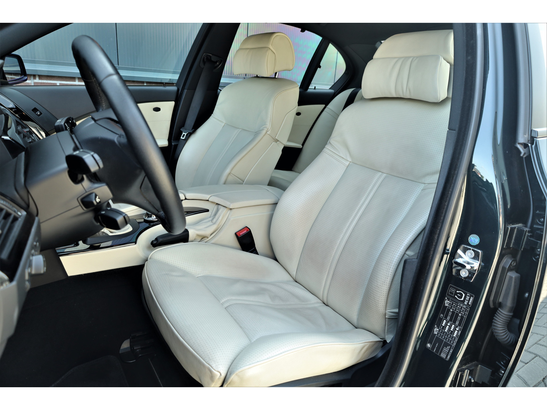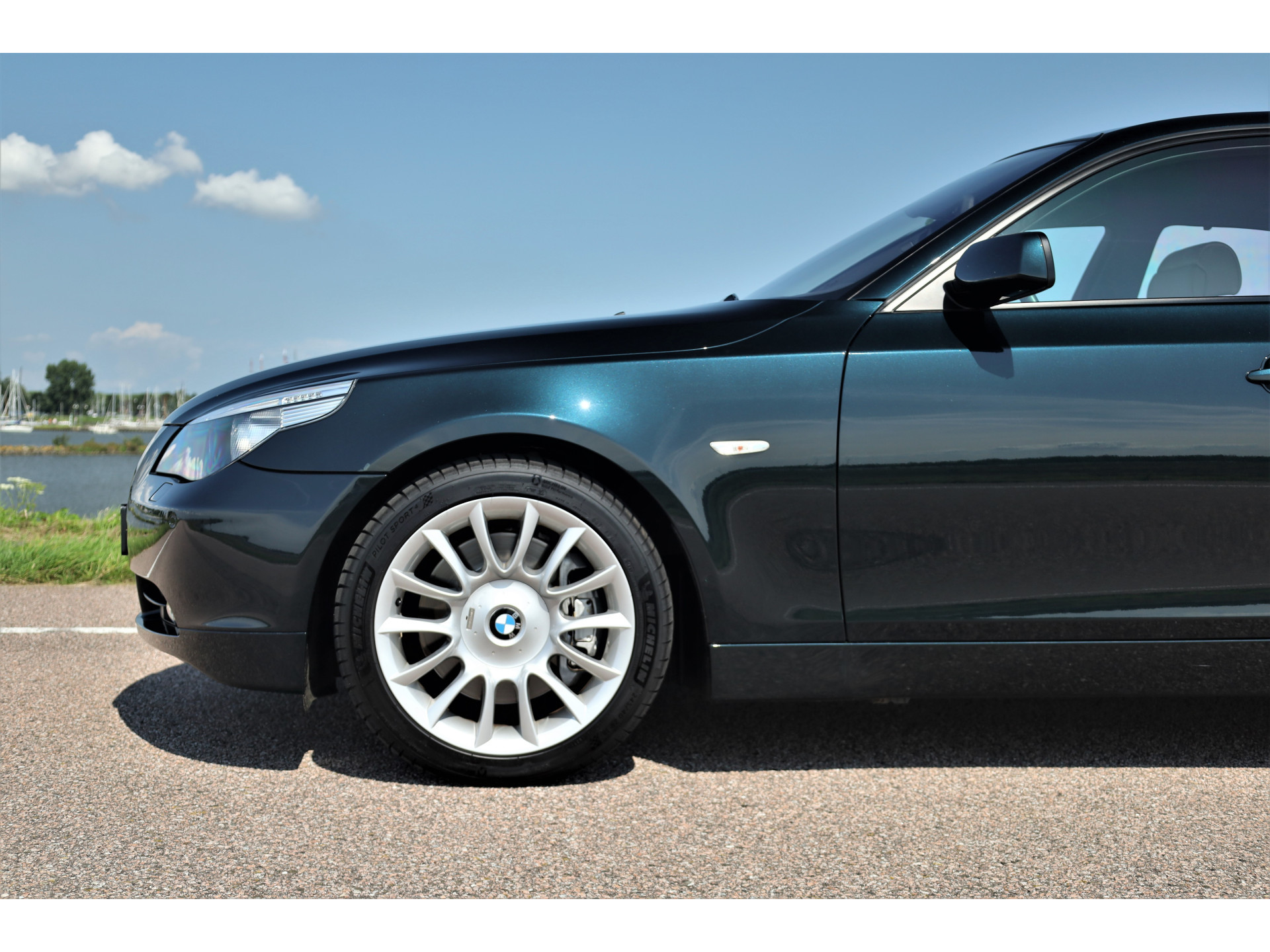 Onvoorstelbaar mooie en unieke BMW 545i Executive, uitgevoerd in donkergroen metallic met een bijna wit leder interieur; een prachtige combinatie uit de koker van de "Individual" afdeling die je maar zelden tegenkomt.