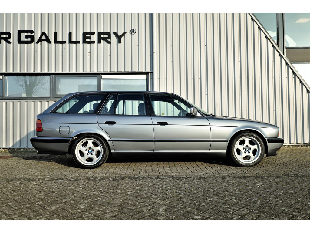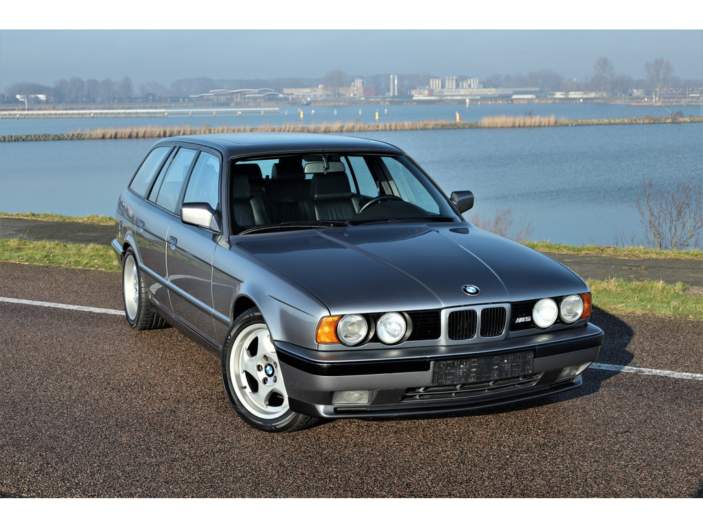 Sensationeel mooie blijvend fiscaal aantrekkelijke BMW E34 M5 Touring uitgevoerd in "granitsilber" met een zwart leder interieur; een droomcombinatie.