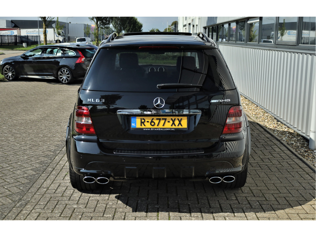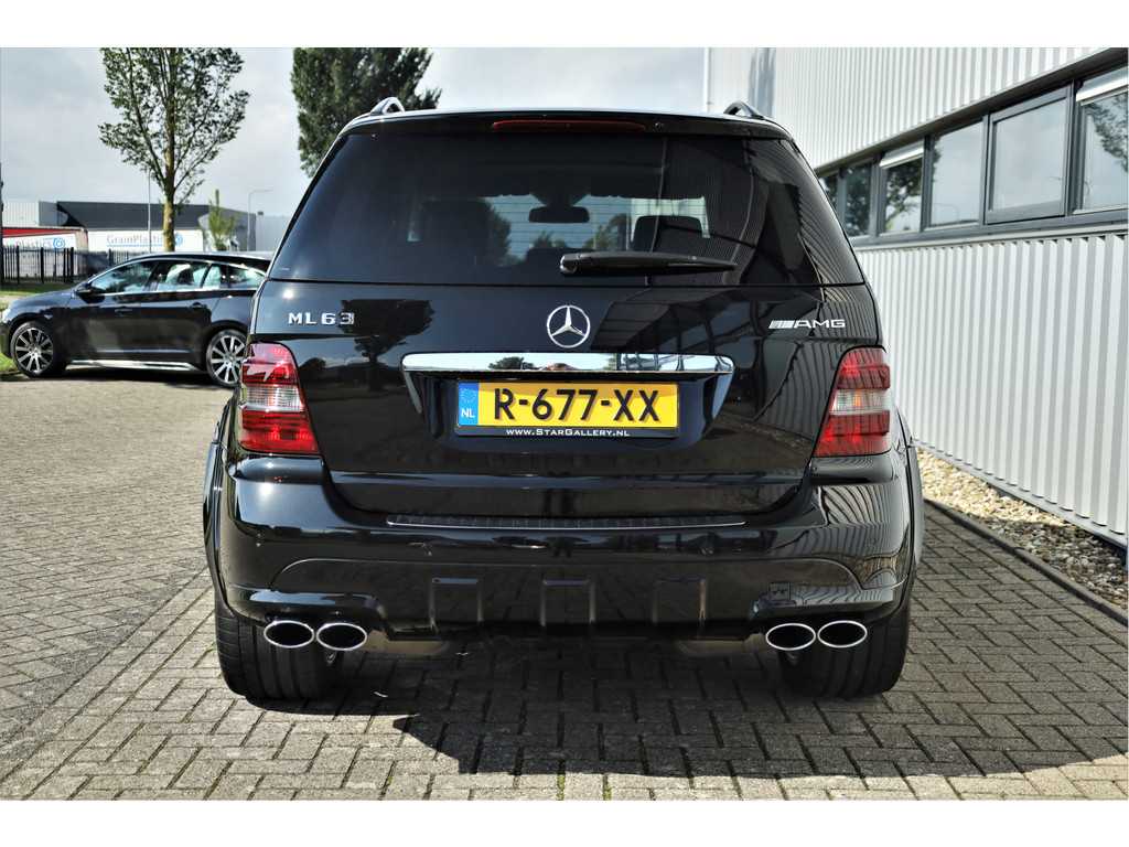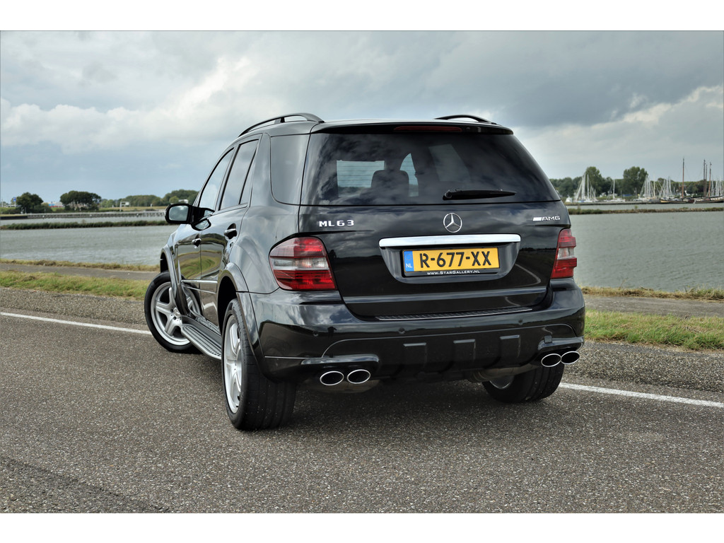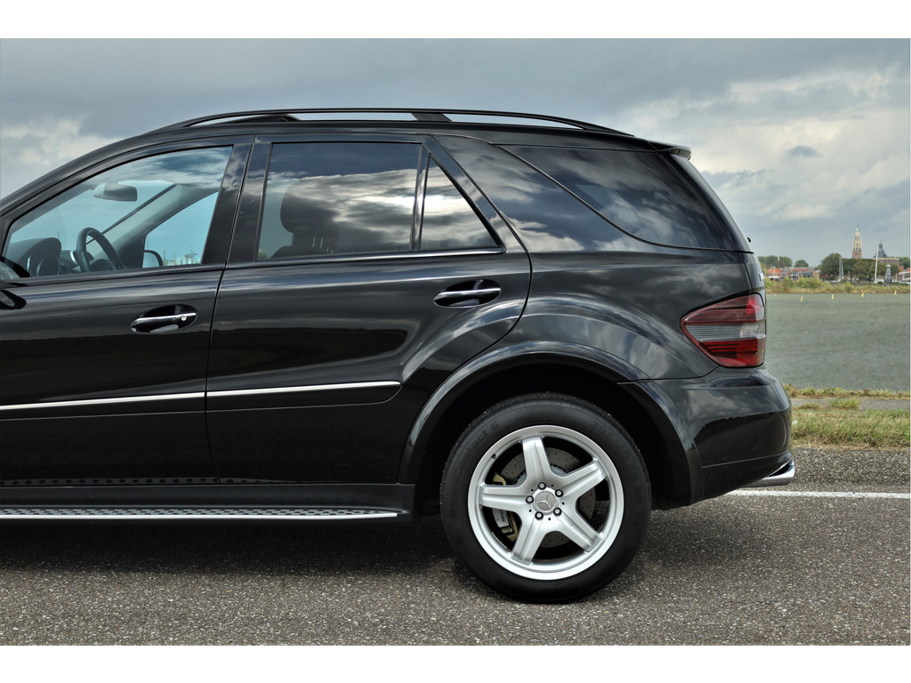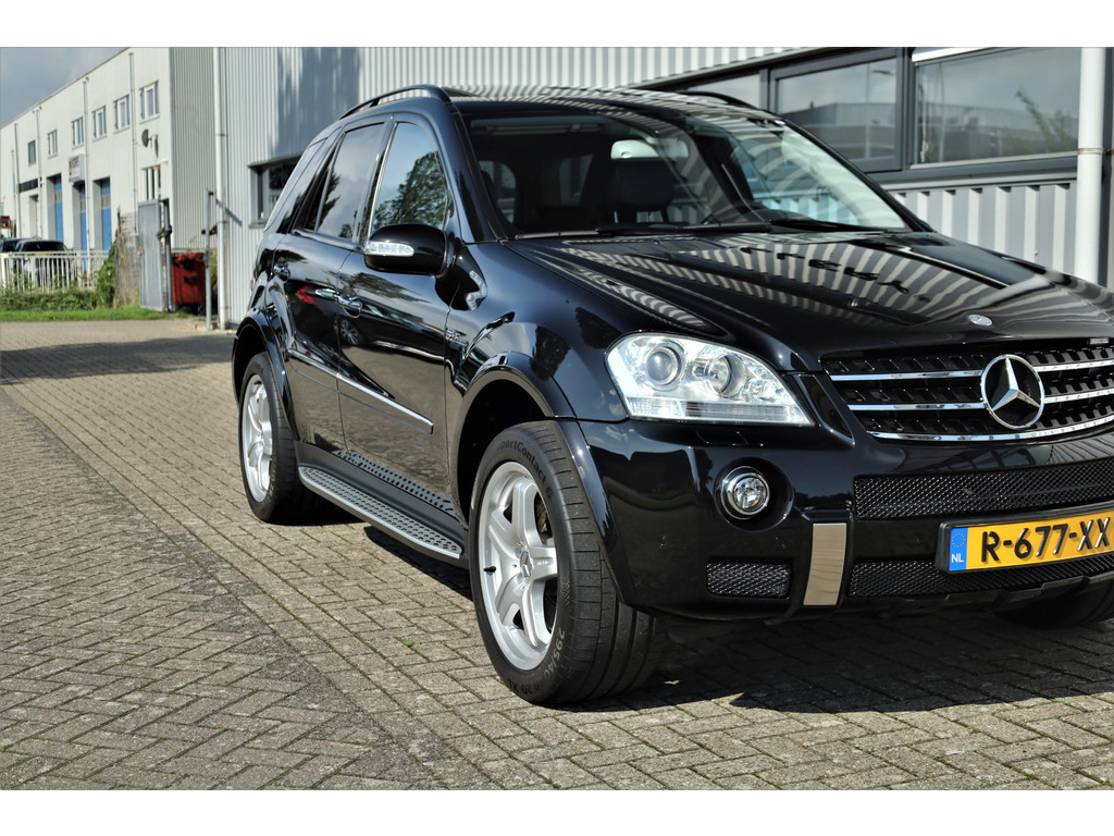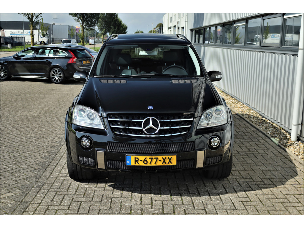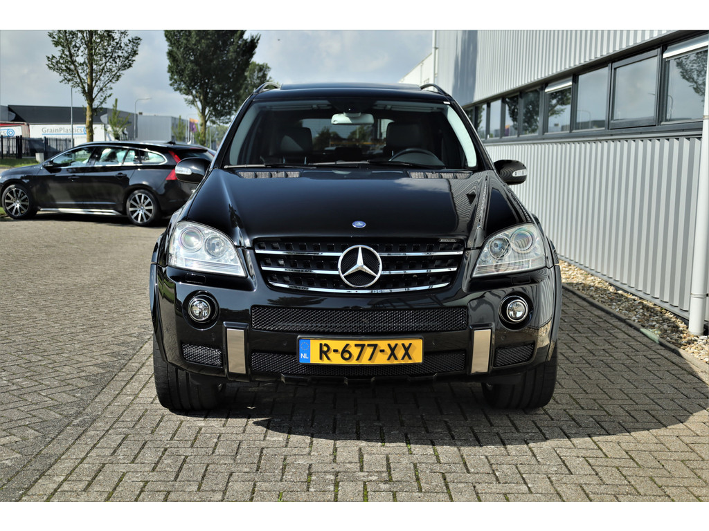 Black beast alert! Sensationeel mooie en retesnelle Mercedes ML63AMG, uitgevoerd in de altijd goede kleur obsidiaan zwart metallic.