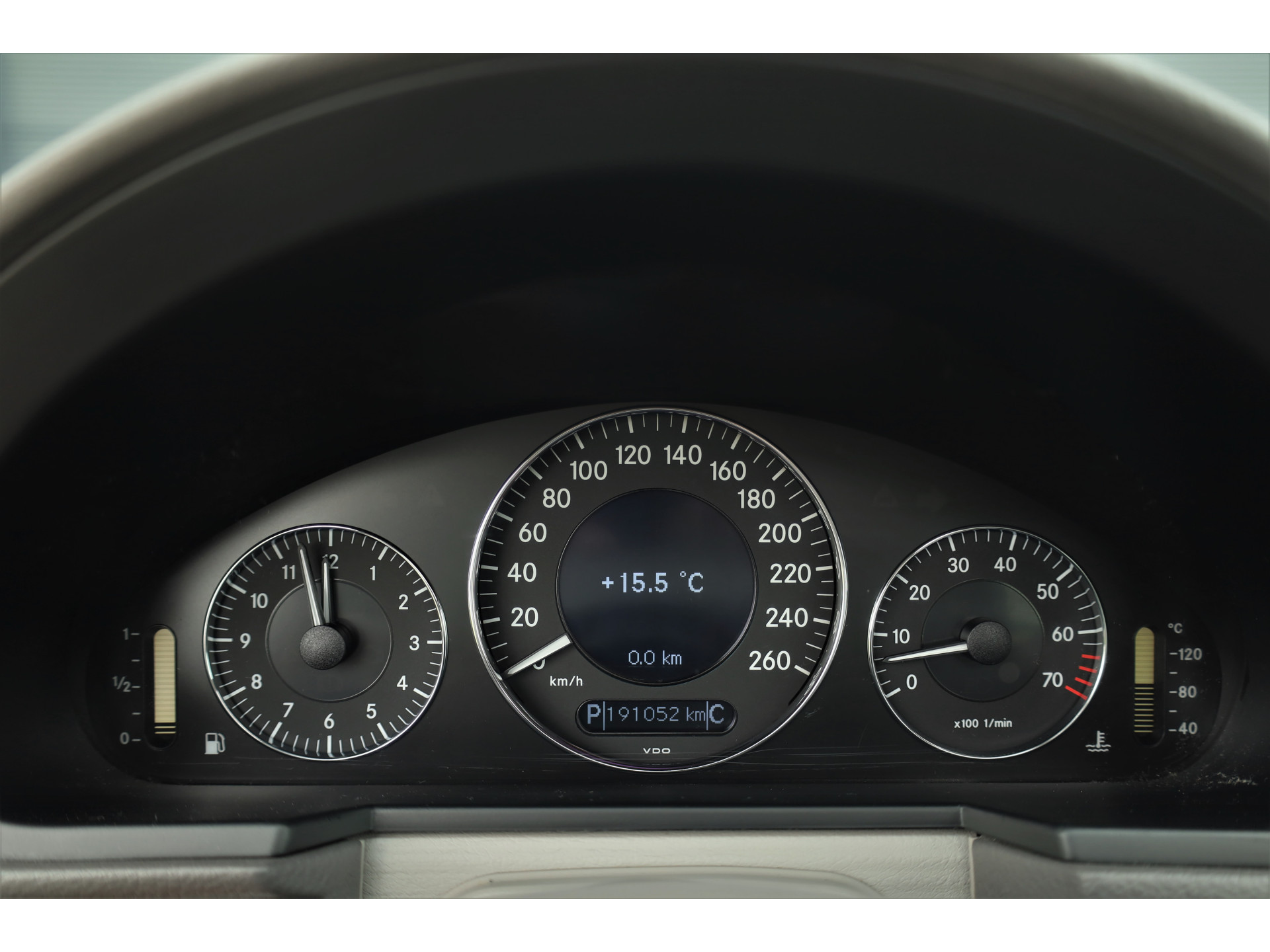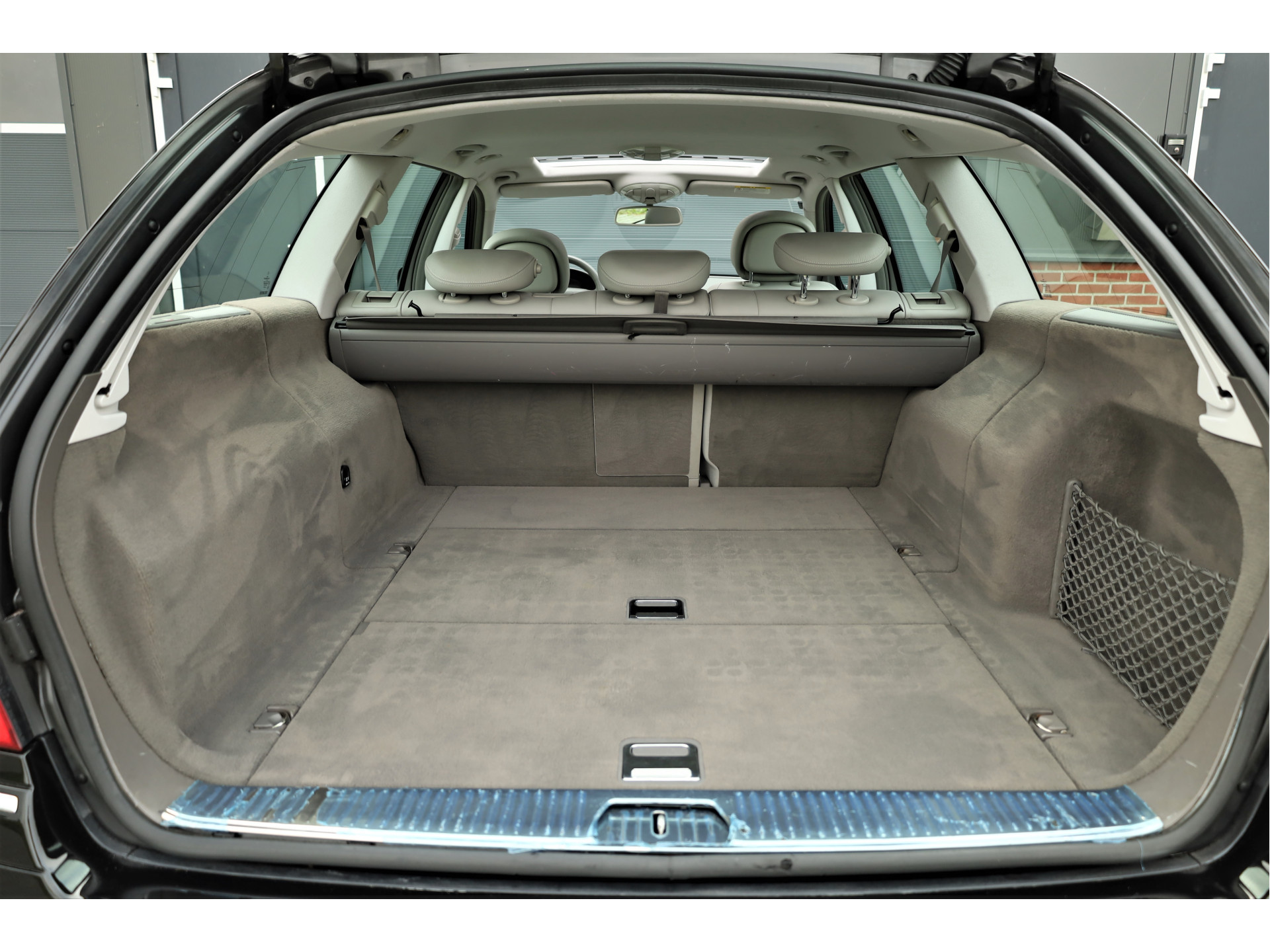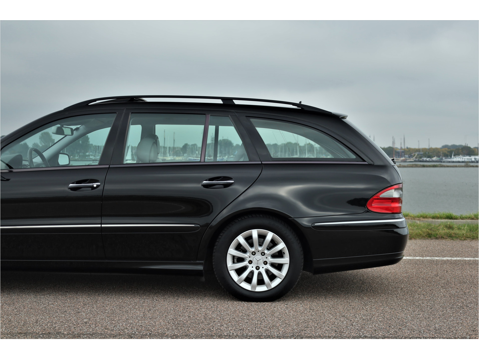 Zeer verzorgde fiscaal aantrekkelijke Mercedes E280 Elegance Estate, uitgevoerd in de prachtige kleur obsidiaan zwart metallic met een grijs leder interieur; een super combinatie.
