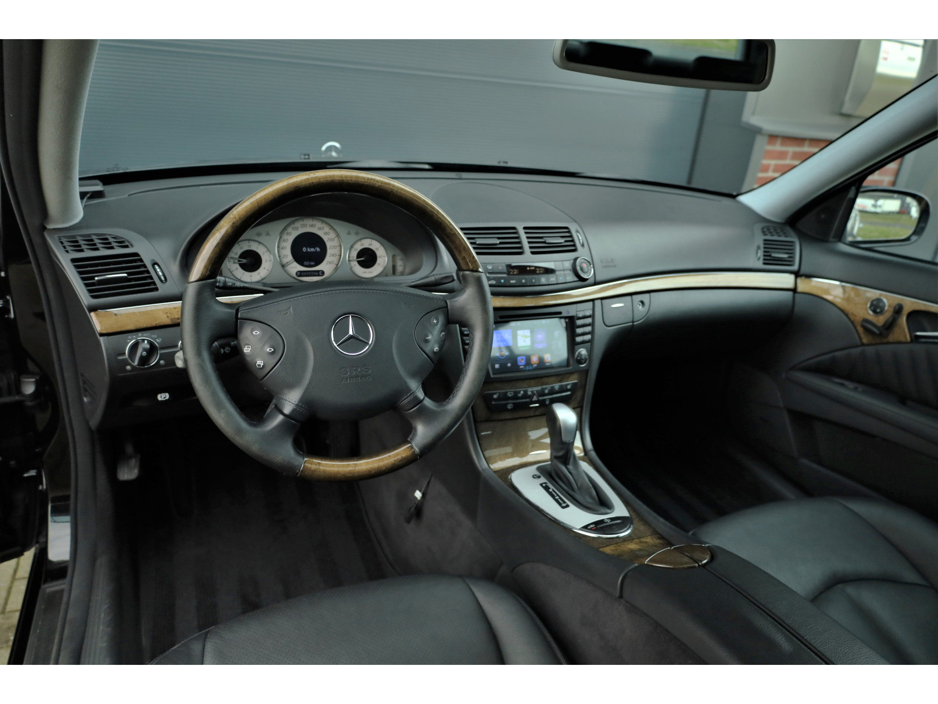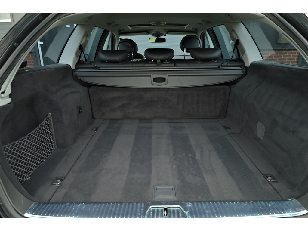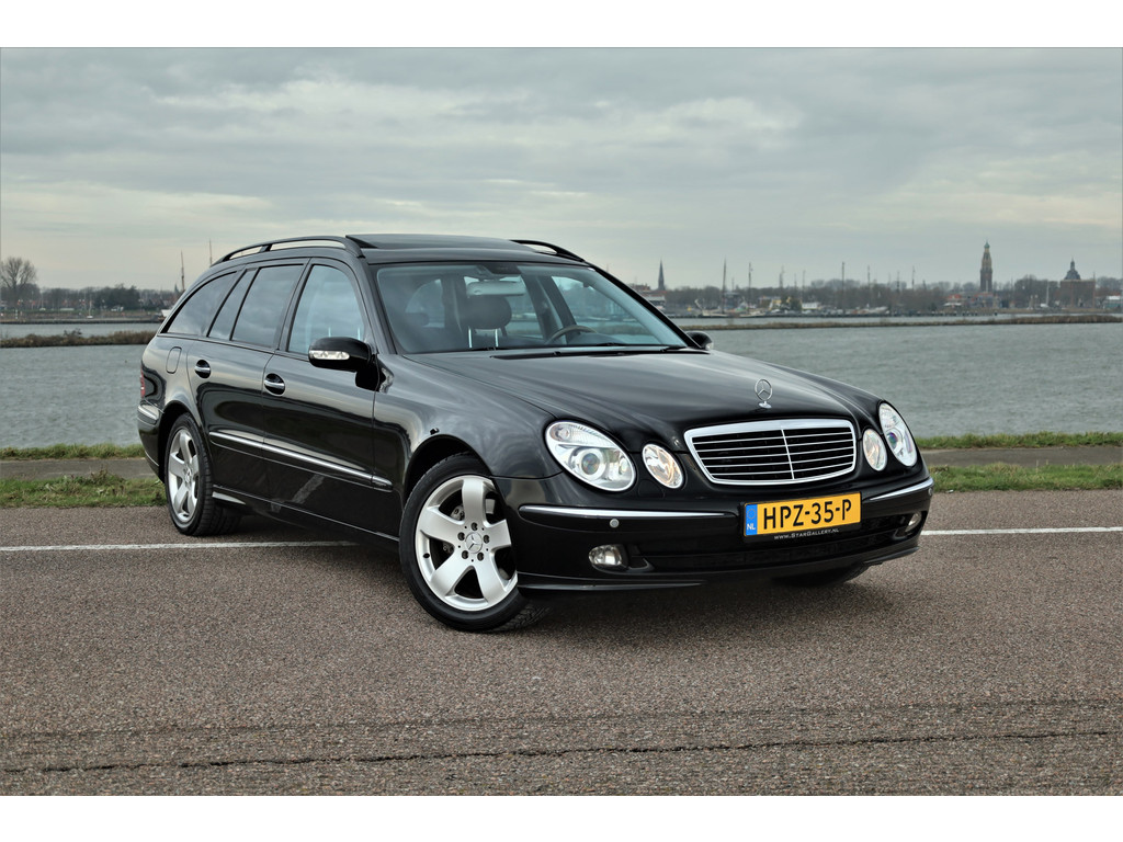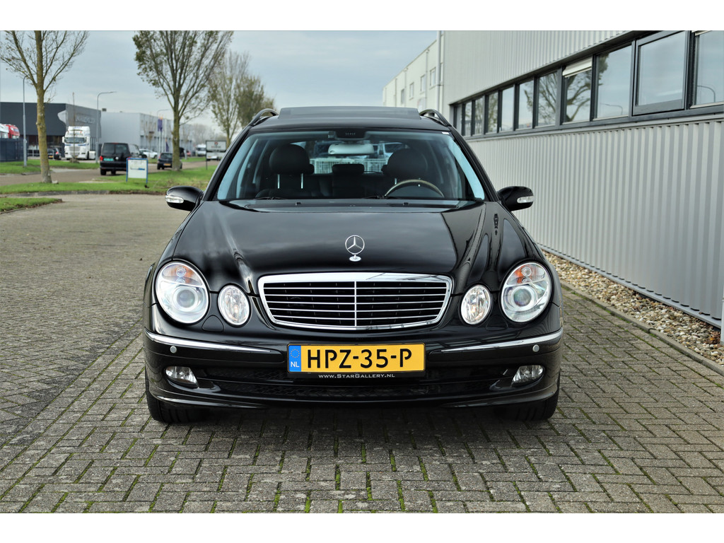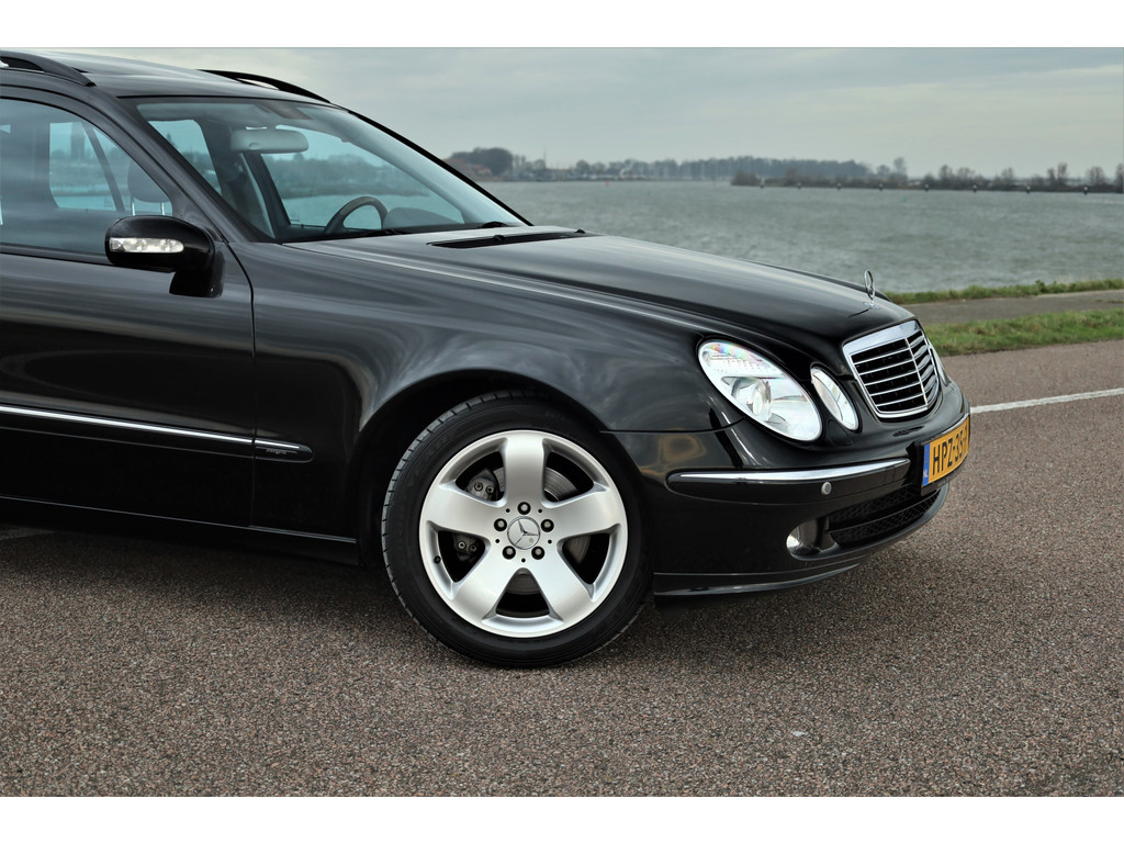 Sportieve fiscaal aantrekkelijke Mercedes E500 Combi Avantgarde met de begeerlijke 7G-Tronic automaat, uitgevoerd in obsidiaan zwart metallic met een zwart leder interieur.