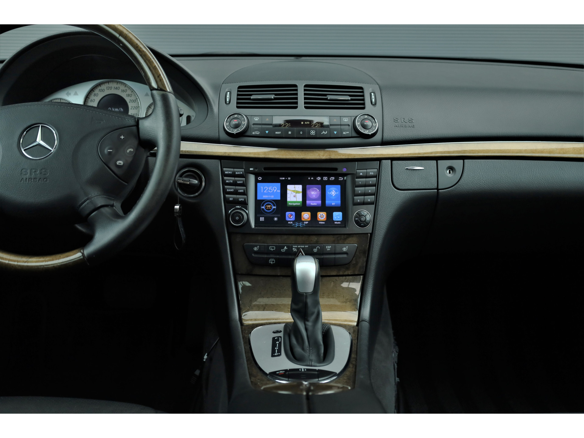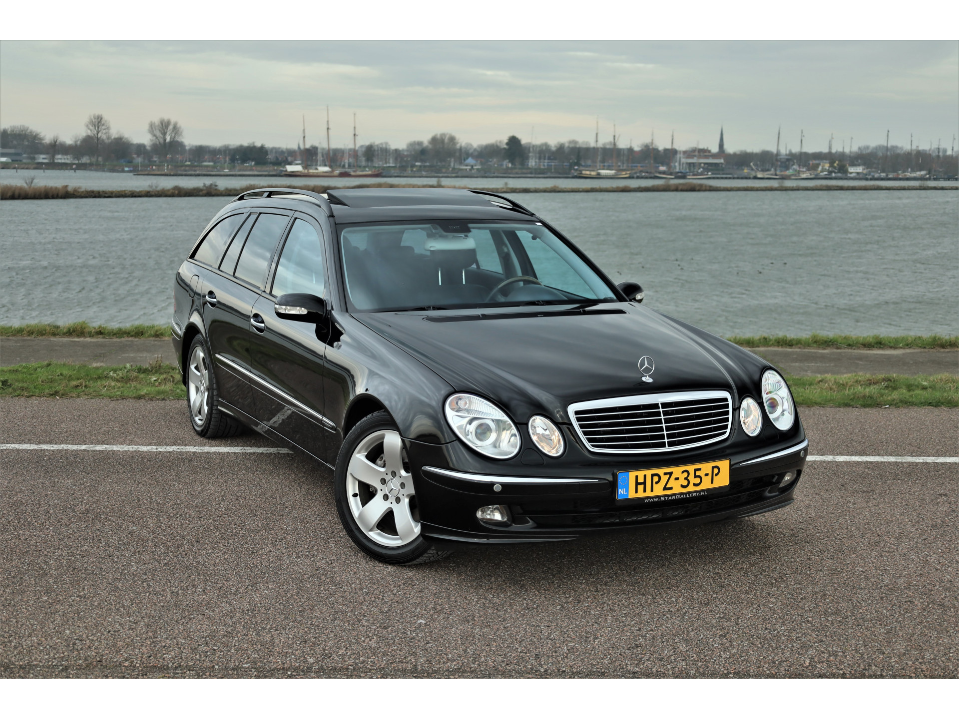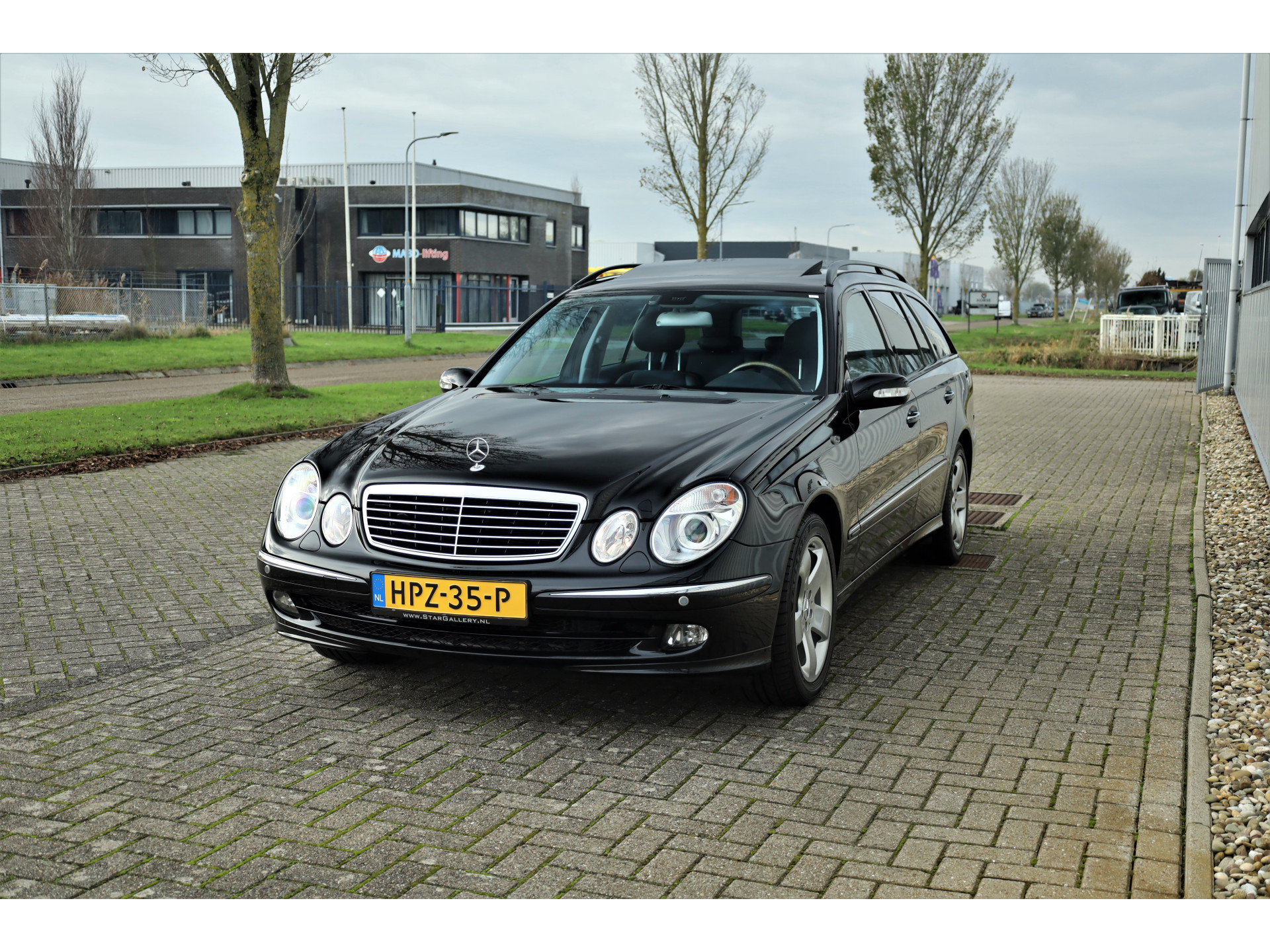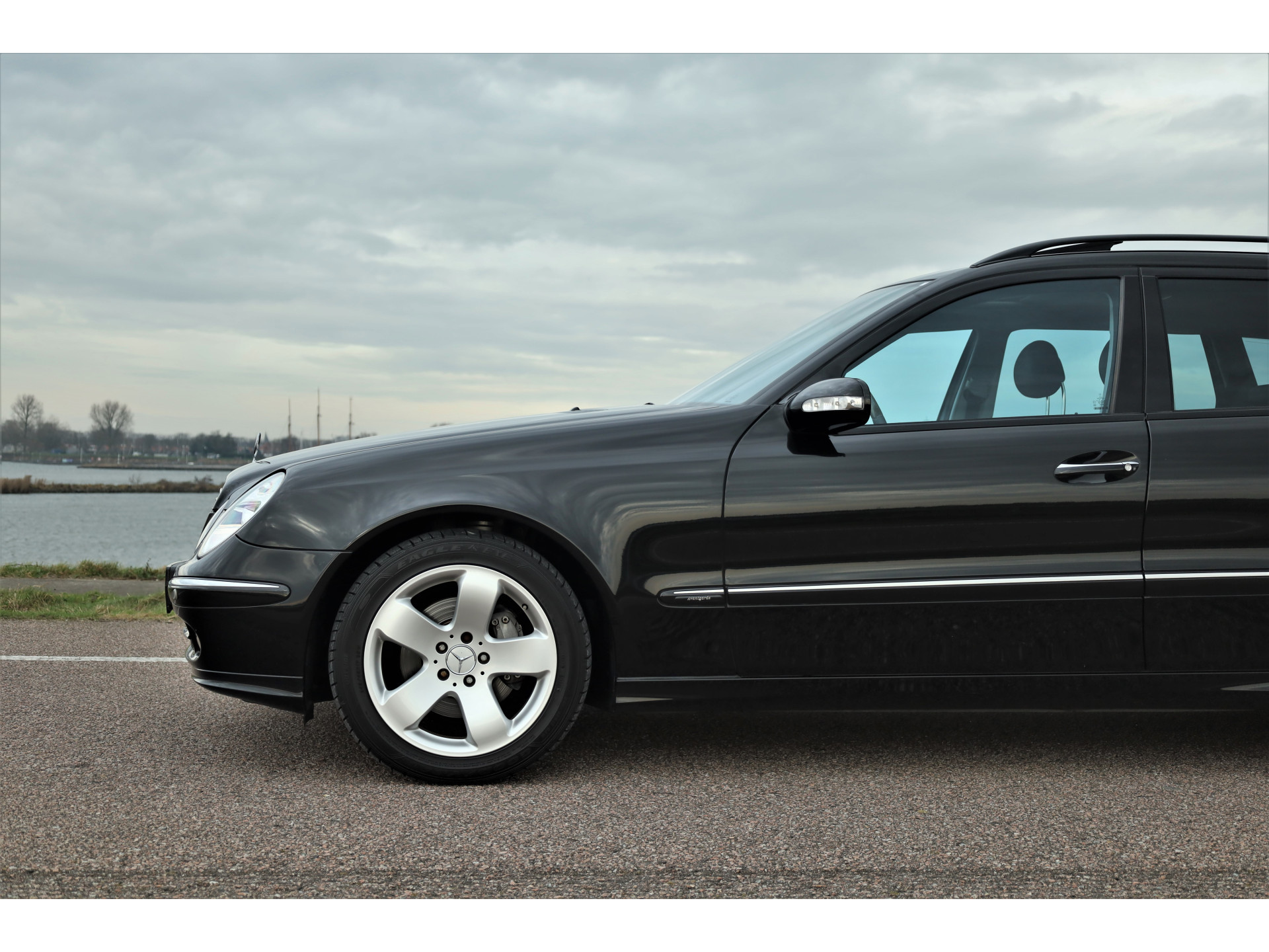 Sportieve fiscaal aantrekkelijke Mercedes E500 Combi Avantgarde met de begeerlijke 7G-Tronic automaat, uitgevoerd in obsidiaan zwart metallic met een zwart leder interieur.