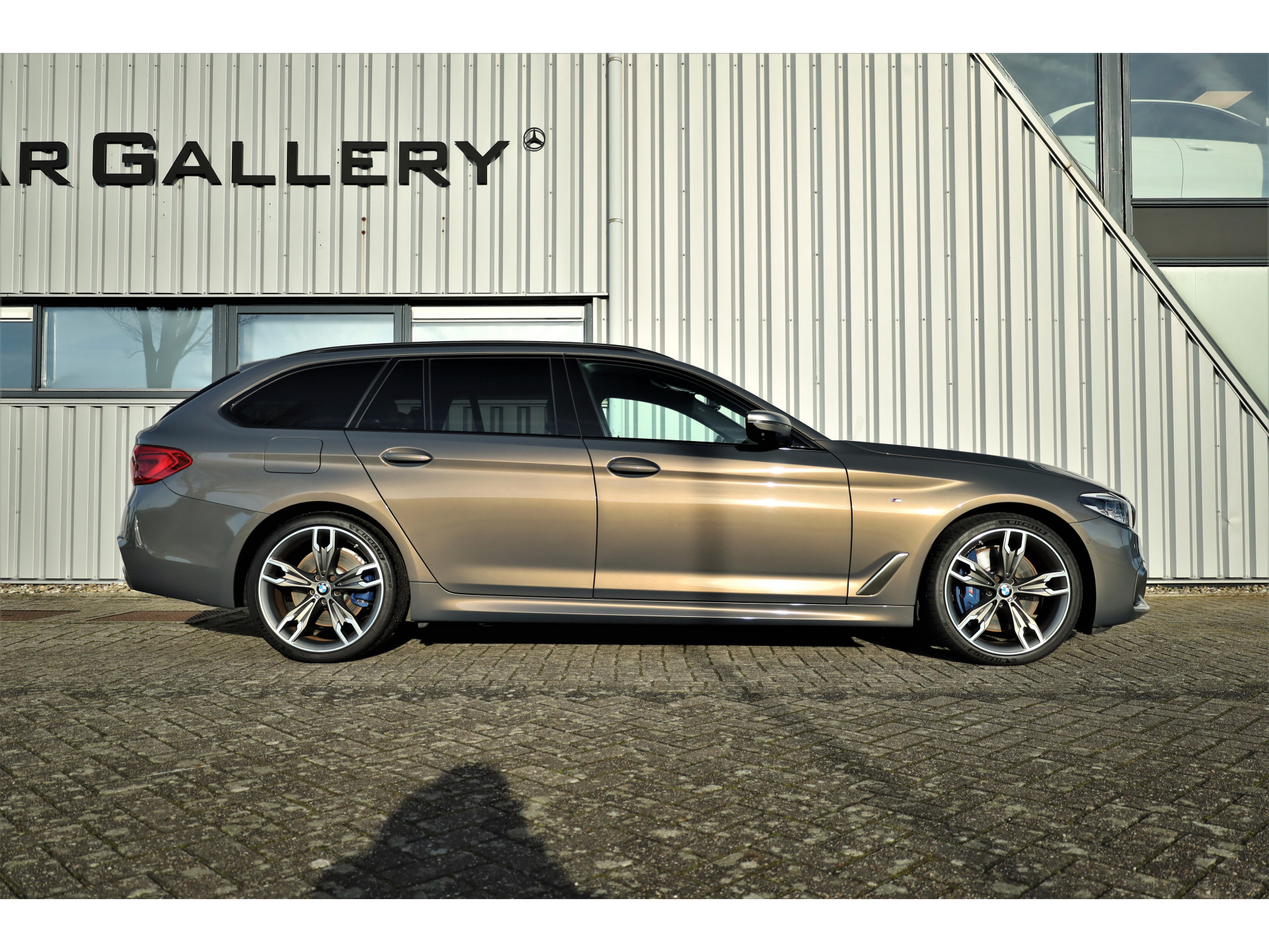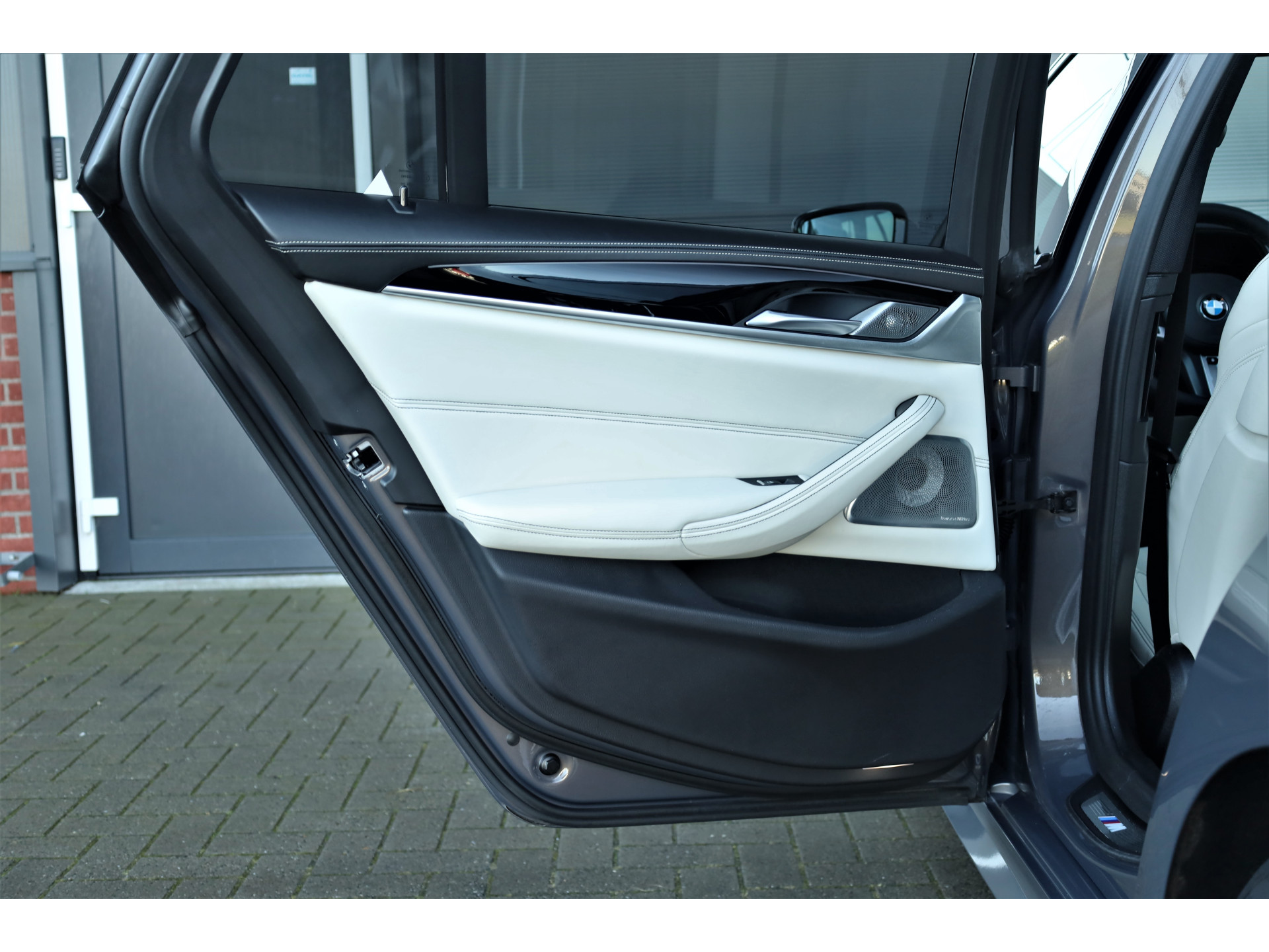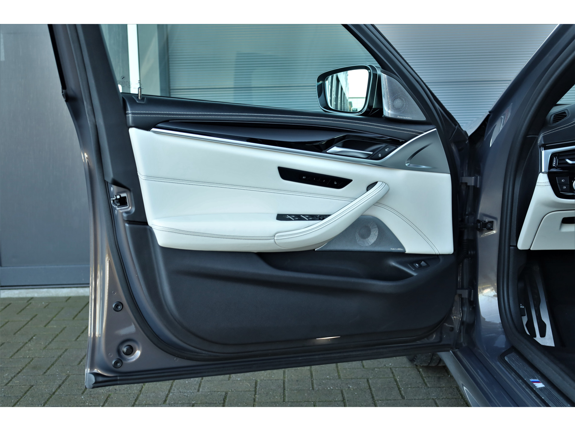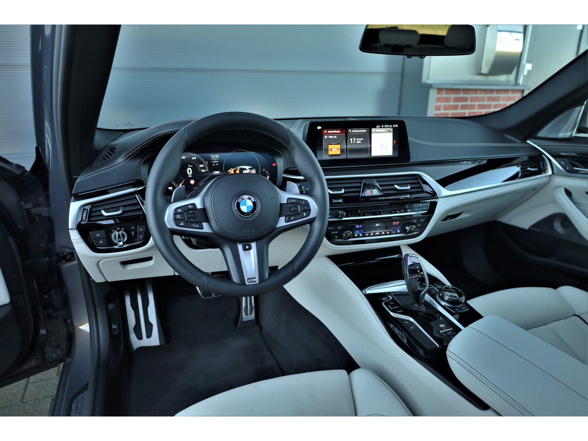 Absoluut eenmalige BMW 540i xDirive High Executive met het begeerlijke M-Sport pakket, uitgevoerd in de sprekende kleur champagne quartz metallic met een "rauch weiss" leder individual interieur; een fantastische combinatie.