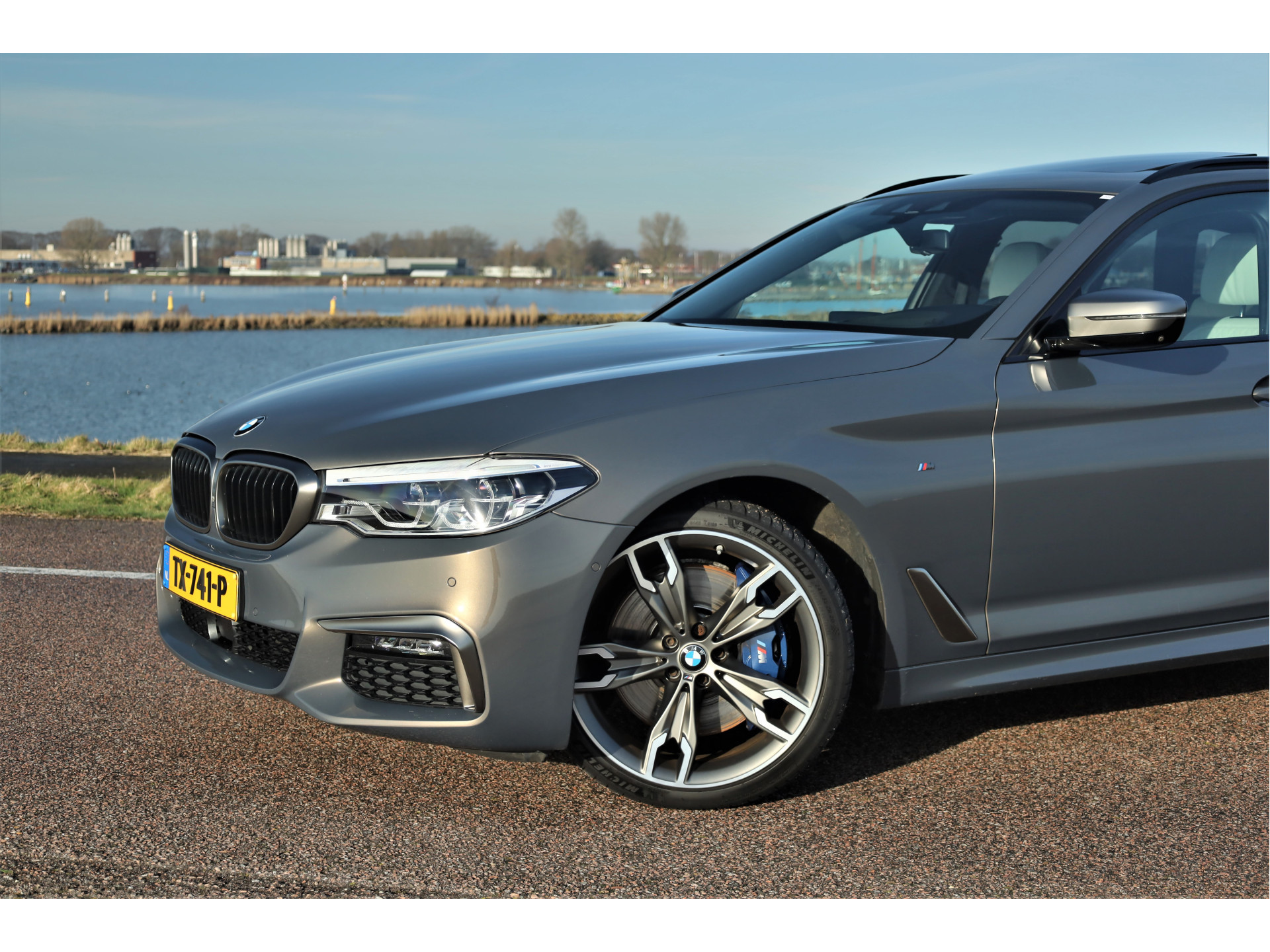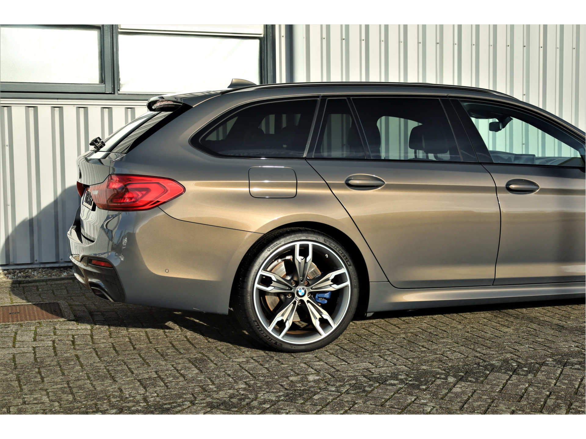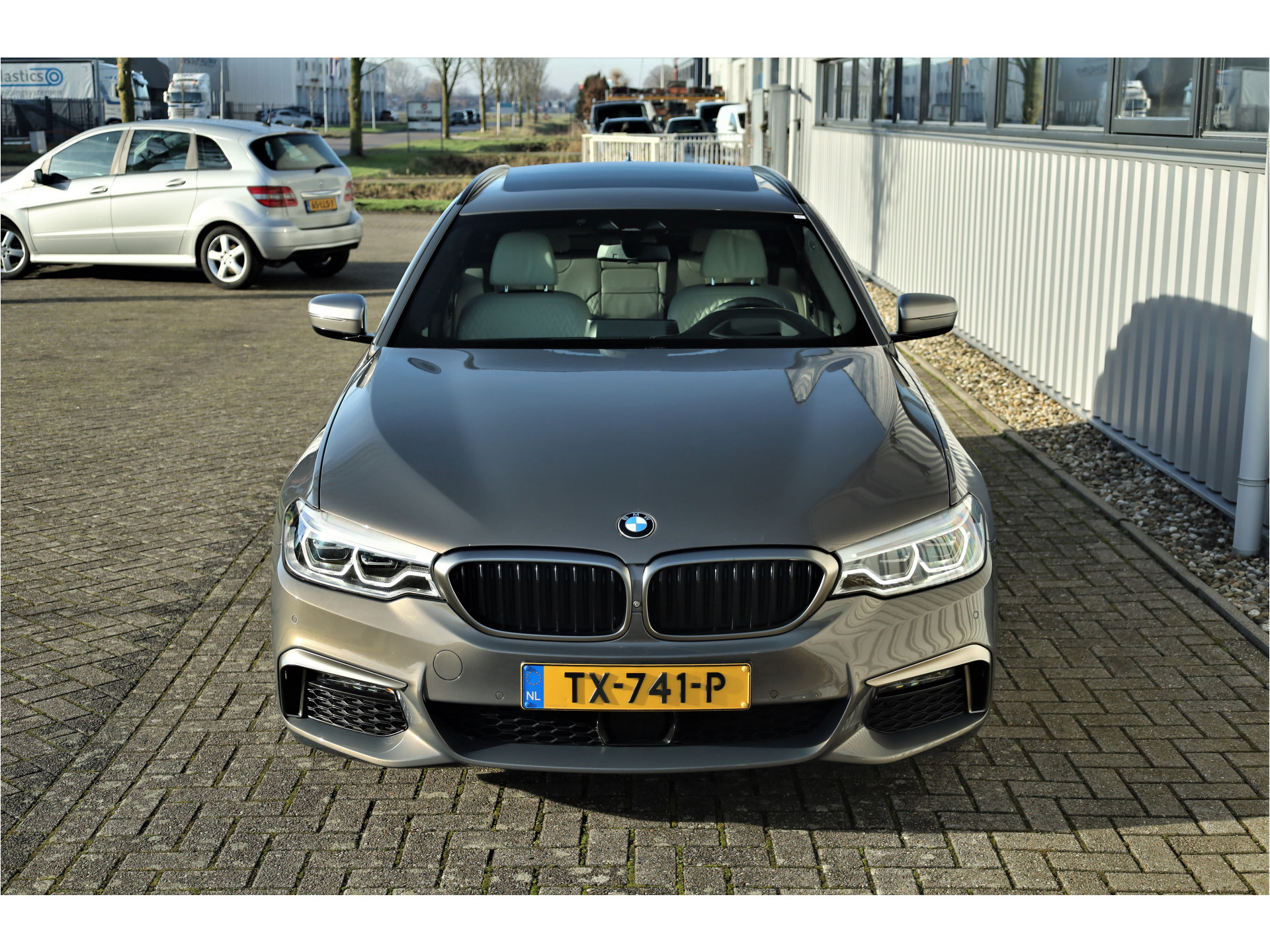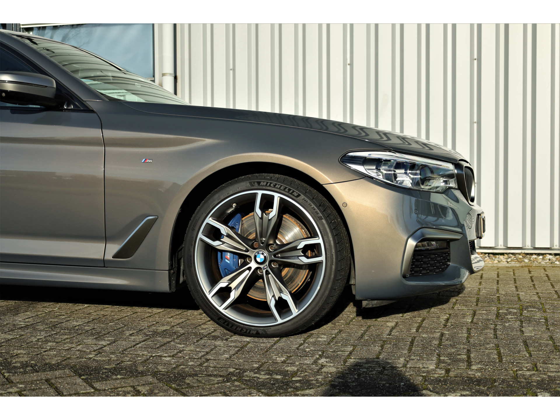 Absoluut eenmalige BMW 540i xDirive High Executive met het begeerlijke M-Sport pakket, uitgevoerd in de sprekende kleur champagne quartz metallic met een "rauch weiss" leder individual interieur; een fantastische combinatie.