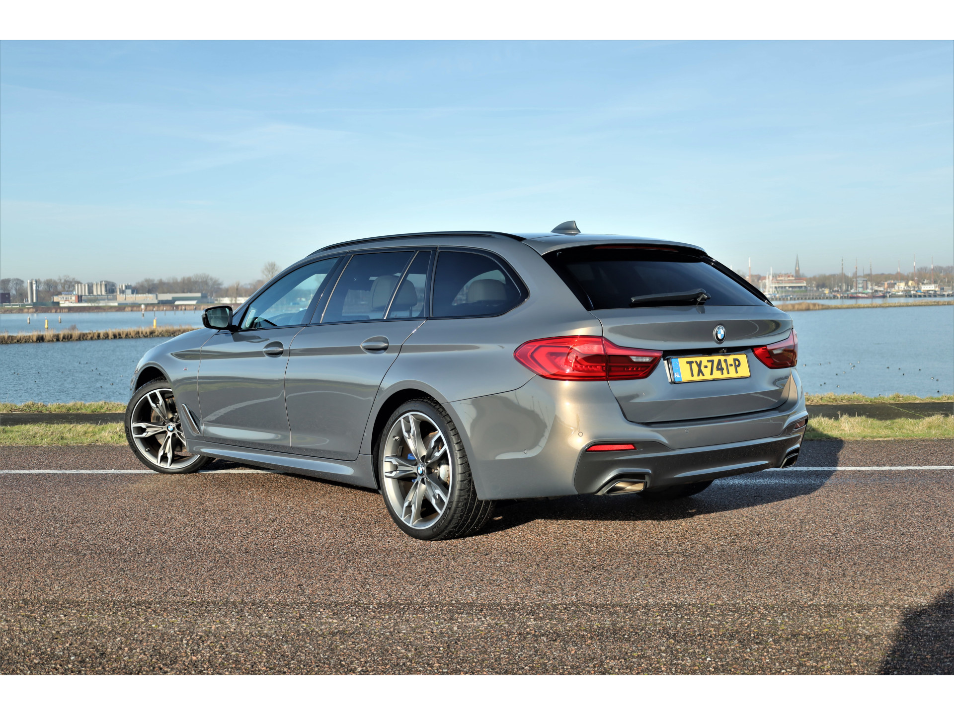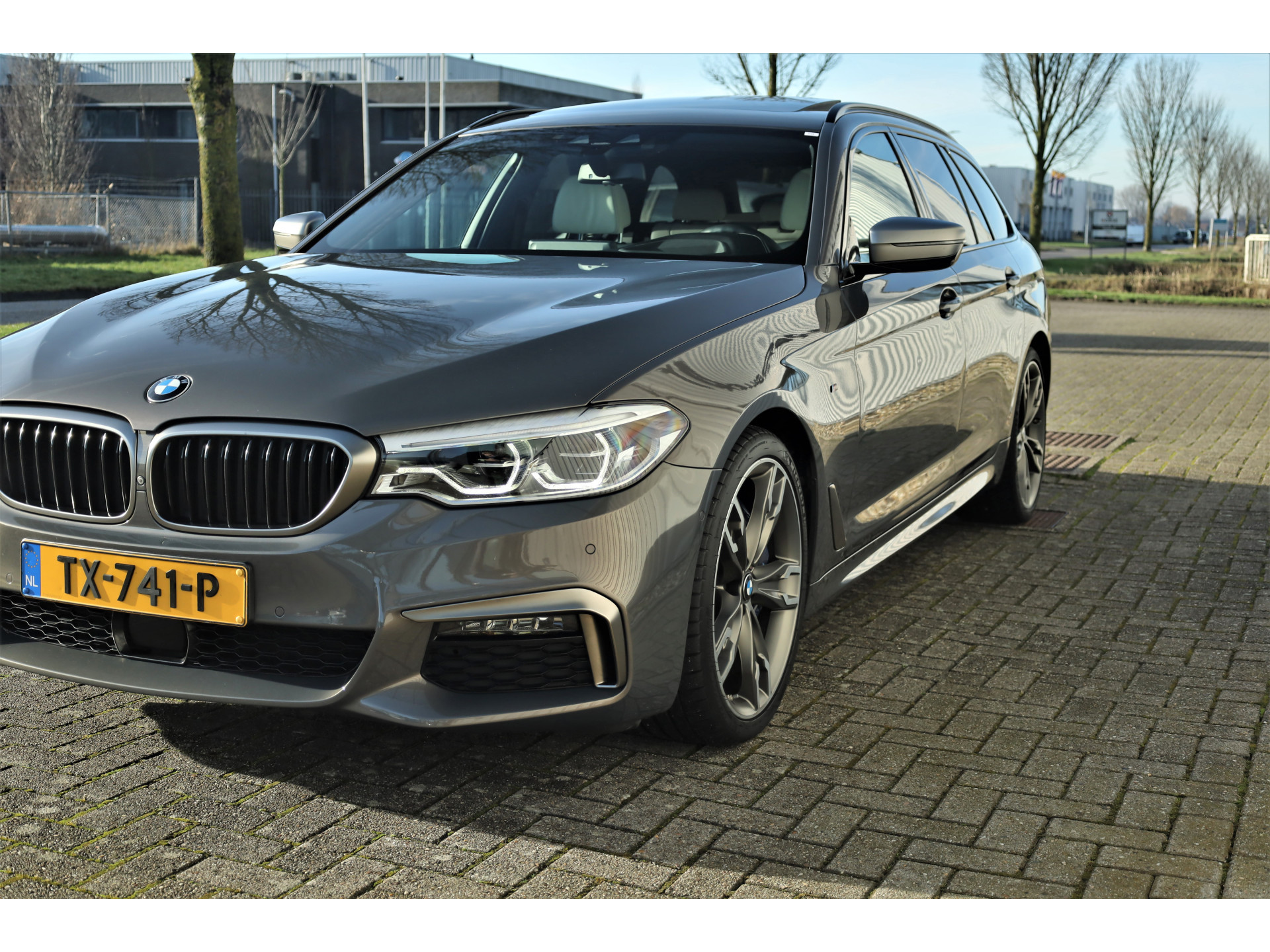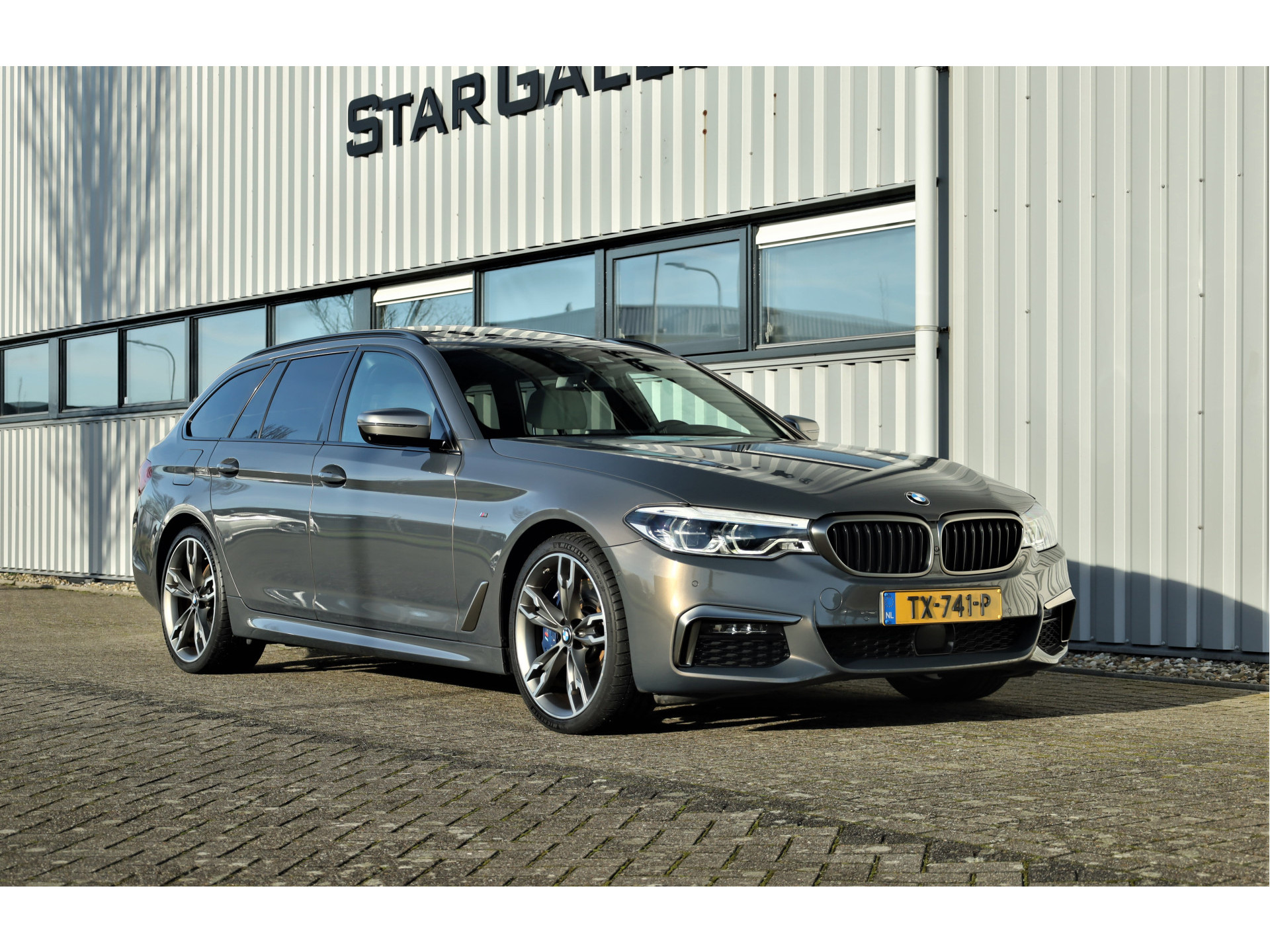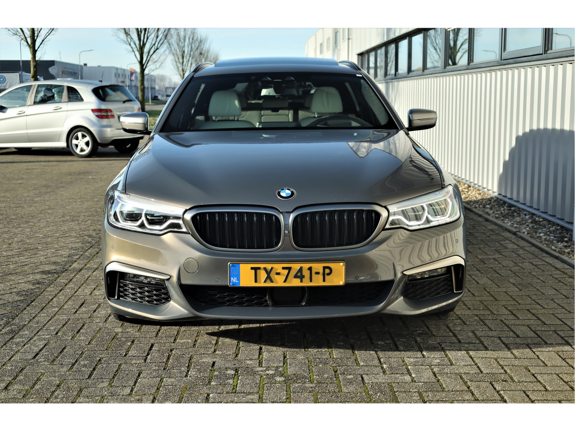 Absoluut eenmalige BMW 540i xDirive High Executive met het begeerlijke M-Sport pakket, uitgevoerd in de sprekende kleur champagne quartz metallic met een "rauch weiss" leder individual interieur; een fantastische combinatie.