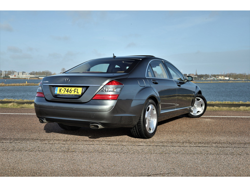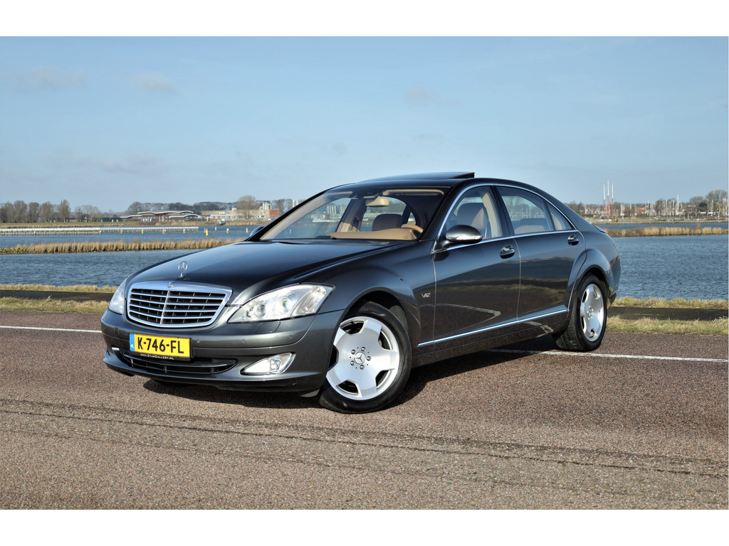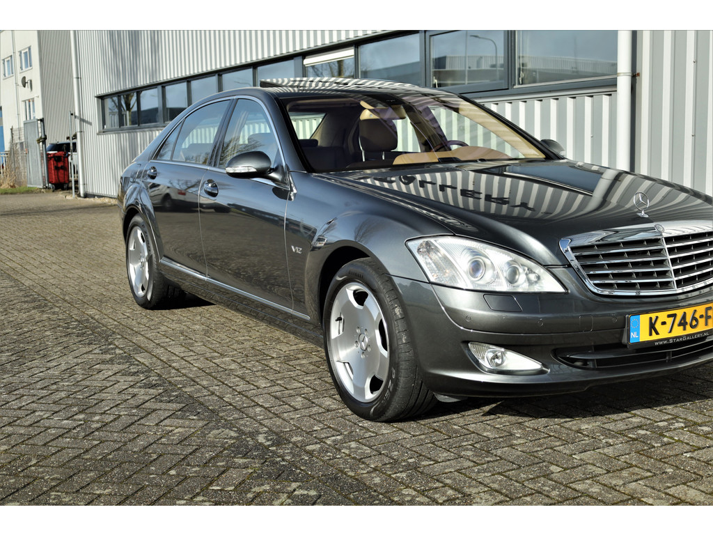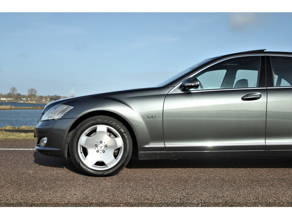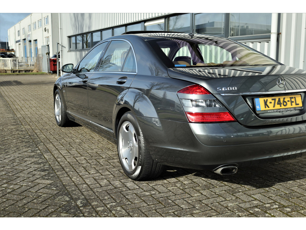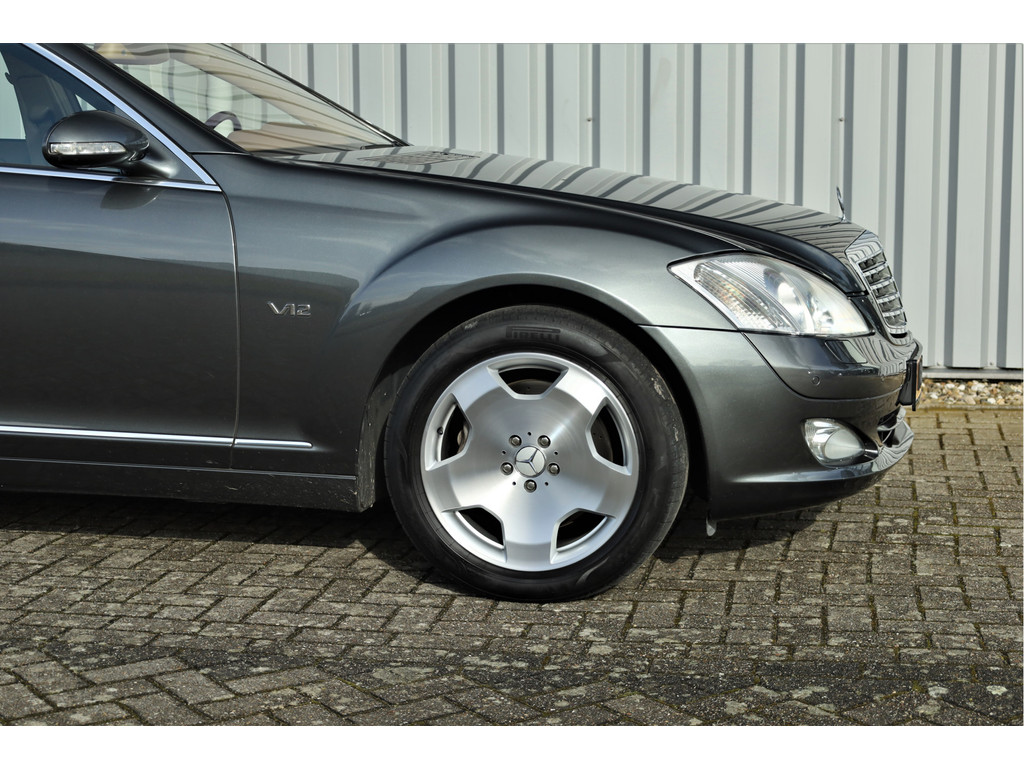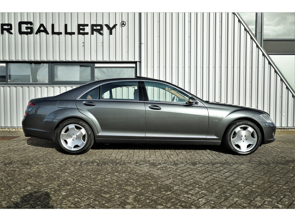 Waanzinnig mooie Mercedes S600 Lang, uitgevoerd in de bijzonder fraaie kleur designo grafiet metallic met een beige/bruin leder exclusief interieur; een unieke combinatie.