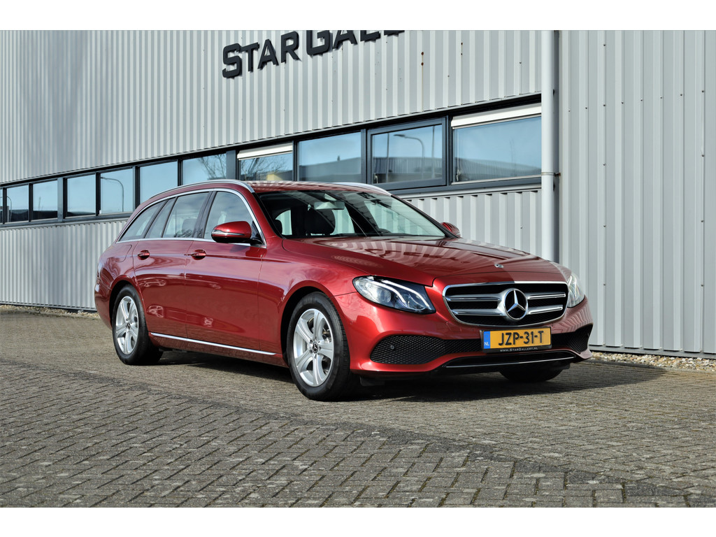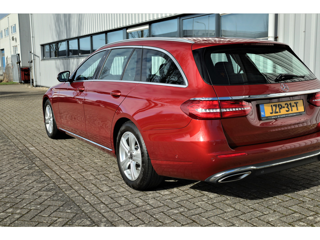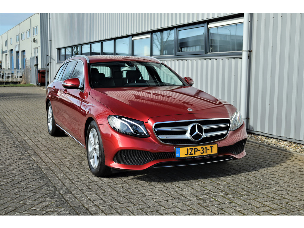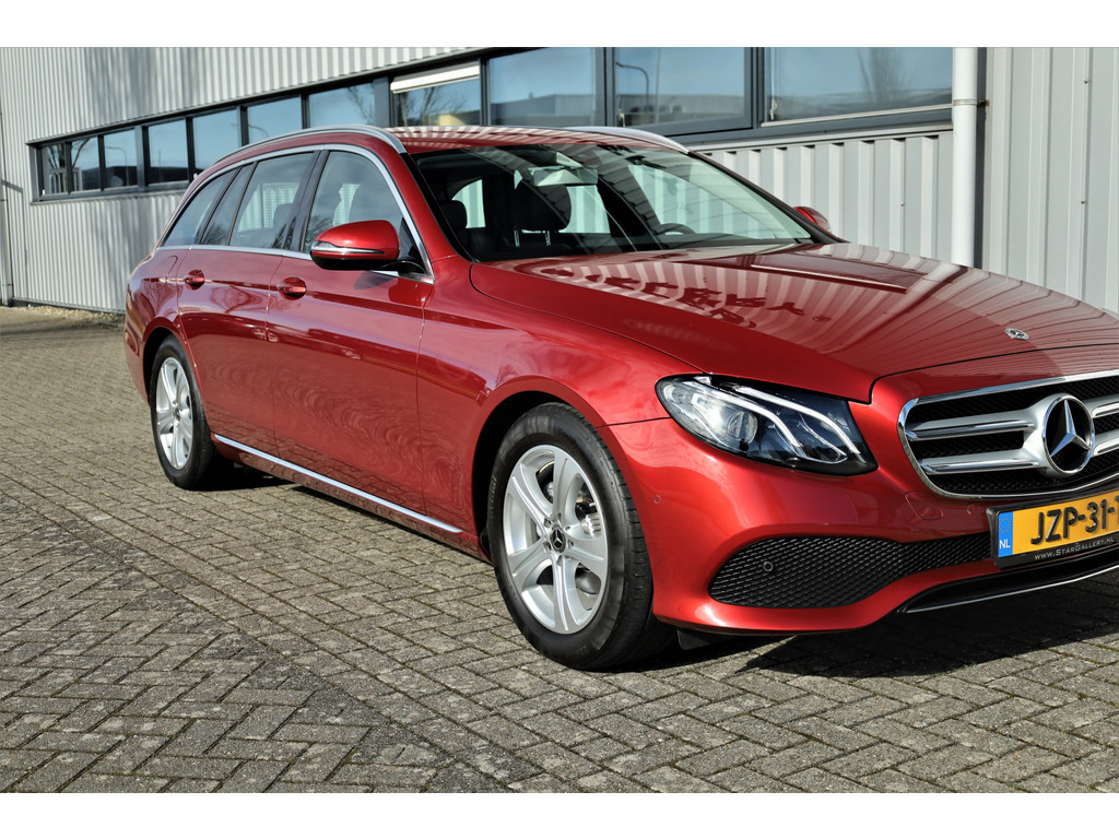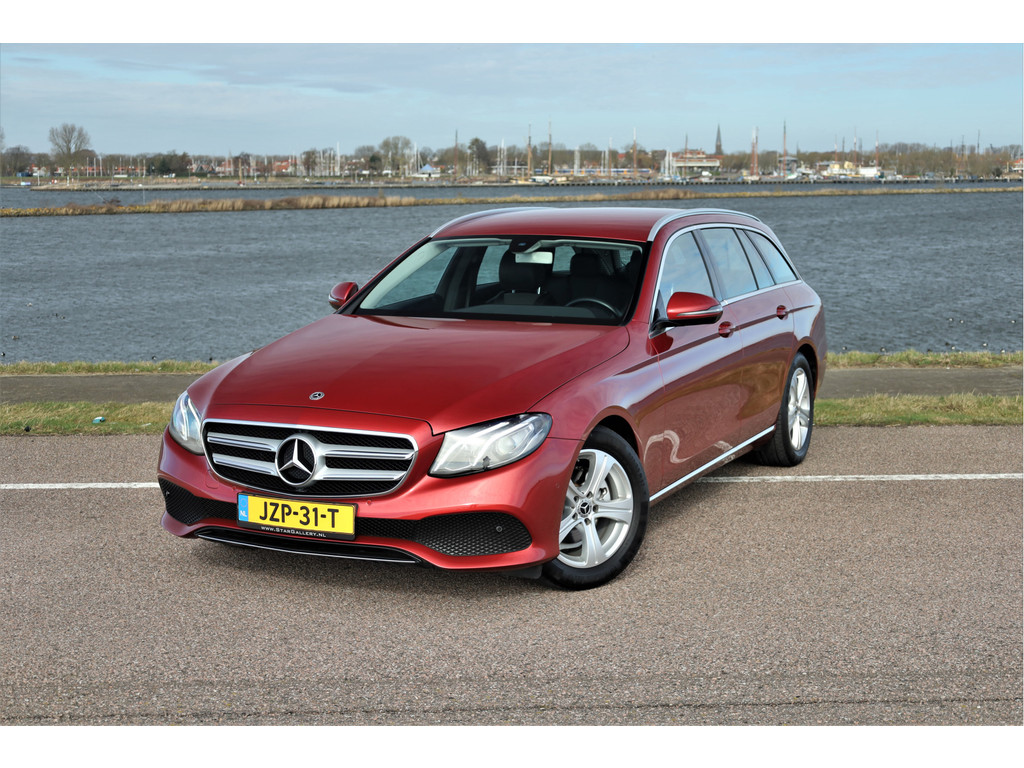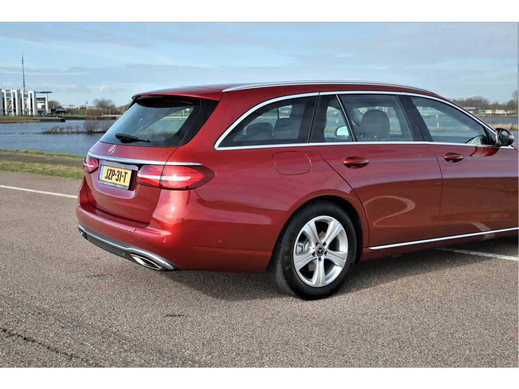 Schitterende Mercedes E200 Estate Avantgarde, uitgevoerd in de fantastische kleur hyacint rood metallic en dit is weer eens wat ander dan grijs of zwart zoals je ze zo vaak tegenkomt.