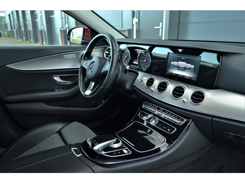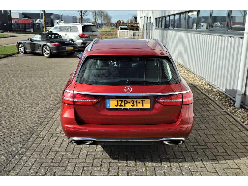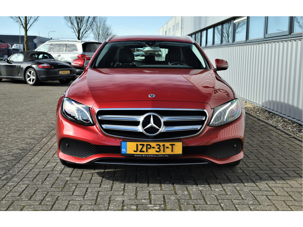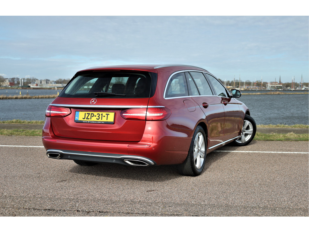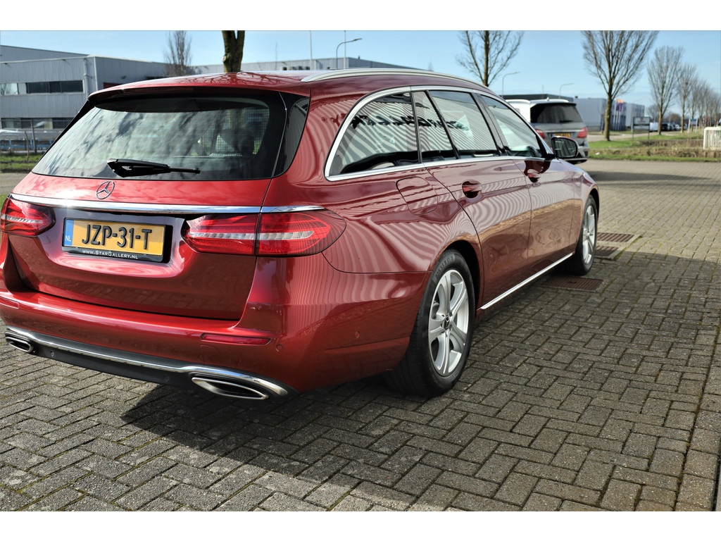 Schitterende Mercedes E200 Estate Avantgarde, uitgevoerd in de fantastische kleur hyacint rood metallic en dit is weer eens wat ander dan grijs of zwart zoals je ze zo vaak tegenkomt.