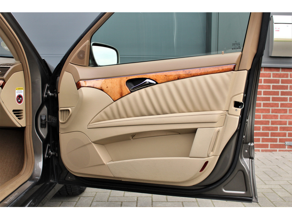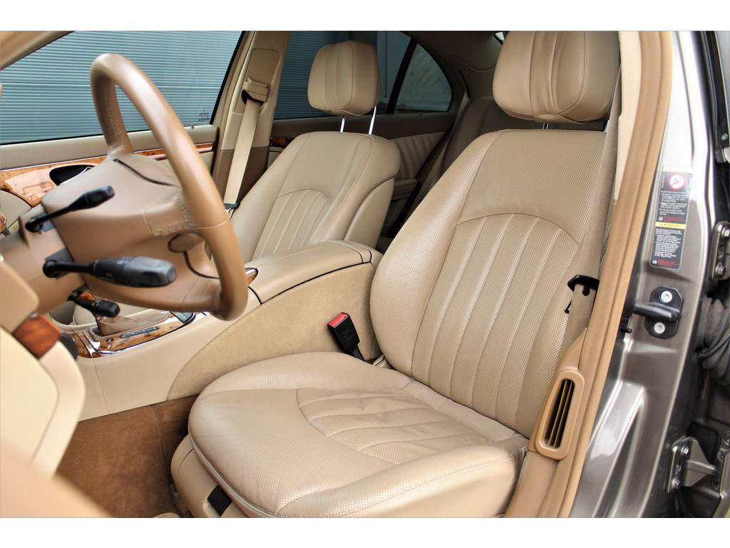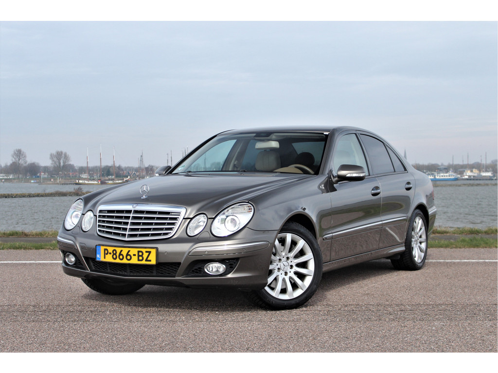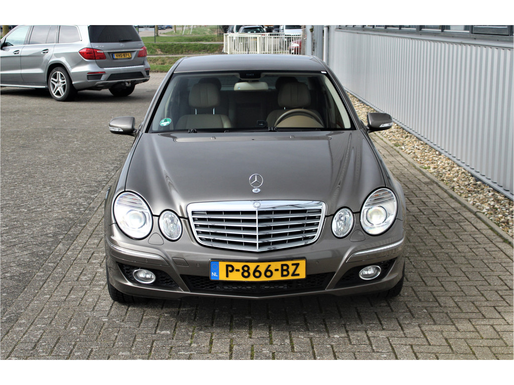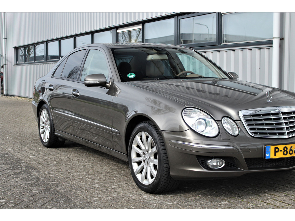 Absolute zeldzaamheid! Waanzinnig mooie Mercedes E500 Elegance 4-Matic uitgevoerd in de bijzondere kleur indium grijs metallic met een beige leder interieur; een droomcombinatie.