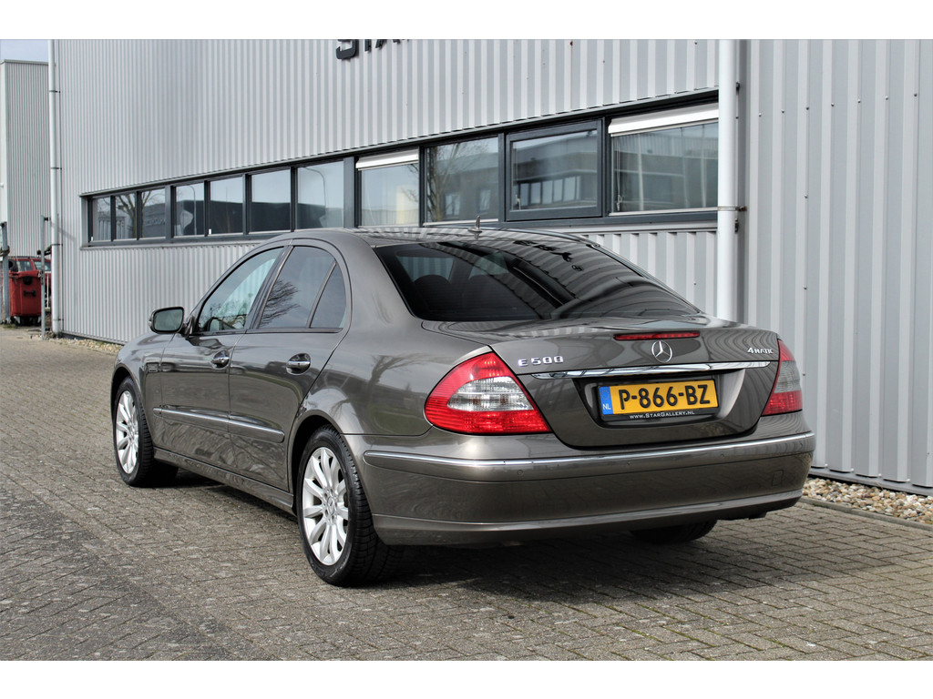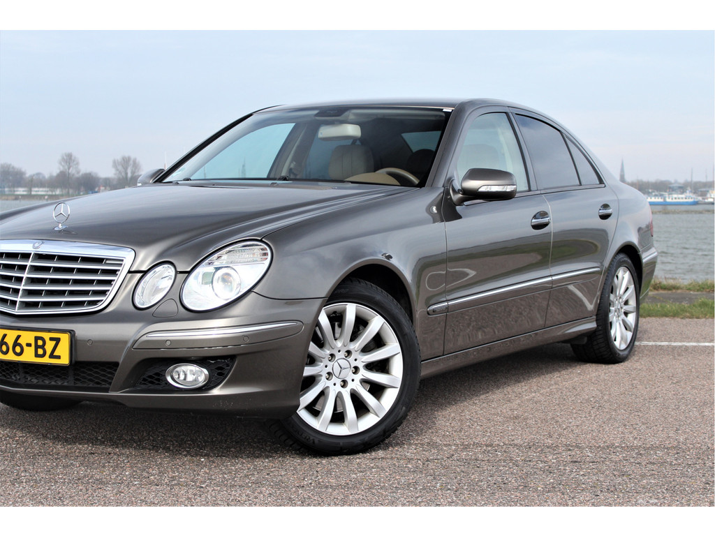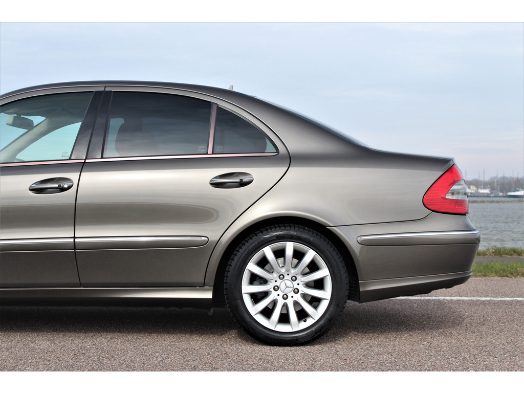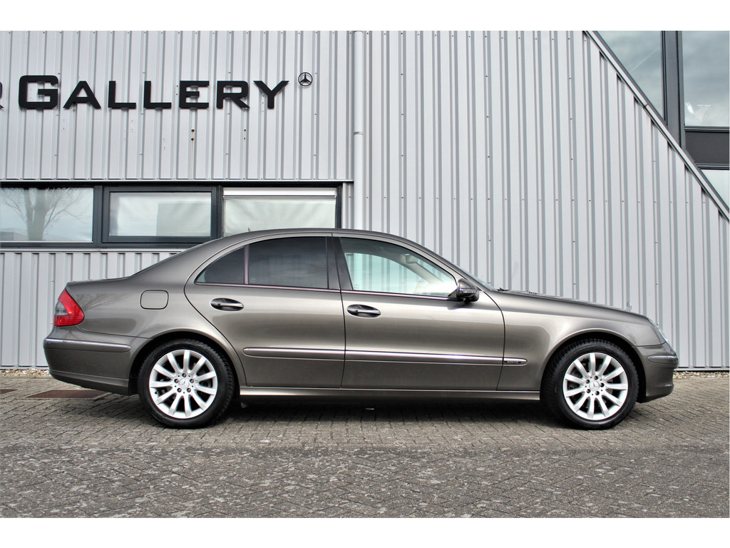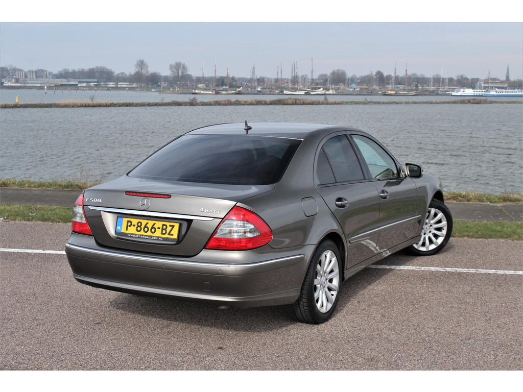 Absolute zeldzaamheid! Waanzinnig mooie Mercedes E500 Elegance 4-Matic uitgevoerd in de bijzondere kleur indium grijs metallic met een beige leder interieur; een droomcombinatie.