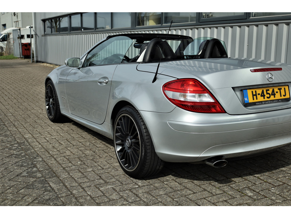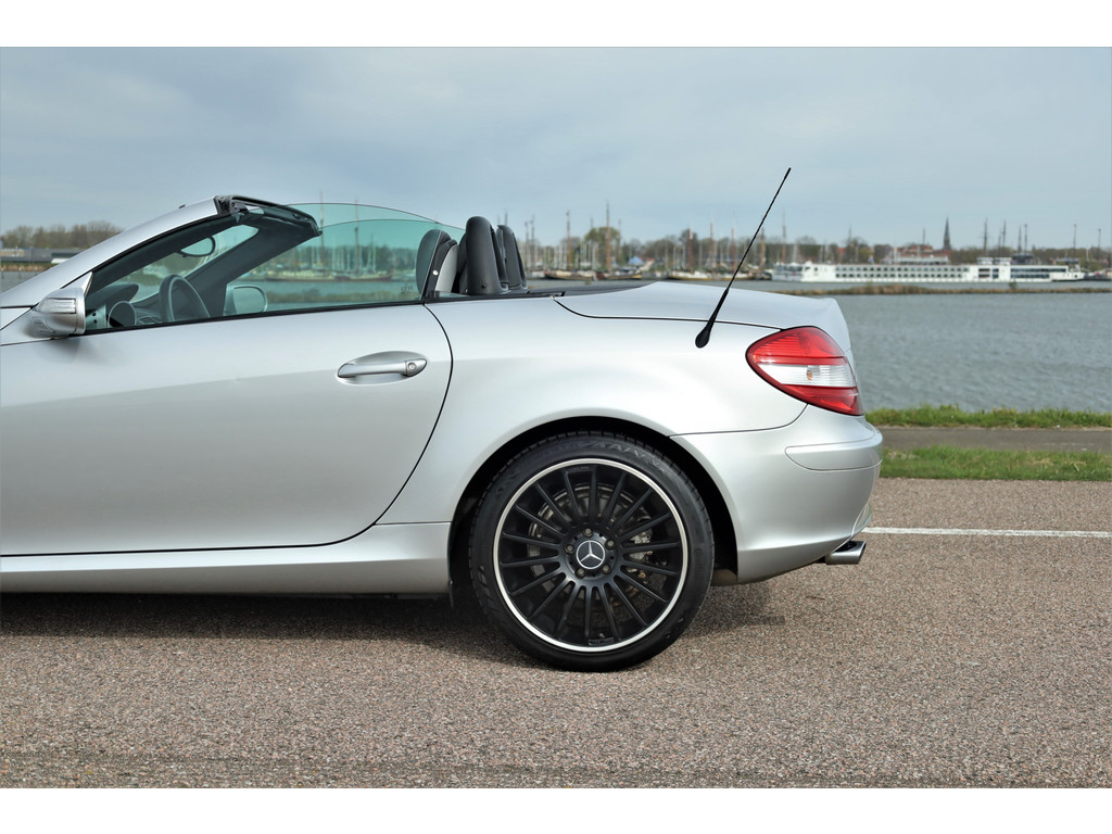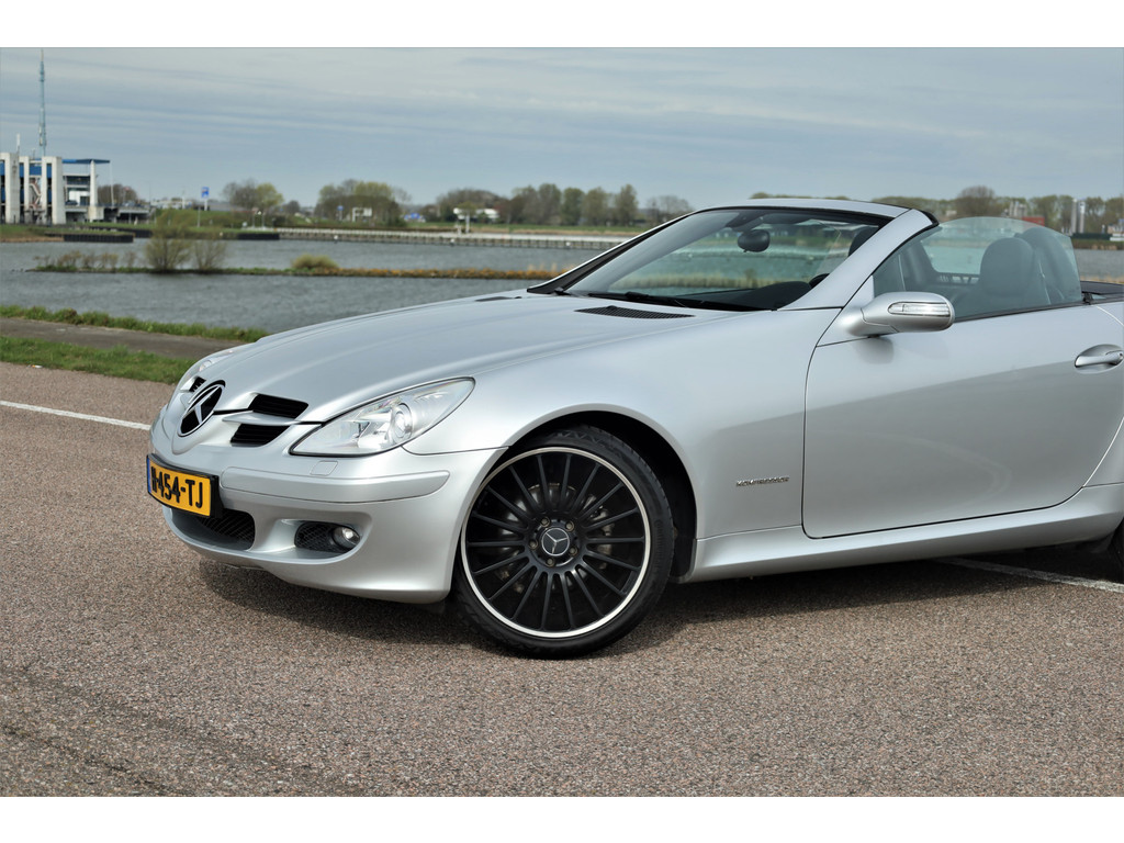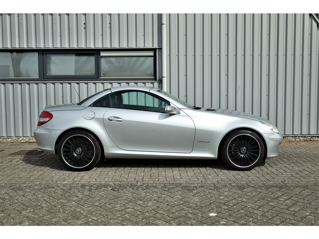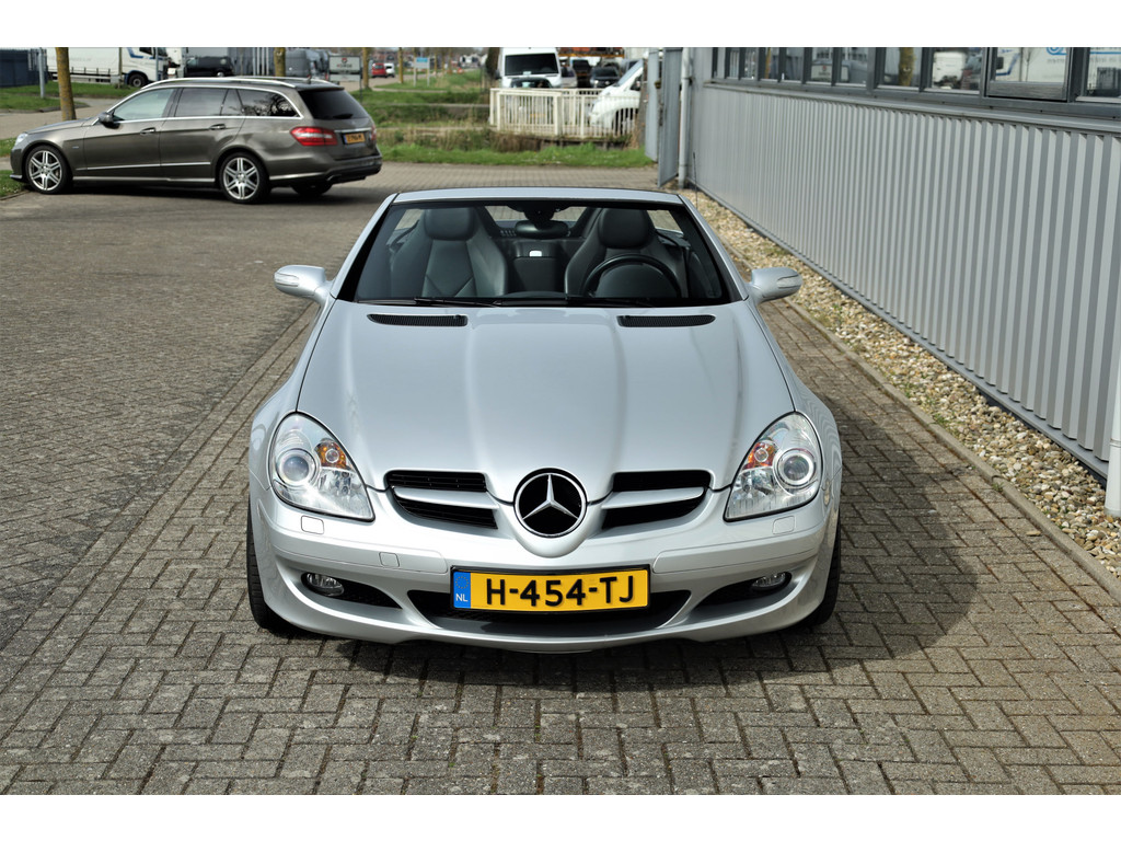 Super leuke fiscaal aantrekkelijke Mercedes SLK200 Kompressor, uitgevoerd in iridium zilver metallic met een zwart leder interieur; een echte Mercedes combinatie.